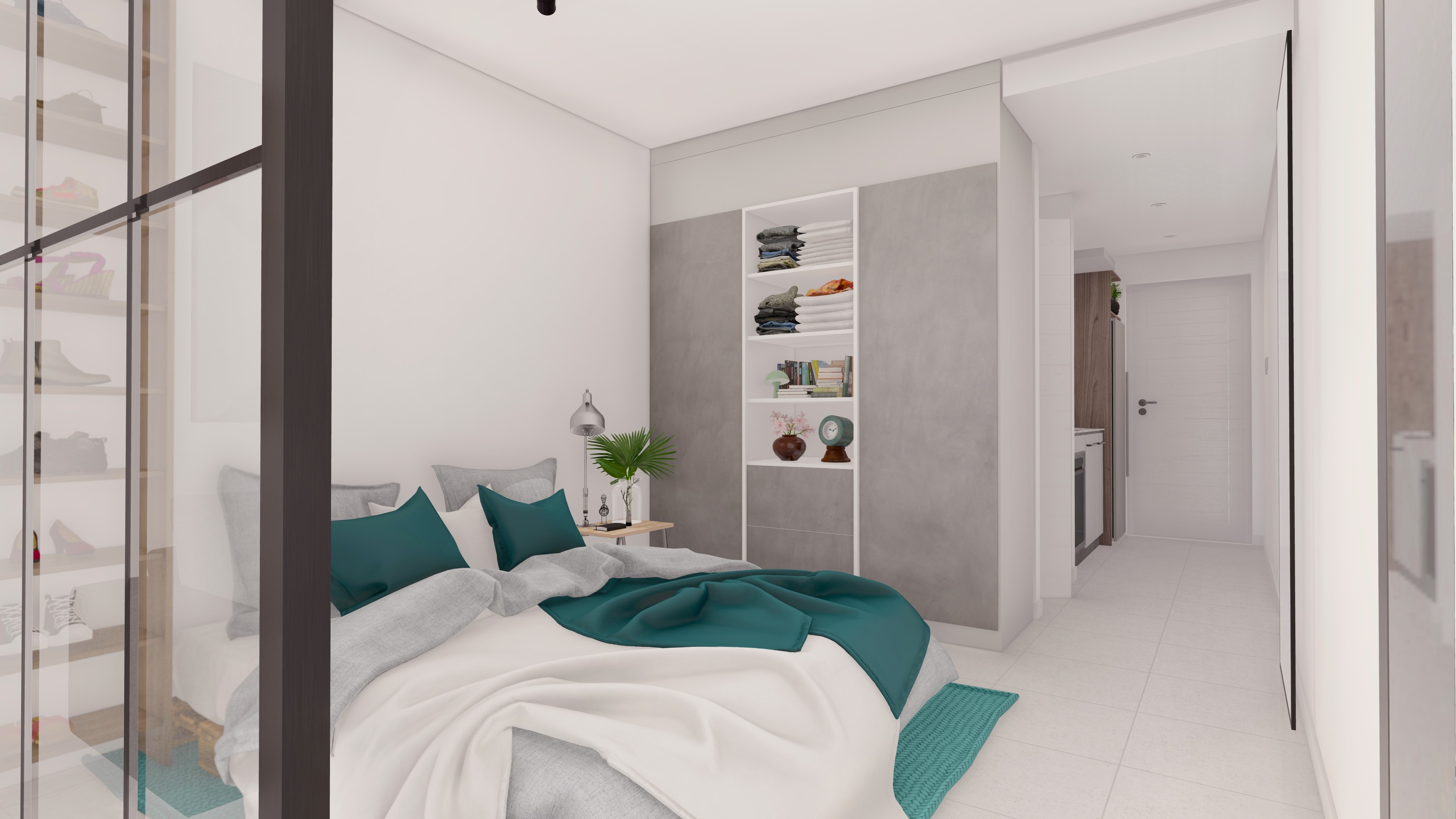 Every unit features a private balcony, allowing you to enjoy outdoor living and estate views. This cleverly designed studio maximizes space with a layout that creates a private bedroom zone separate from the living area, complemented by high-end finishes throughout.