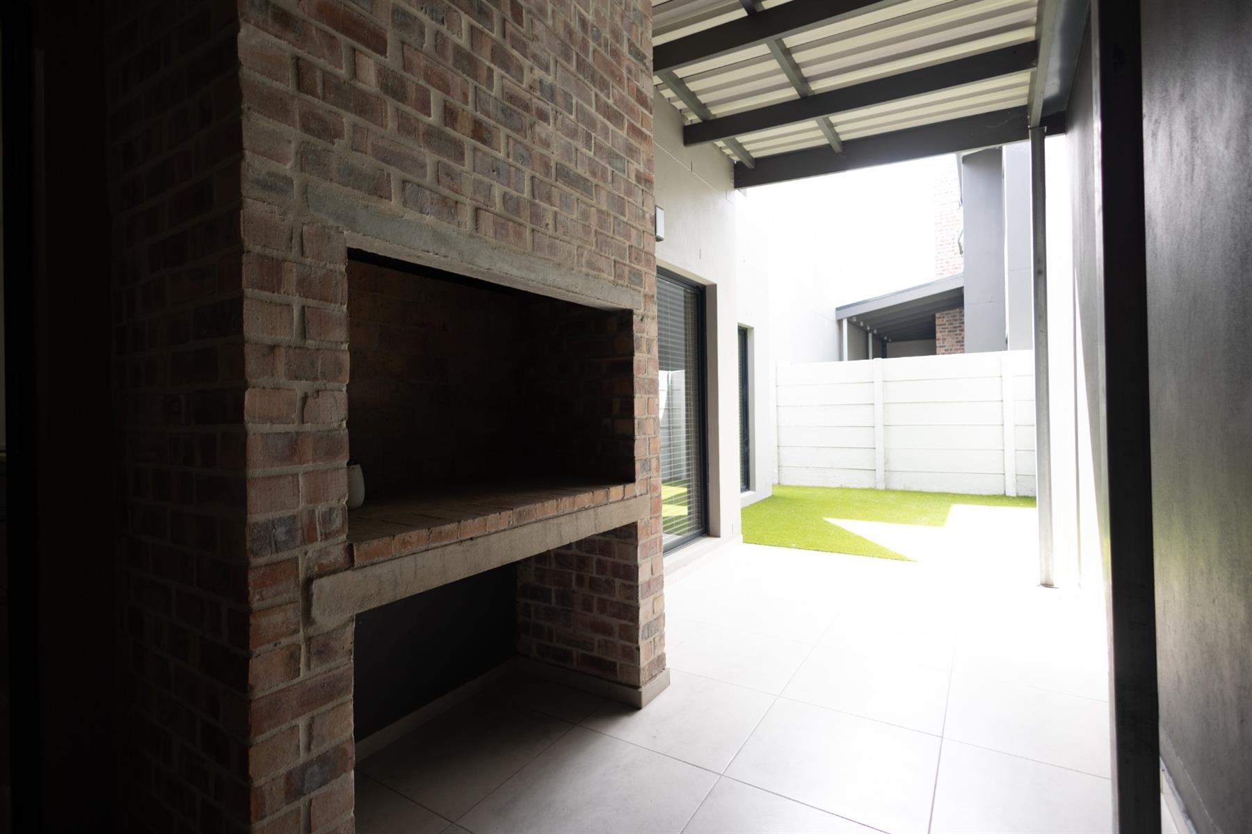 Step inside to an inviting open-plan kitchen, dining, and lounge area with sliding doors that open onto an enclosed braai and entertainment space — perfect for gatherings with family and friends. A convenient study nook is tucked neatly under the stairs. The synthetic lawn ensures a low-maintenance outdoor area, giving you more time to relax and enjoy your home.