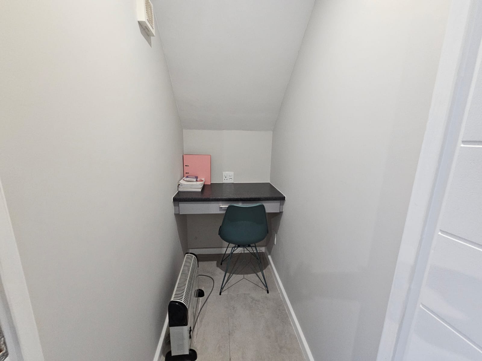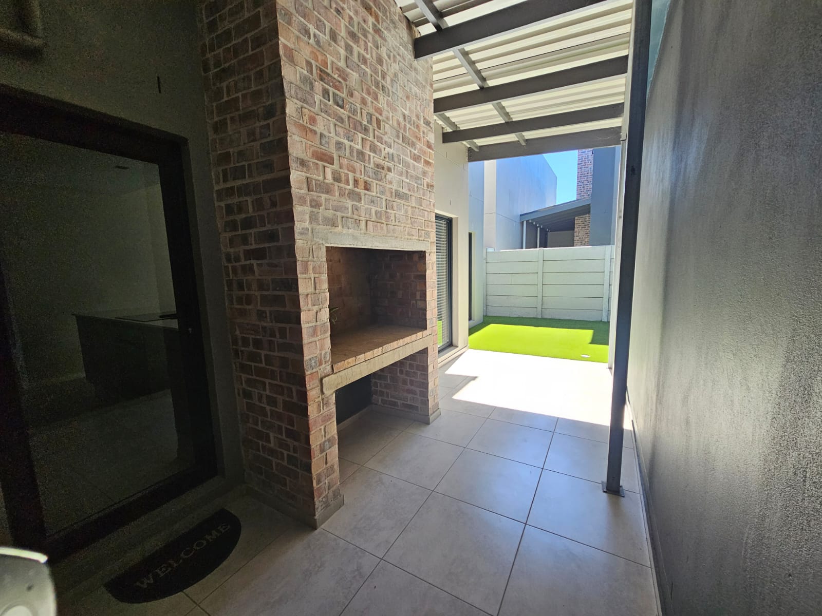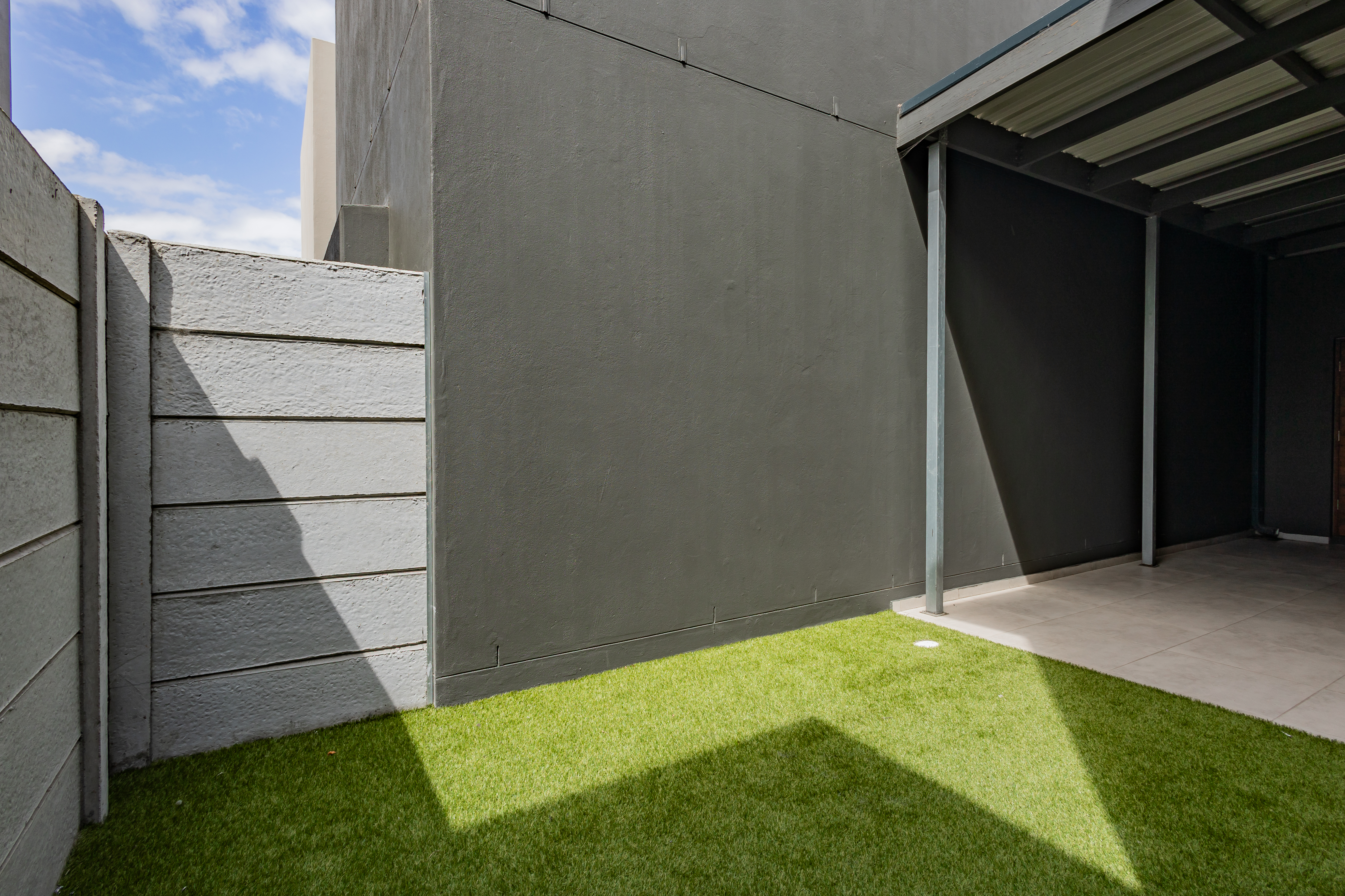You are welcomed by an open plan kitchen, dining room and lounge area with sliding doors that leads to the enclosed braai/entertainment area. Come and enjoy a braai with family and friends. There is a small study area under the stairs. This home has synthetic lawn which offers low Low-maintenance outside.
