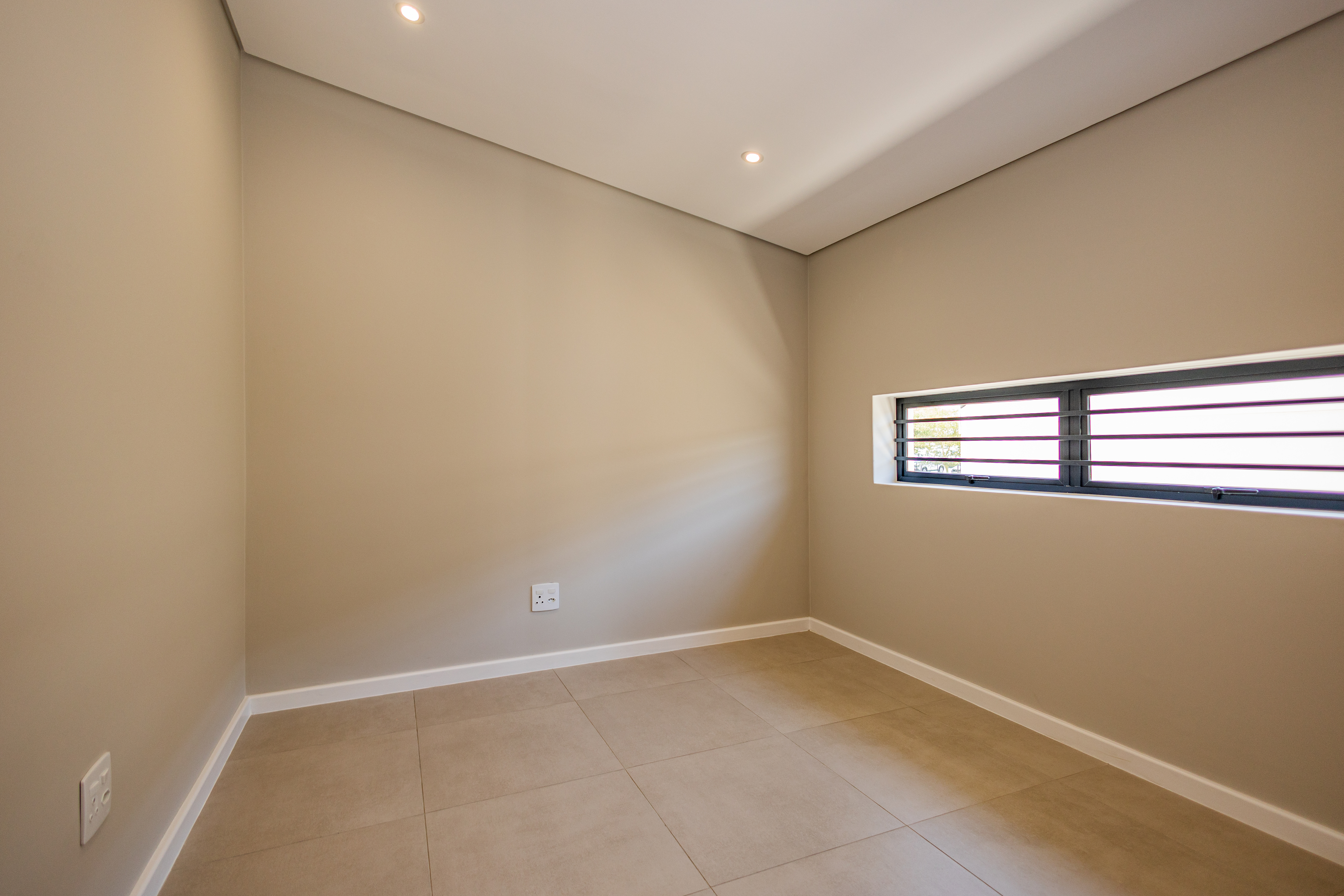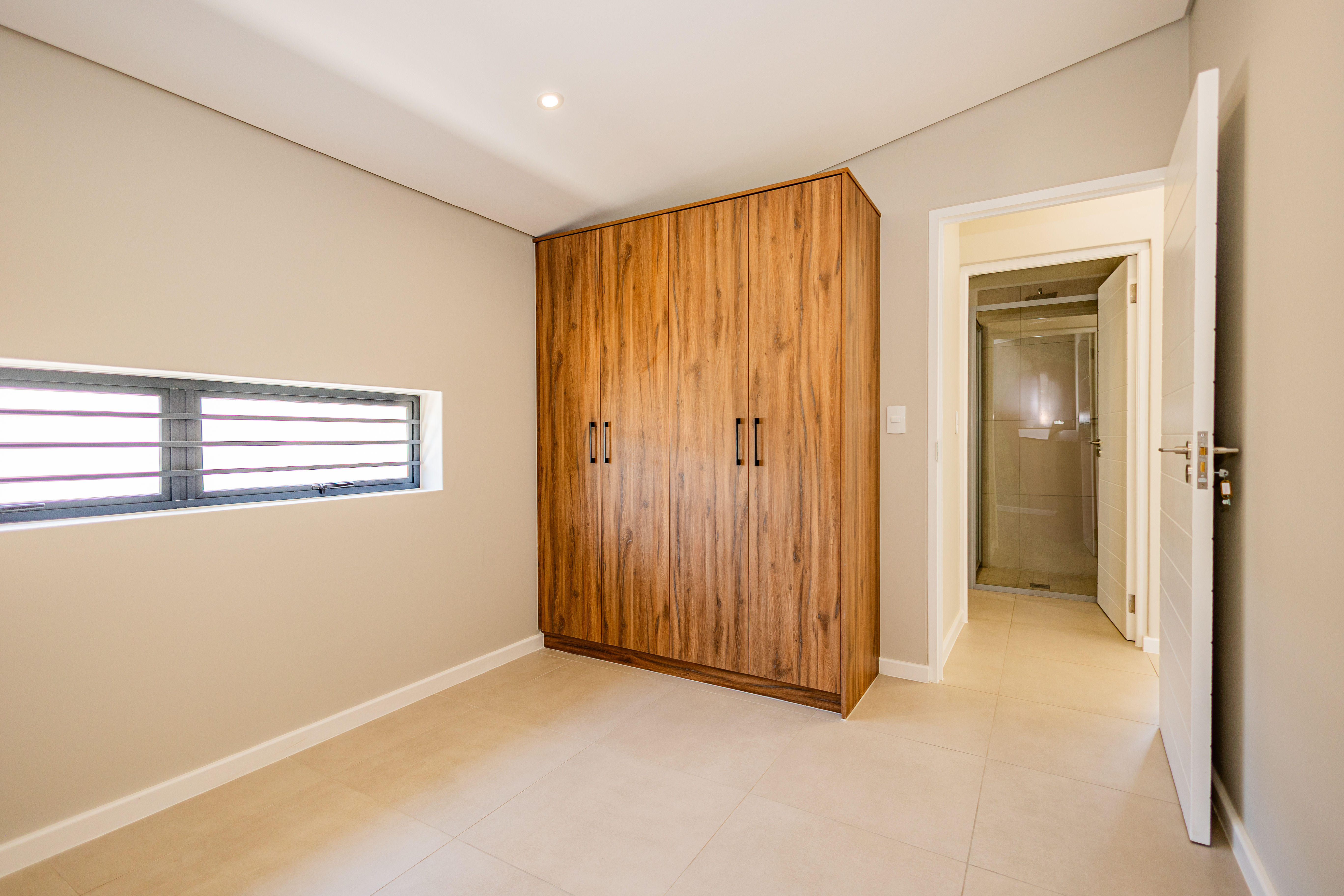 From the living area, doors open to a small patio with a built-in outdoor braai — your own private spot for relaxed evenings, Sunday braais, and quiet moments overlooking the garden. The private garden is ideal for pets, or simply for creating a peaceful little outdoor space that feels like your own sanctuary.