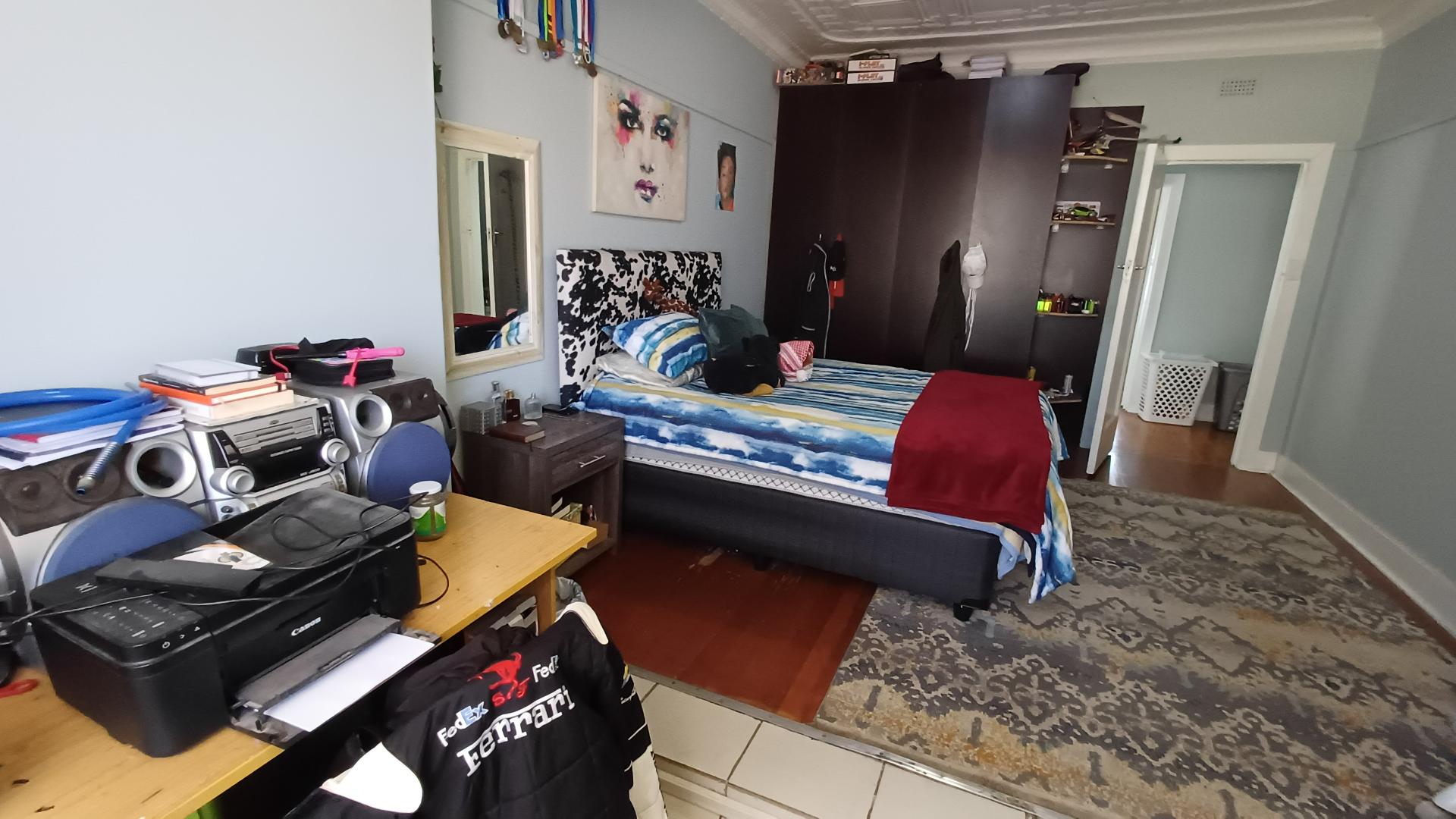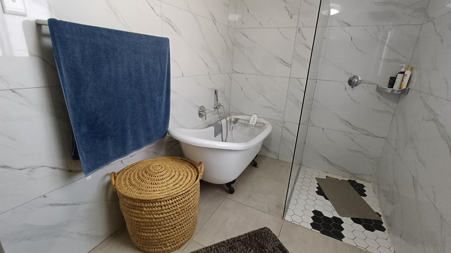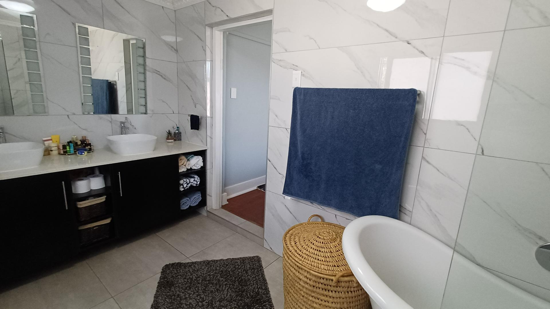 There are three large bedrooms (all with pressed ceilings and wooden floors), with built-in cupboards, while the main bedroom has a walk-in cupboard. The modern en-suite has a walk-in shower, as well as a large, freestanding bathtub and double vanity. The family bathroom is modern and has a shower over the bath.