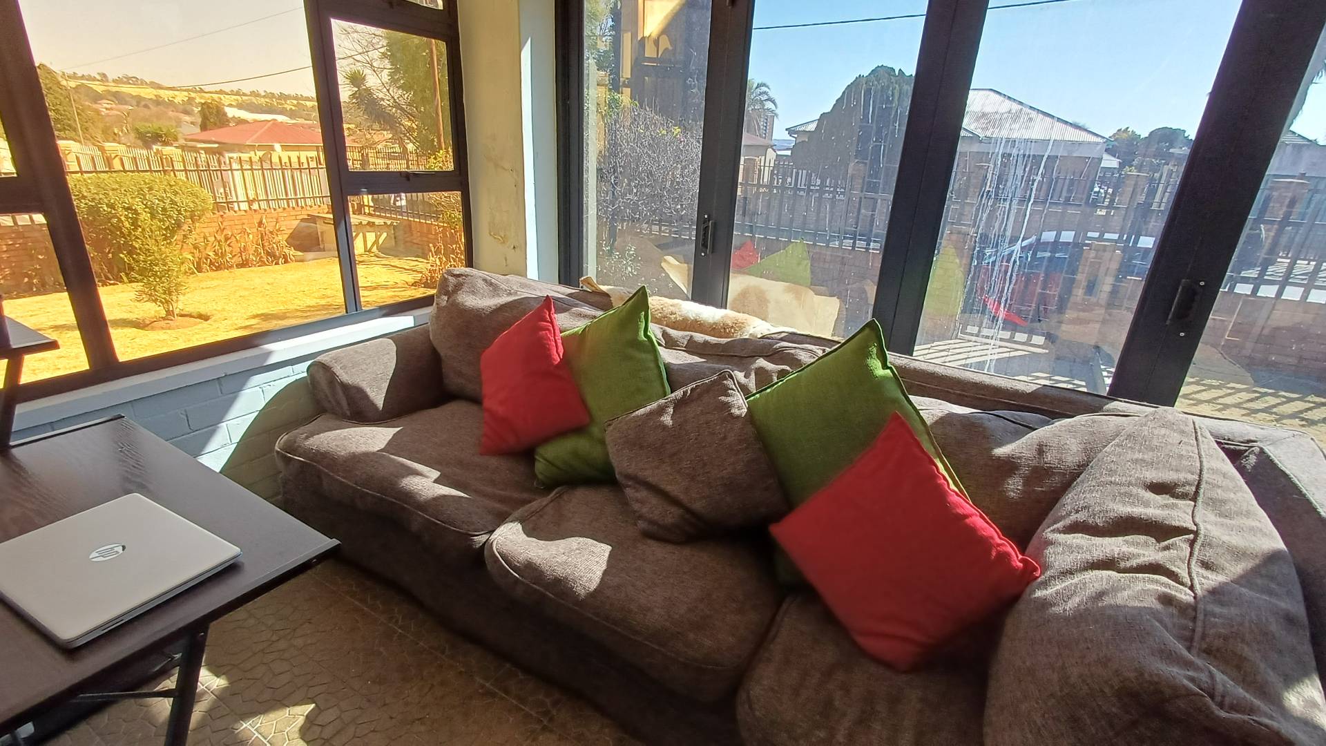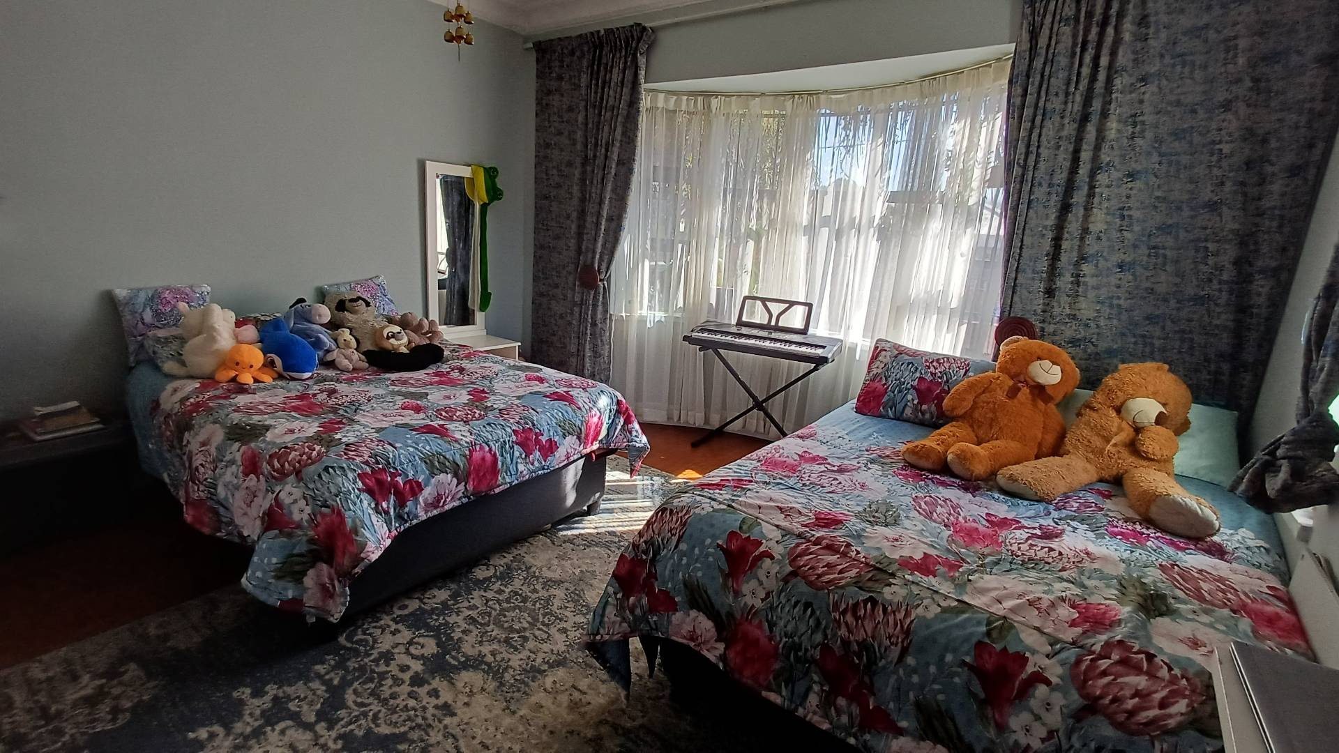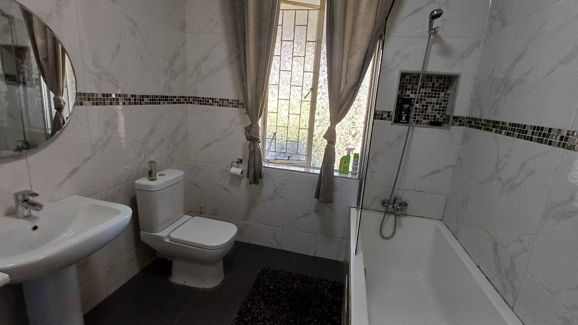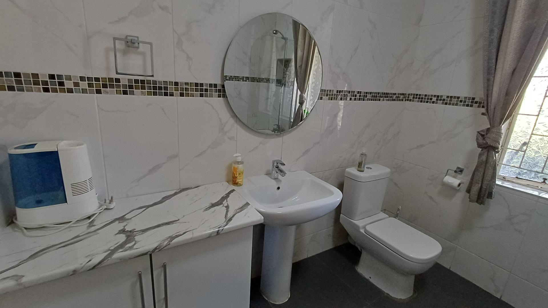There are three large bedrooms (all with pressed ceilings and wooden floors), with built-in cupboards, while the main bedroom has a walk-in cupboard. The modern en-suite has a walk-in shower, as well as a large, freestanding bathtub and double vanity. The family bathroom is modern and has a shower over the bath.