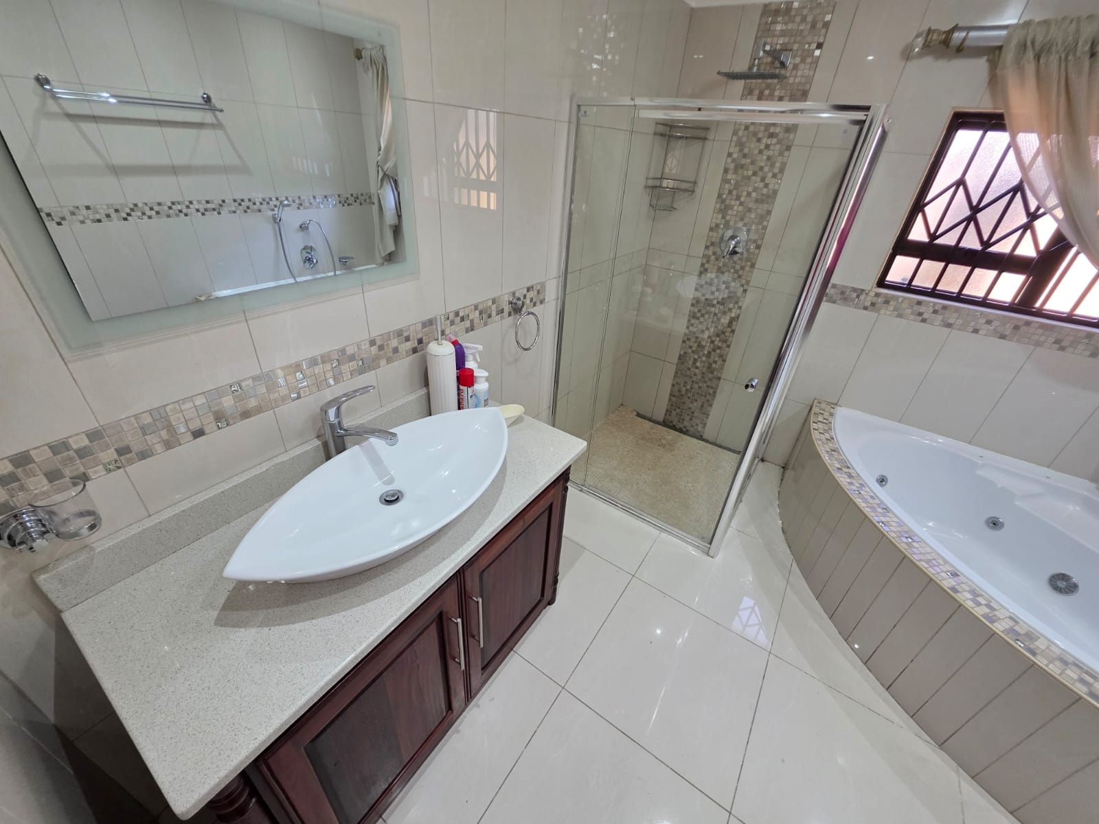 Your family’s peace of mind is assured with comprehensive security features including burglar bars, an alarm system, electric fencing, CCTV, an electric garage, and an automated gate.