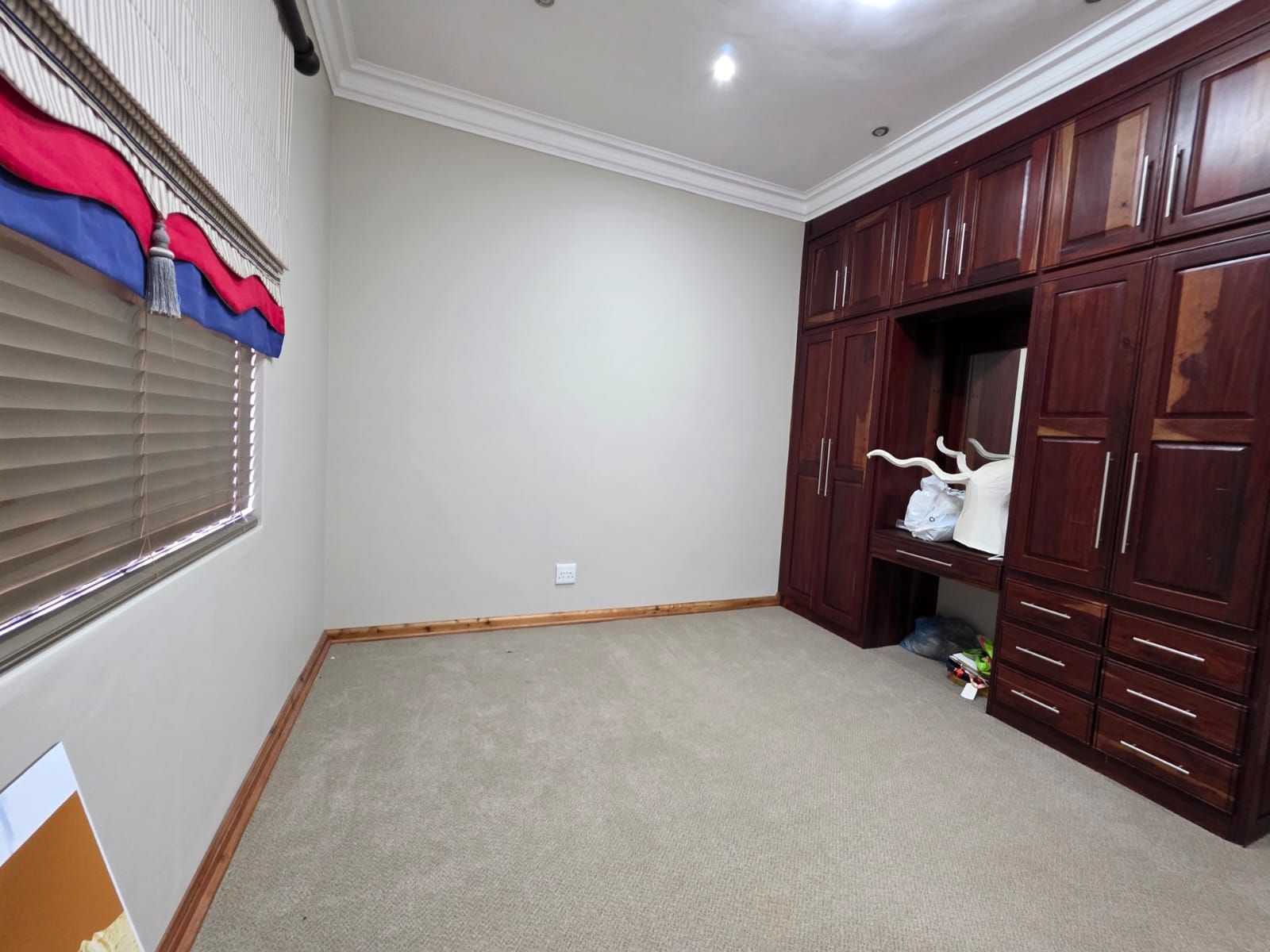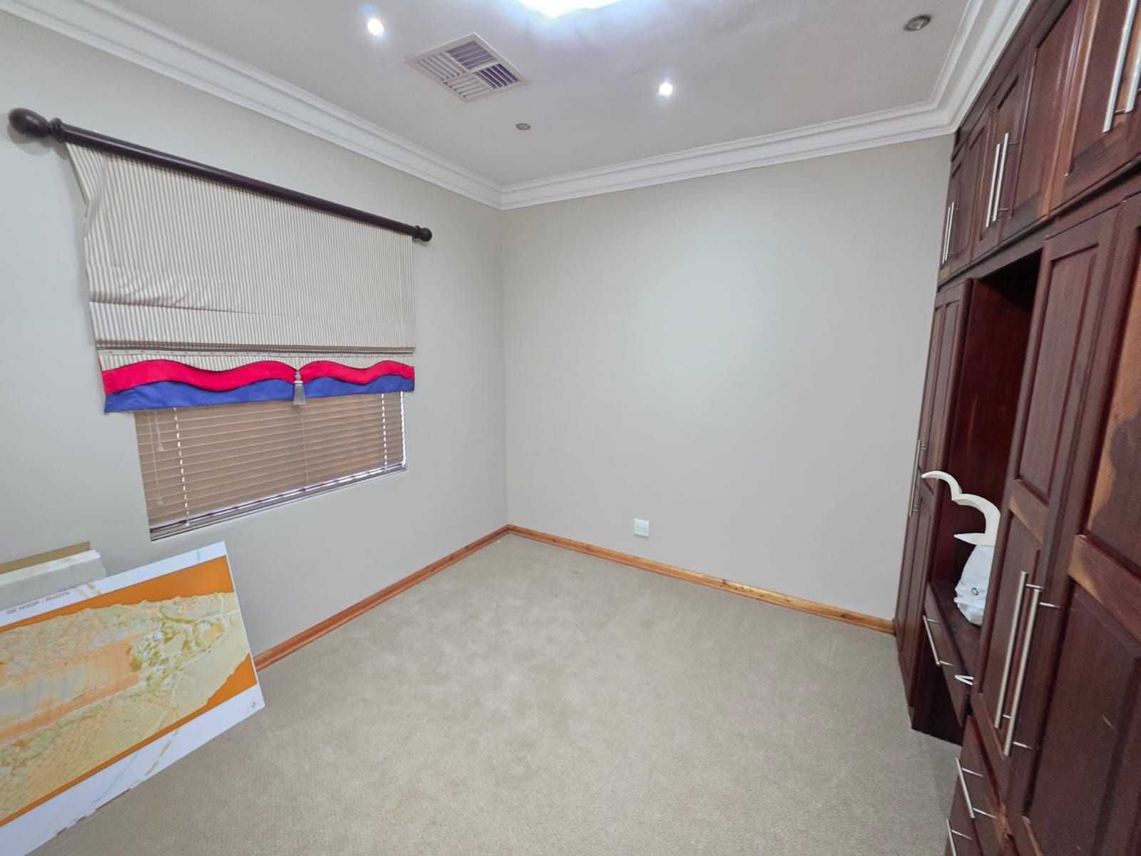 Step inside to discover an inviting open-plan layout featuring a generous family room, dining area, and a well-appointed kitchen with granite countertops, ample built-in cupboards, a centre island, gas hob, and a separate laundry. For those who work from home, a private study with built-in cupboards provides the perfect workspace.
