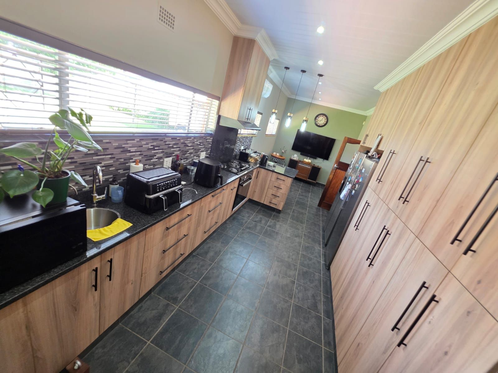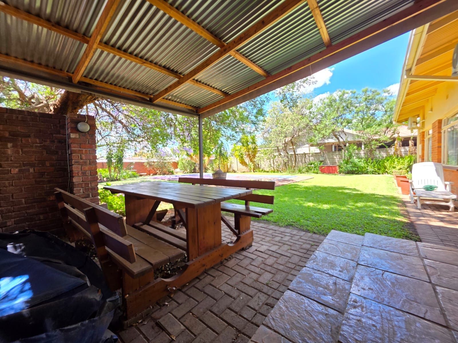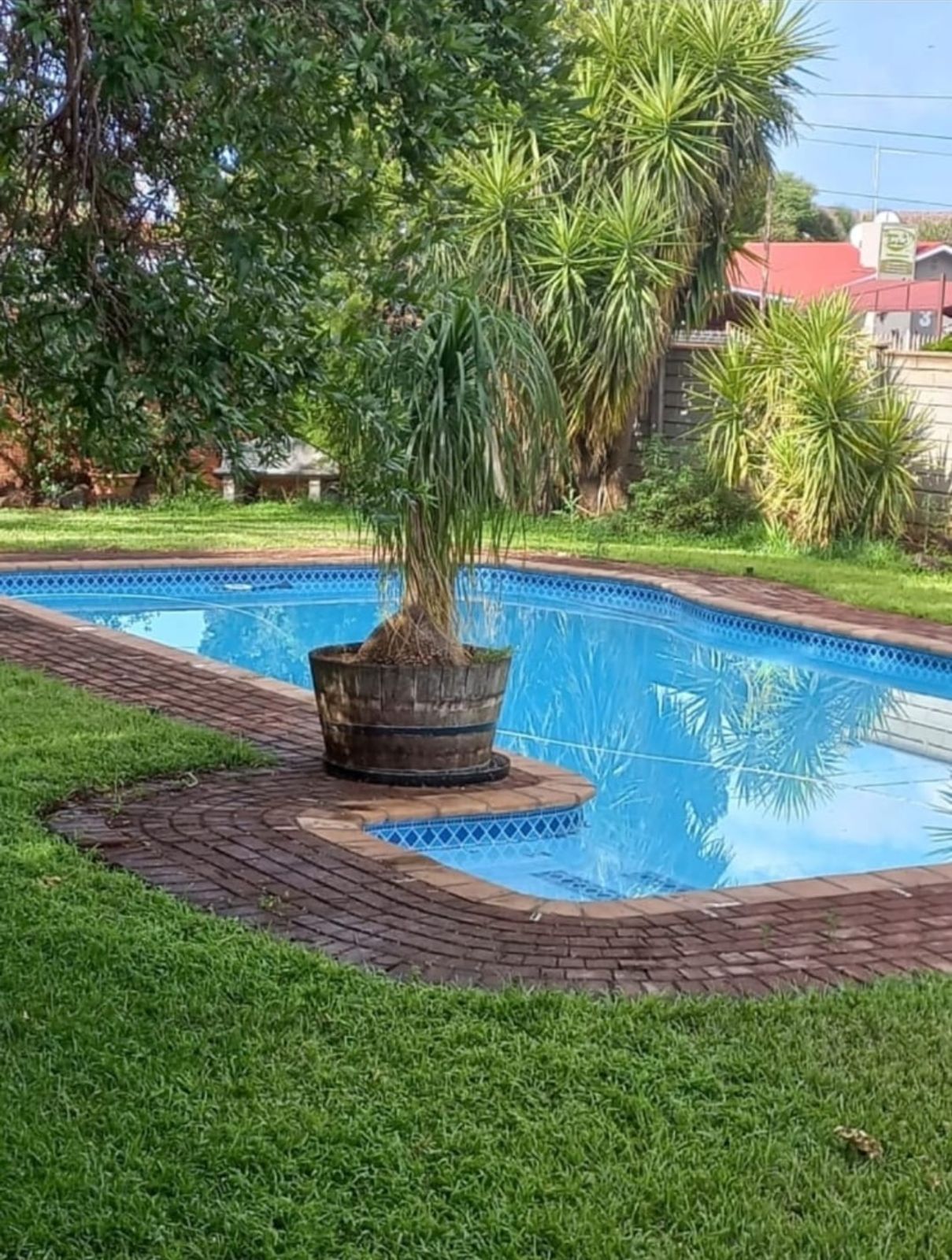 An entertainment room with a built-in braai opens onto the swimming pool area, creating the perfect space for family gatherings. Additional features include staff accommodation with a toilet, a double garage with electric doors, and a single carport.