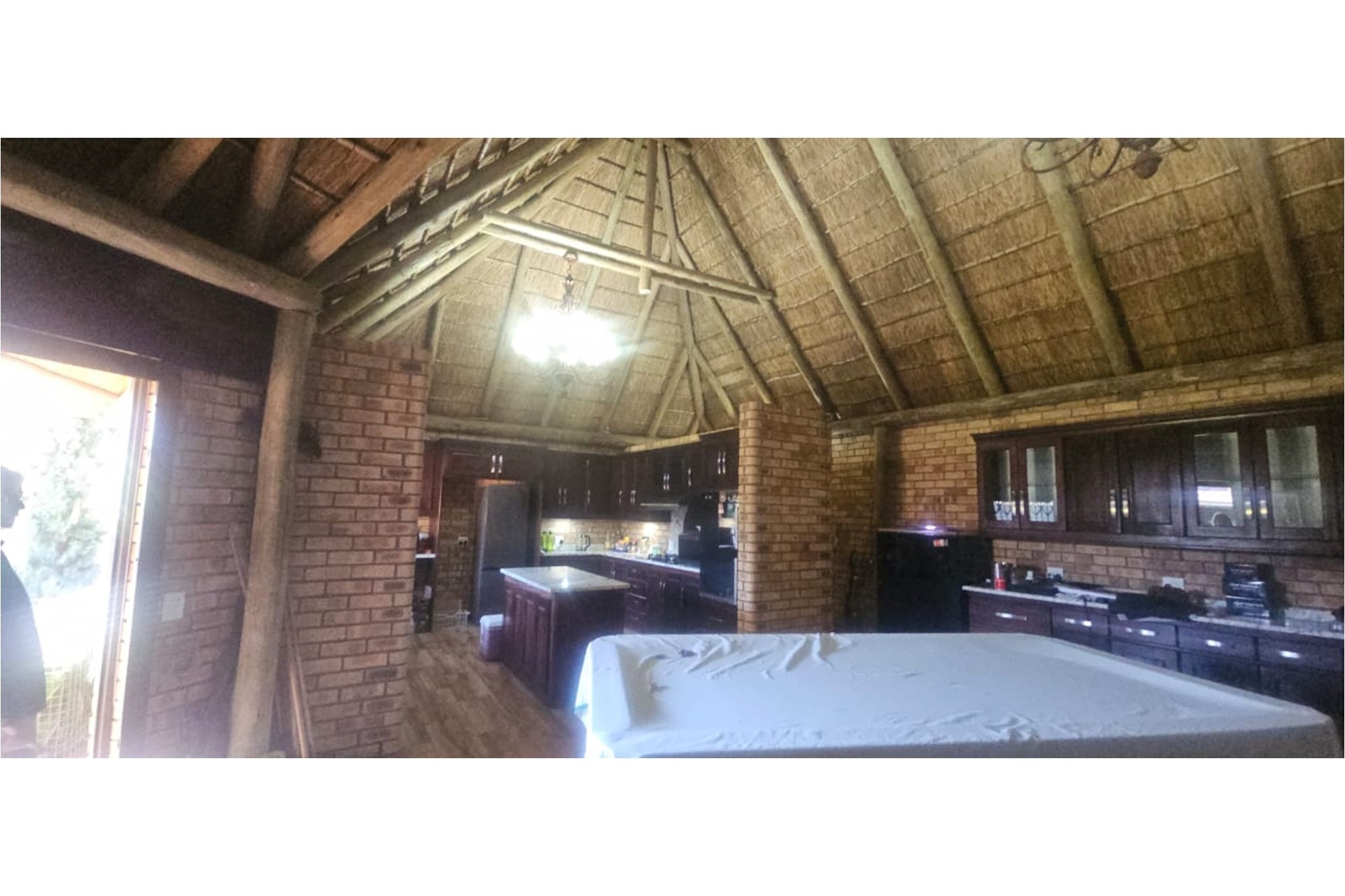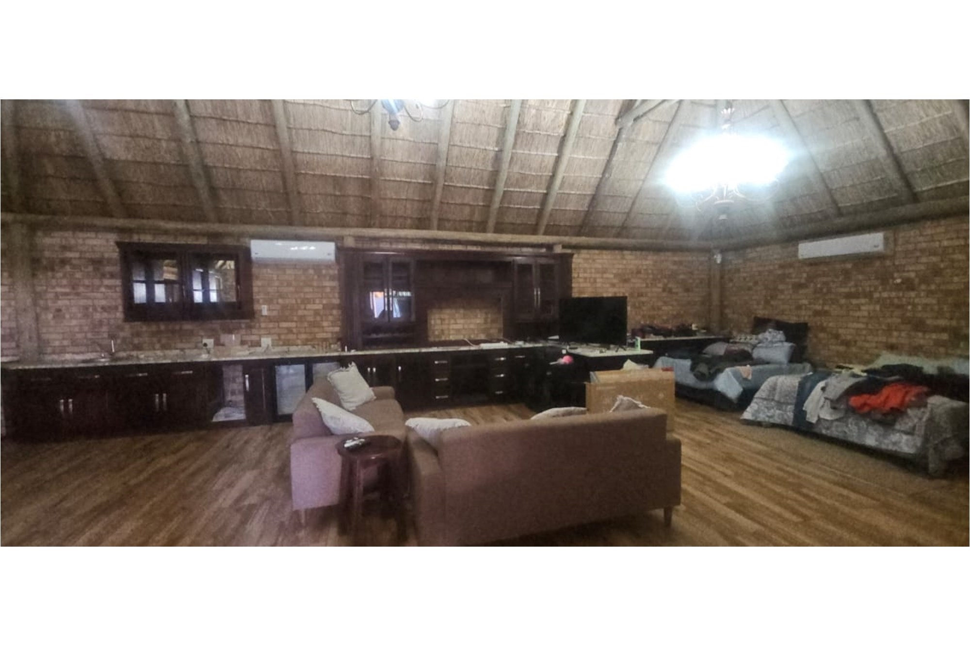 An added bonus is the open-plan lapa, featuring its own fully fitted kitchen, family room, bedroom, and bathroom—perfect for guests or extended family. Outdoor living is enhanced with a covered patio, ideal for hosting gatherings in any season. Staff accommodation is also included for added convenience.