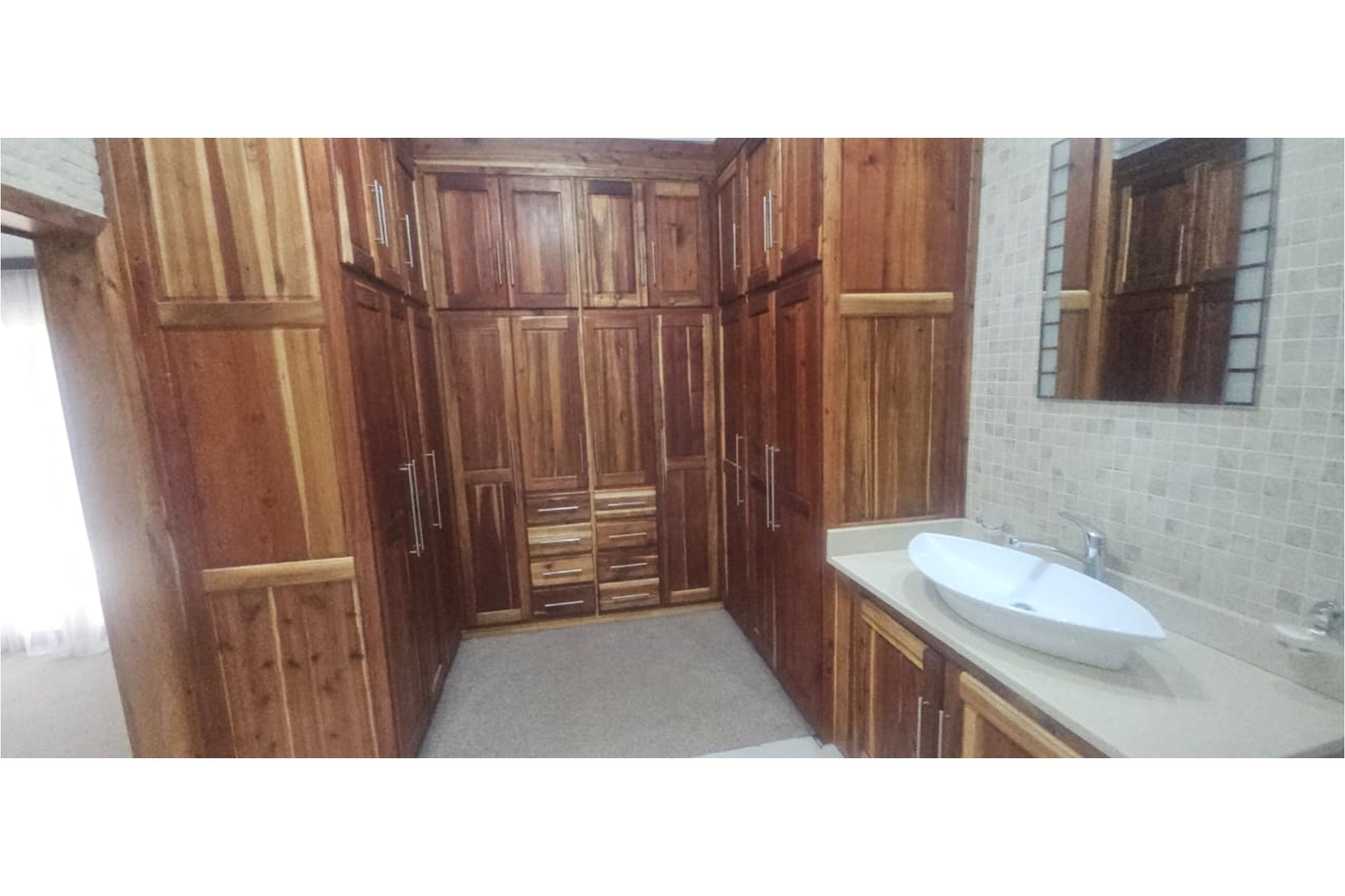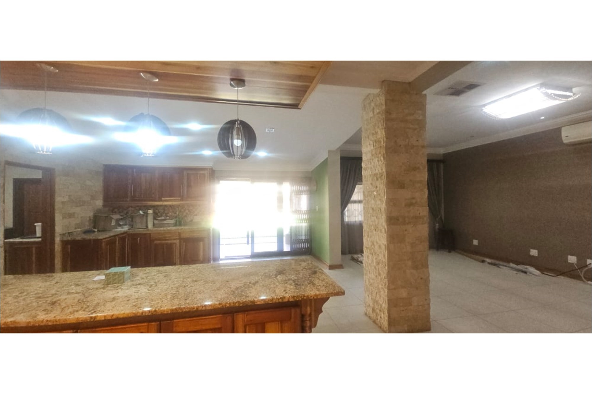 The property includes a garage with space for four vehicles and double electric doors, ensuring secure parking. The beautifully maintained garden is supported by a borehole, and the home is equipped with solar panels, backup power, and a generator—offering peace of mind during power outages.
