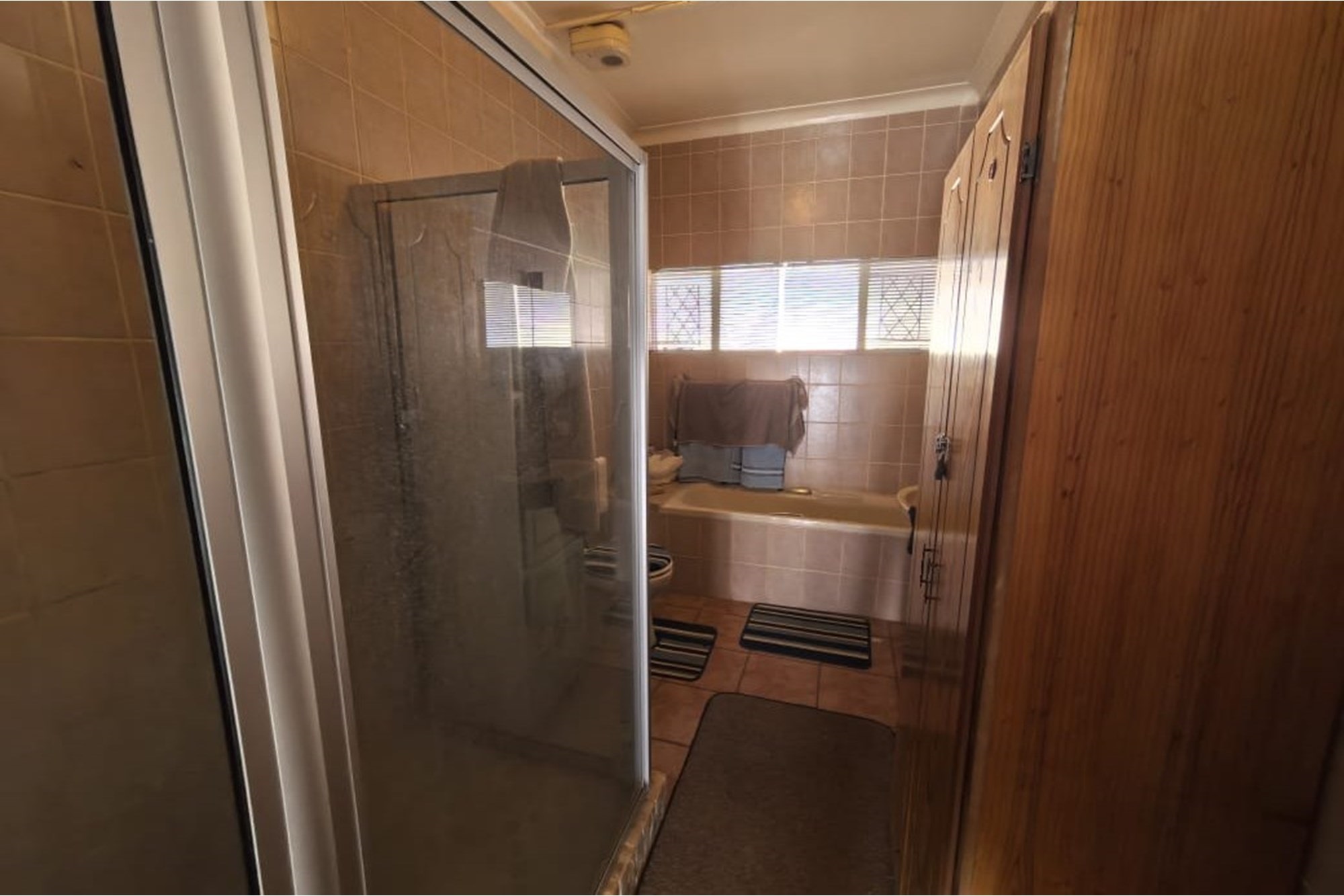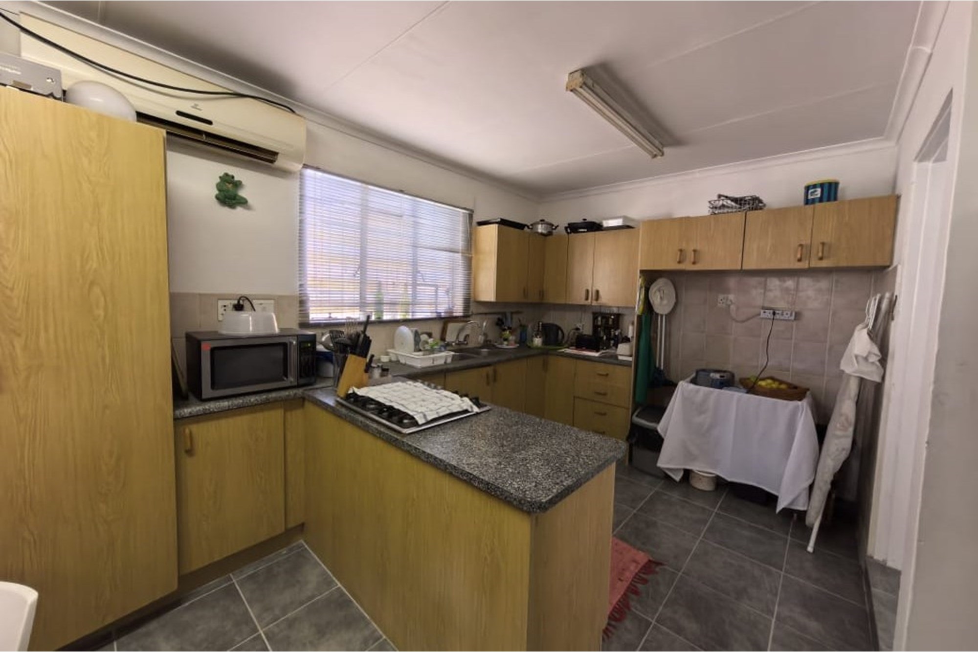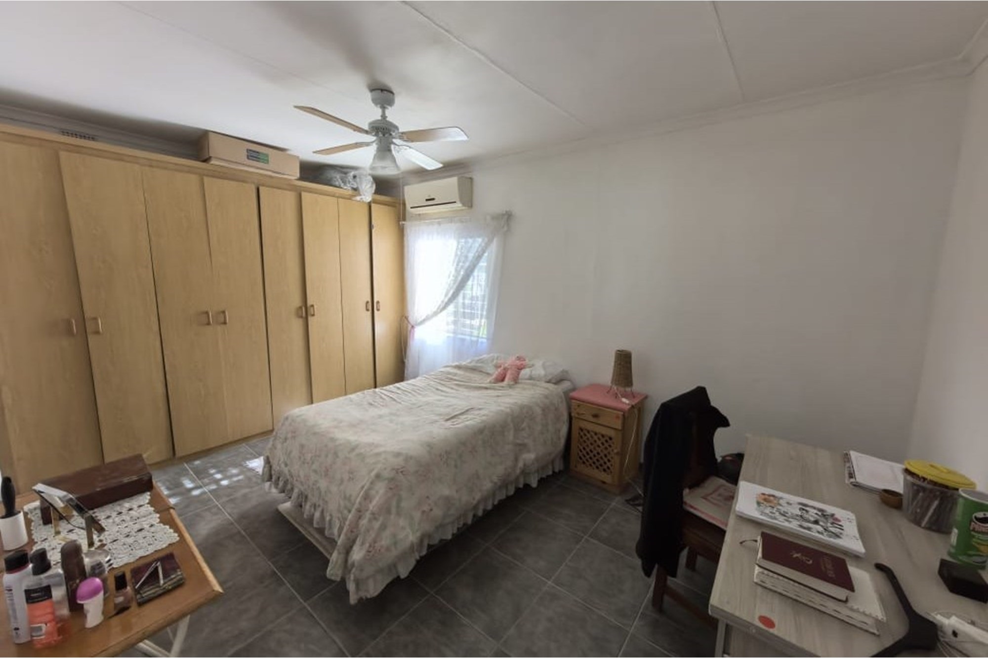 Spacious five-bedroom, two-bathroom family home with a guest toilet, ideally located close to leading schools. The inviting lounge features an indoor braai, perfect for year-round entertaining, and a study provides space for working from home. The well-equipped kitchen offers built-in cupboards, an eye-level oven/hob, gas stove, extractor fan, and a separate scullery.