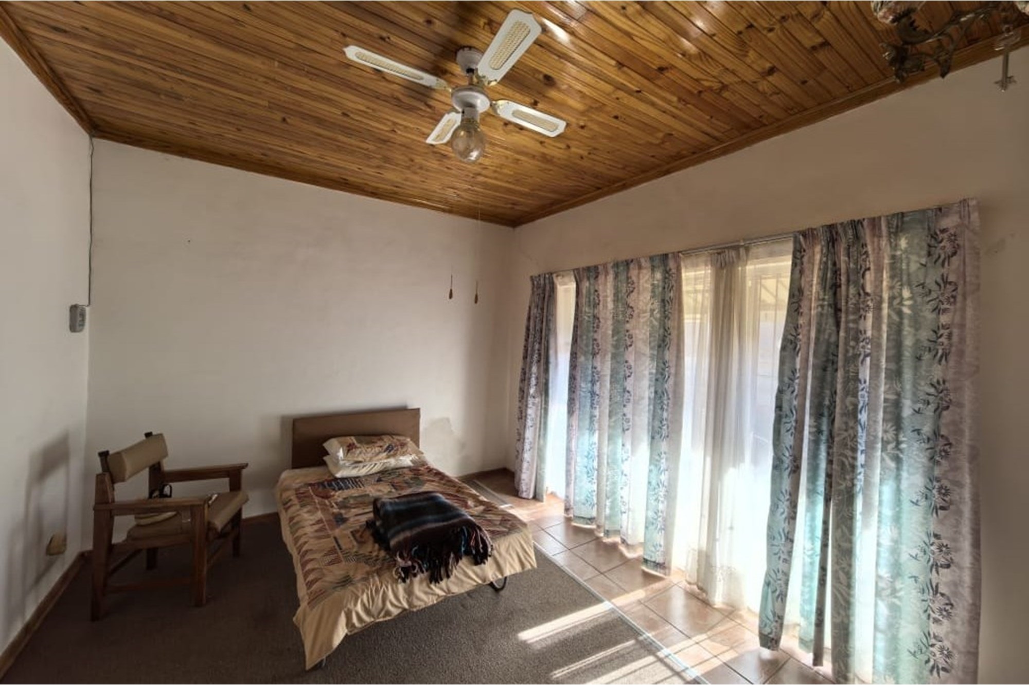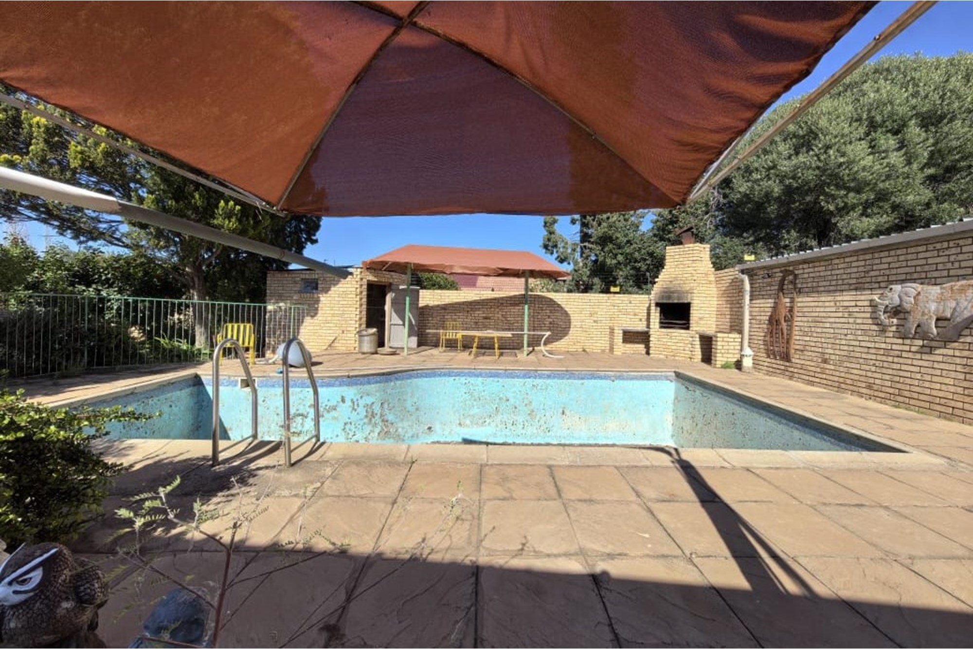 A one-bedroom flat adds excellent income potential or space for extended family. Outside, you’ll find a large carport for four vehicles, additional open parking for two, and a garden with a built-in braai. The swimming pool (currently empty) is ready for restoration. Three Jo-Jo tanks, a borehole, and a shed enhance the property’s practicality.