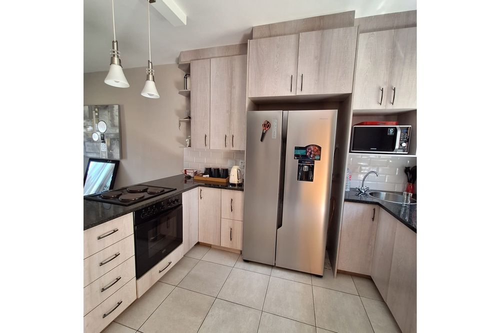 Features include:3 Spacious Bedrooms:All bedrooms are fitted with built-in cupboards, ensuring ample storage space.2 Bathrooms:A well-appointed family bathroom and an en-suite bathroom for added privacy and luxury.Open-Plan Living:The lounge, dining room, and kitchen flow seamlessly, creating a bright and airy space perfect for family gatherings and entertaining.Modern Kitchen:Equipped with built-in cupboards, an under-counter oven, hob, and a separate scullery for added functionality.Single Garage:Secure parking with direct access to your unit.