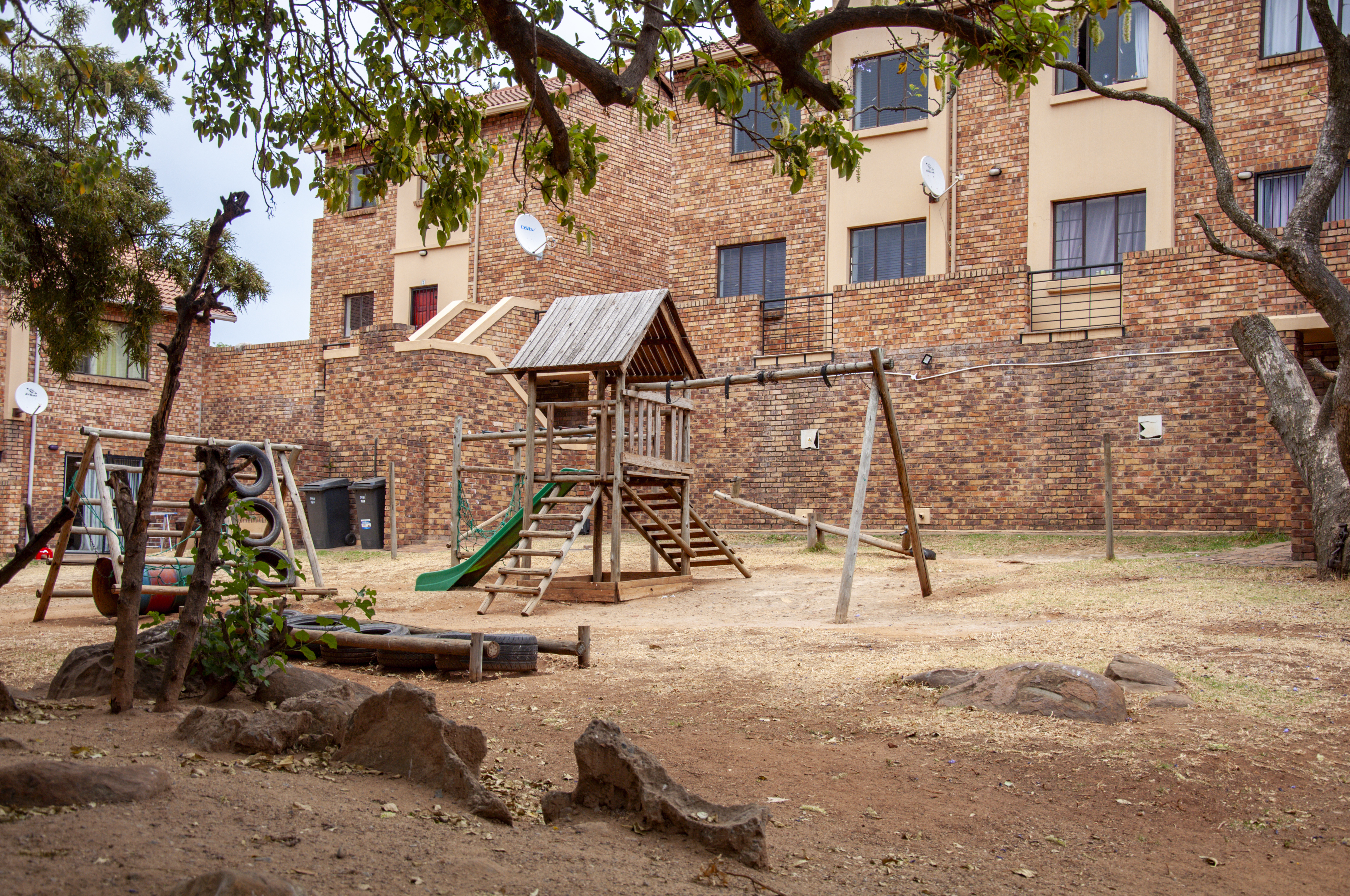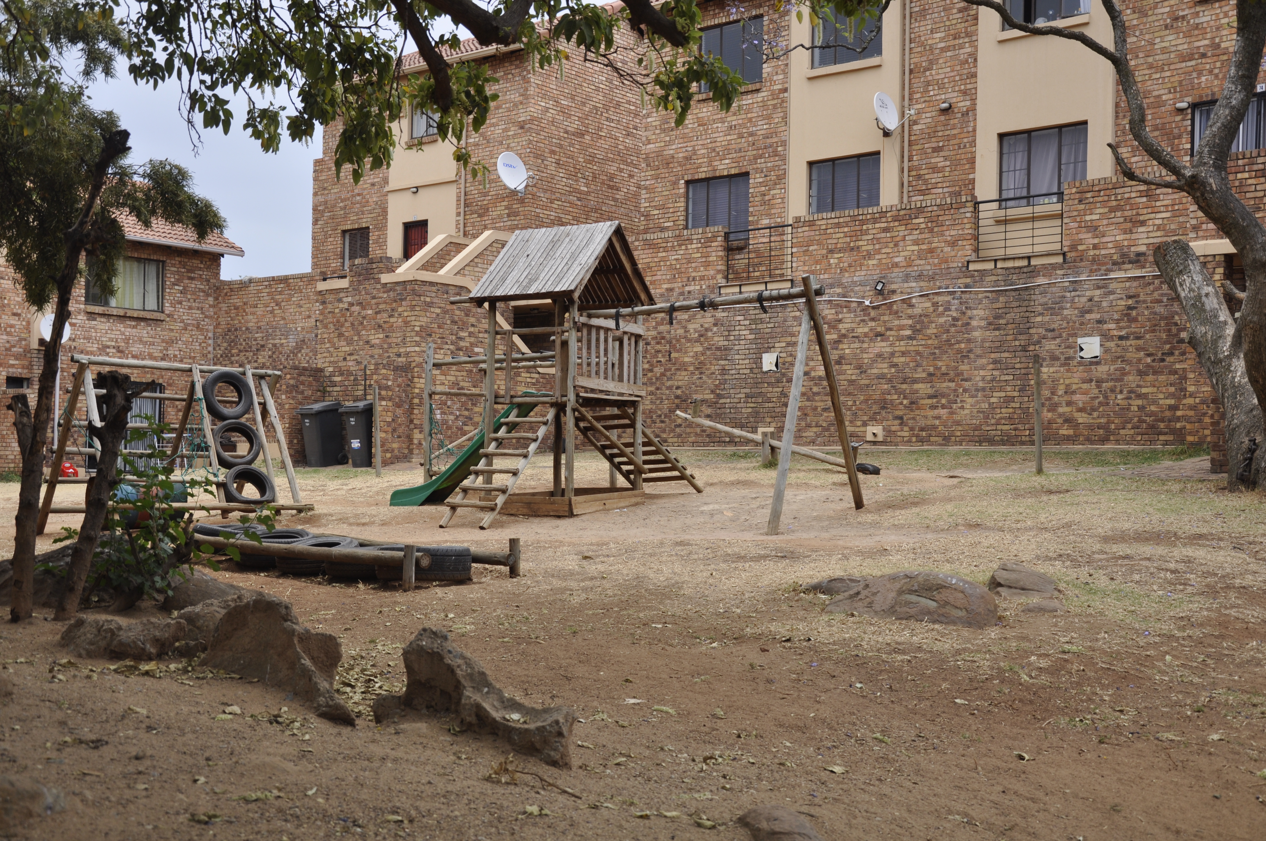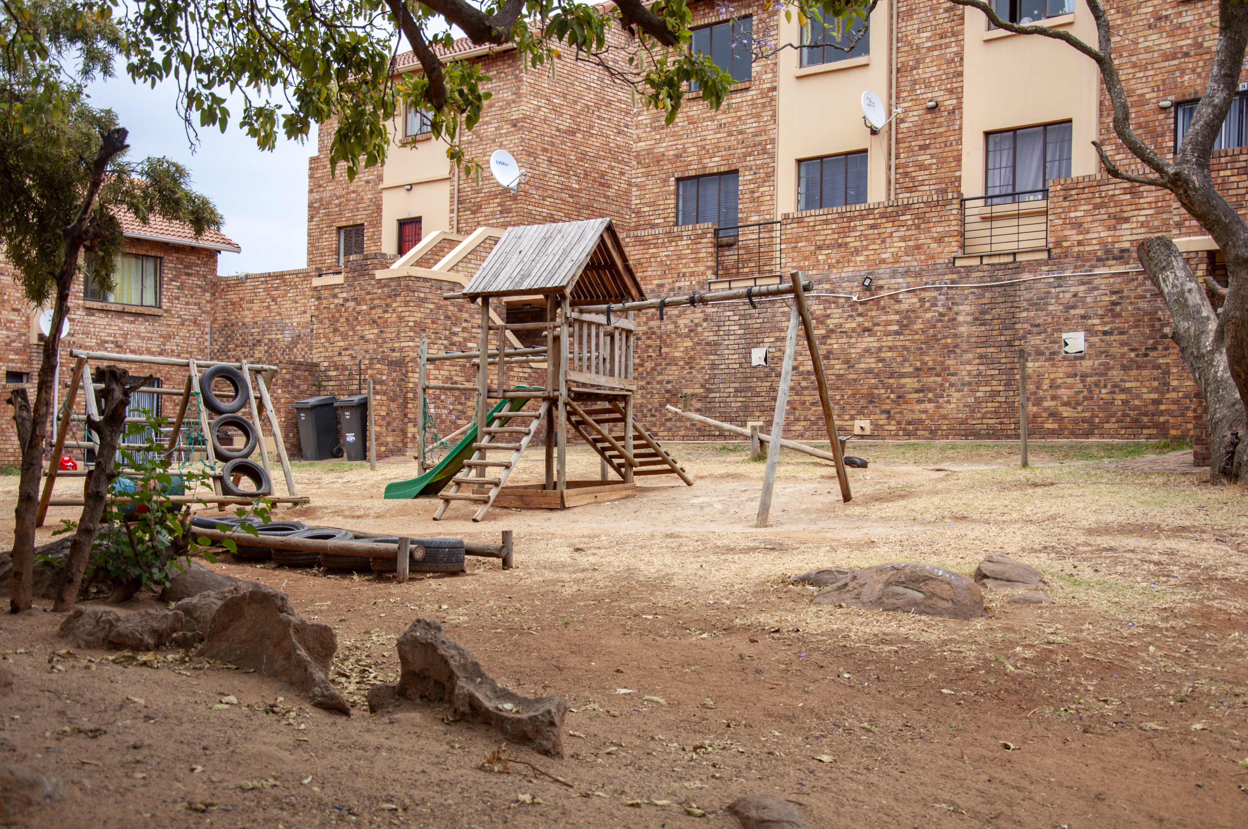Enjoy your morning coffee or evening relaxation on the patio, which overlooks the shared communal area. This space is perfect for families, as it includes a play area for kids, encouraging outdoor fun and community interaction.
