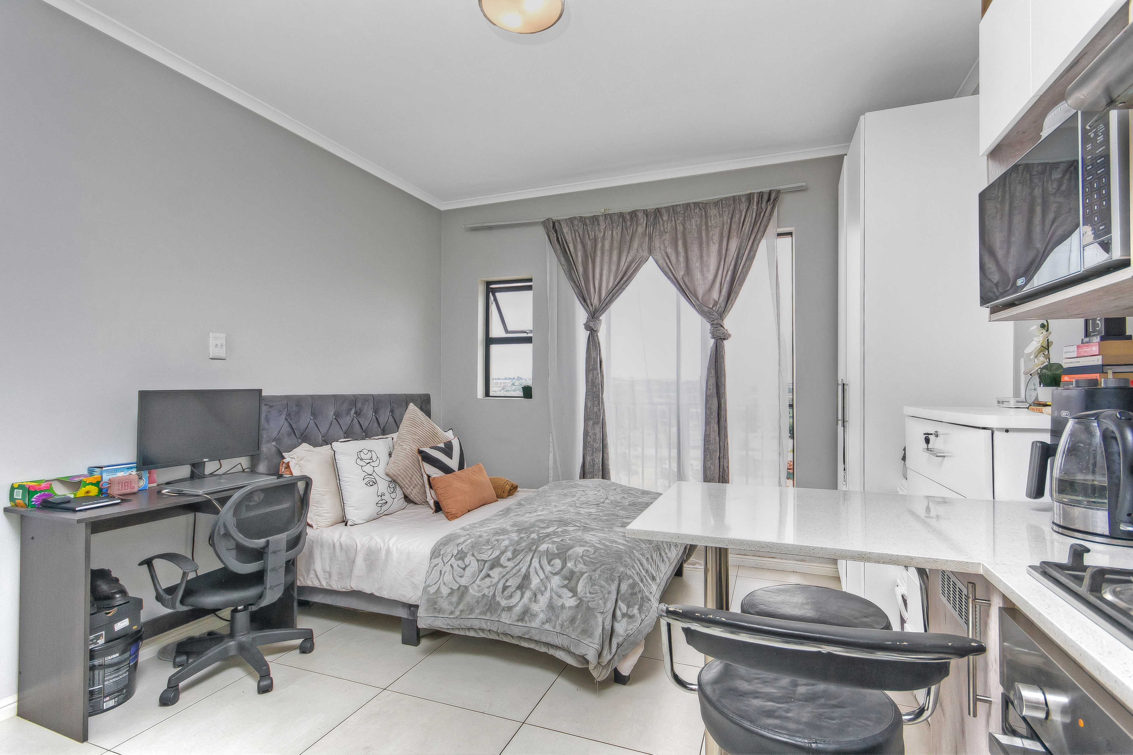 This modern studio apartment is ideally located less than 6km from the Mall of Africa, offering effortless access to all major routes, including Sandton, Midrand, and Pretoria. Smaller shopping centres are close by, and Netcare Waterfall Hospital is conveniently situated just 6km away.