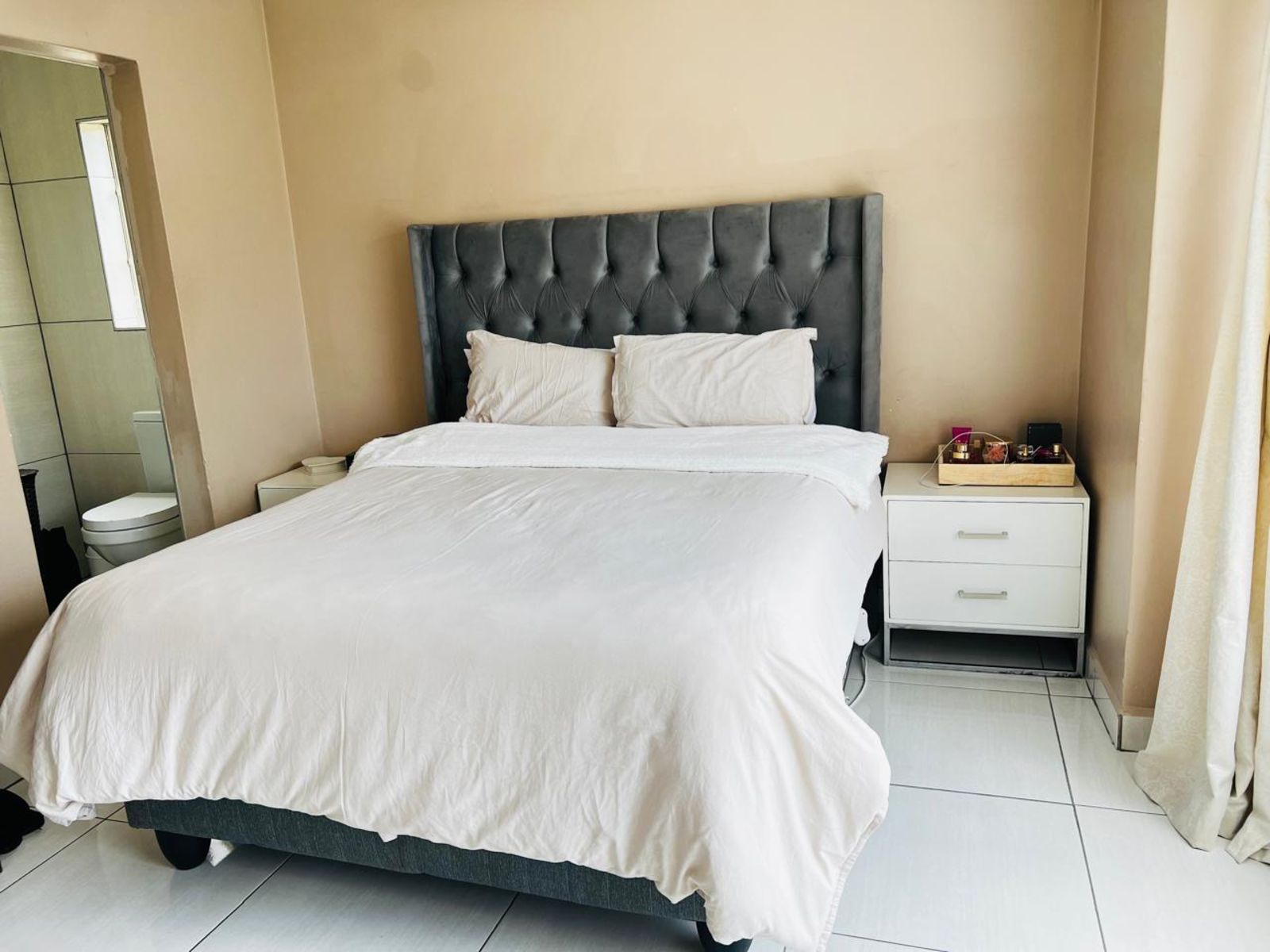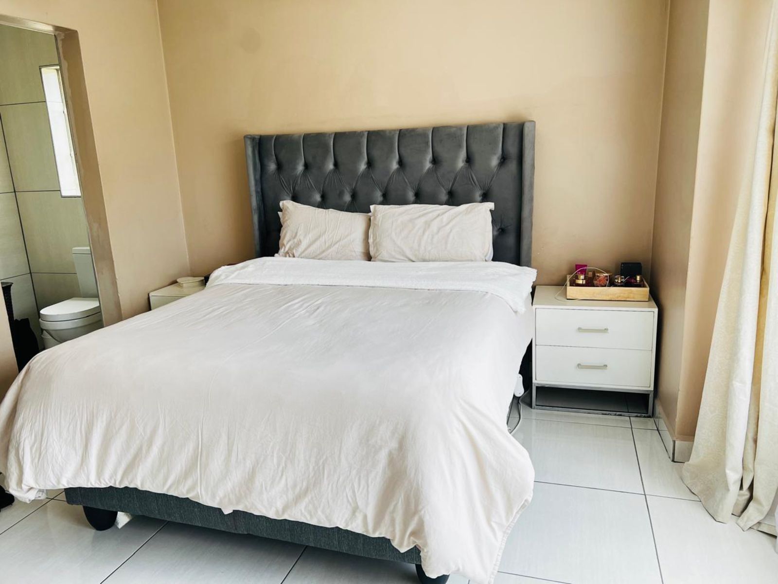 The Bedrooms: Two generously sized bedrooms with built-in cupboards. The master suite features an en-suite bathroom for ultimate privacy.