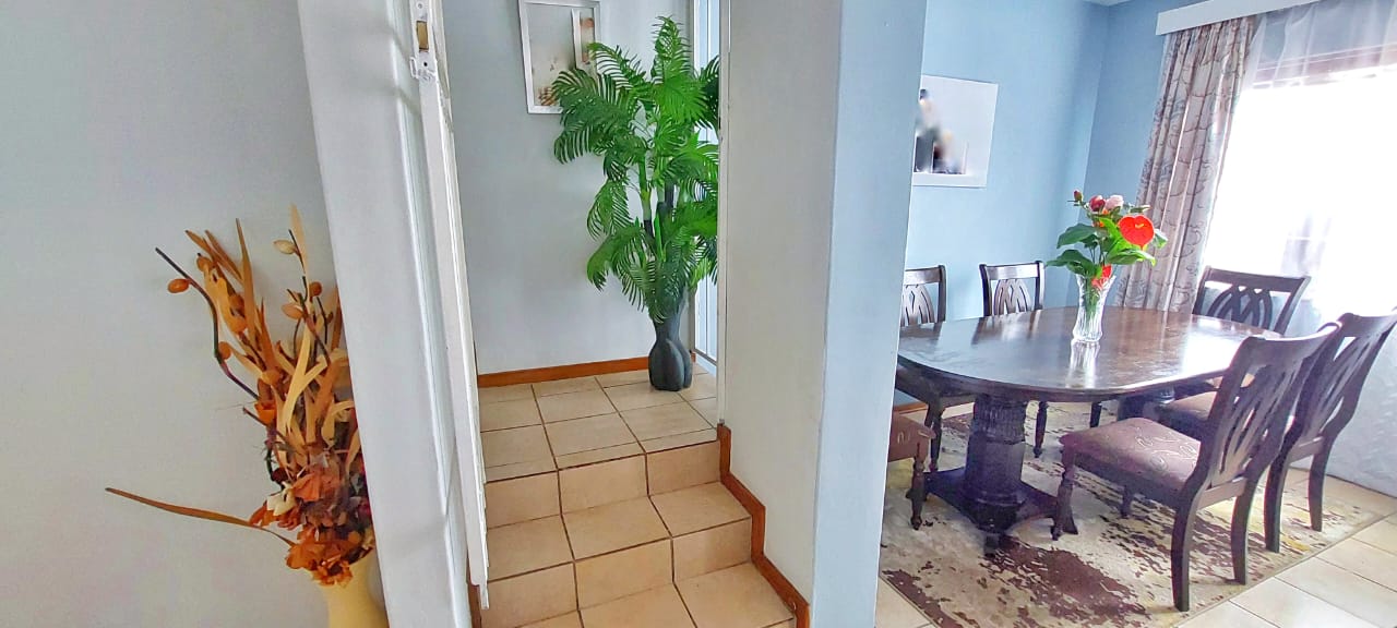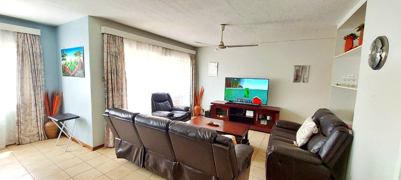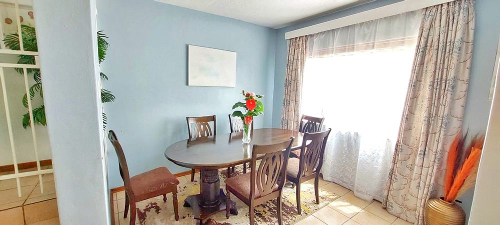 No stress, just simple family living. Now step inside, and you’re welcomed by an open-plan lounge and dining area, a bright, airy space where children’s laughter, family meals, and cozy evenings naturally unfold. Sunlight streams in through large windows and sliding doors, opening onto a private garden and patio. It's the perfect spot for weekend braais, quiet morning coffees, or safe playtime for the kids.