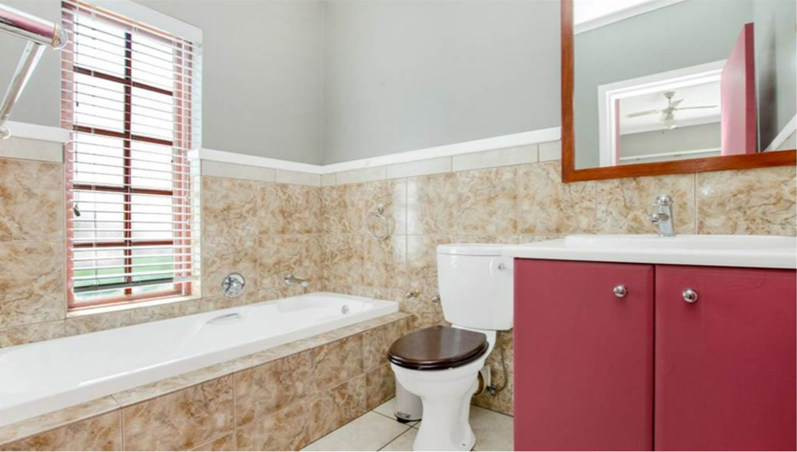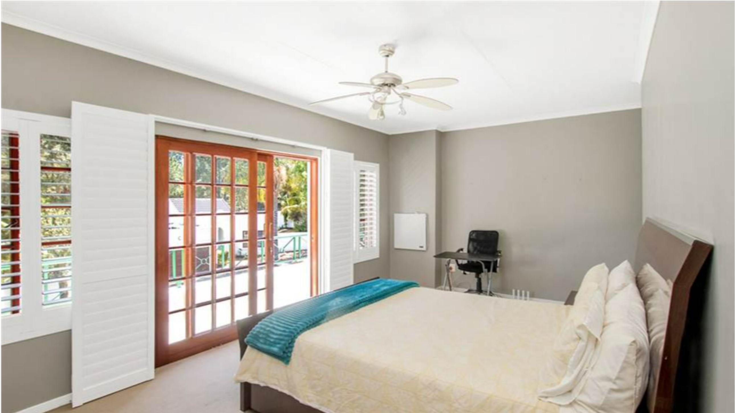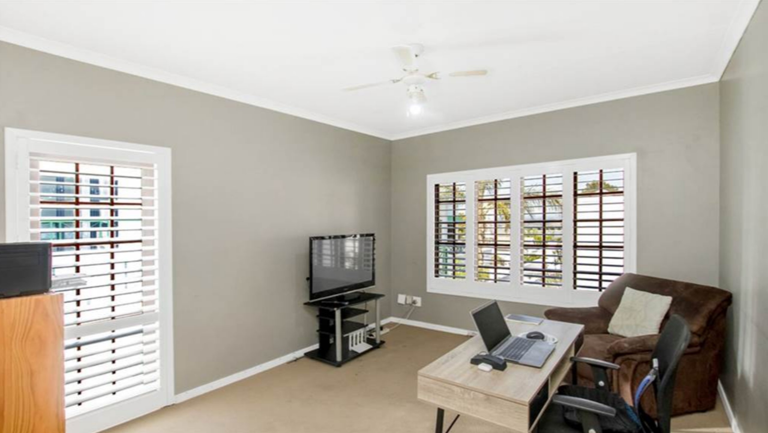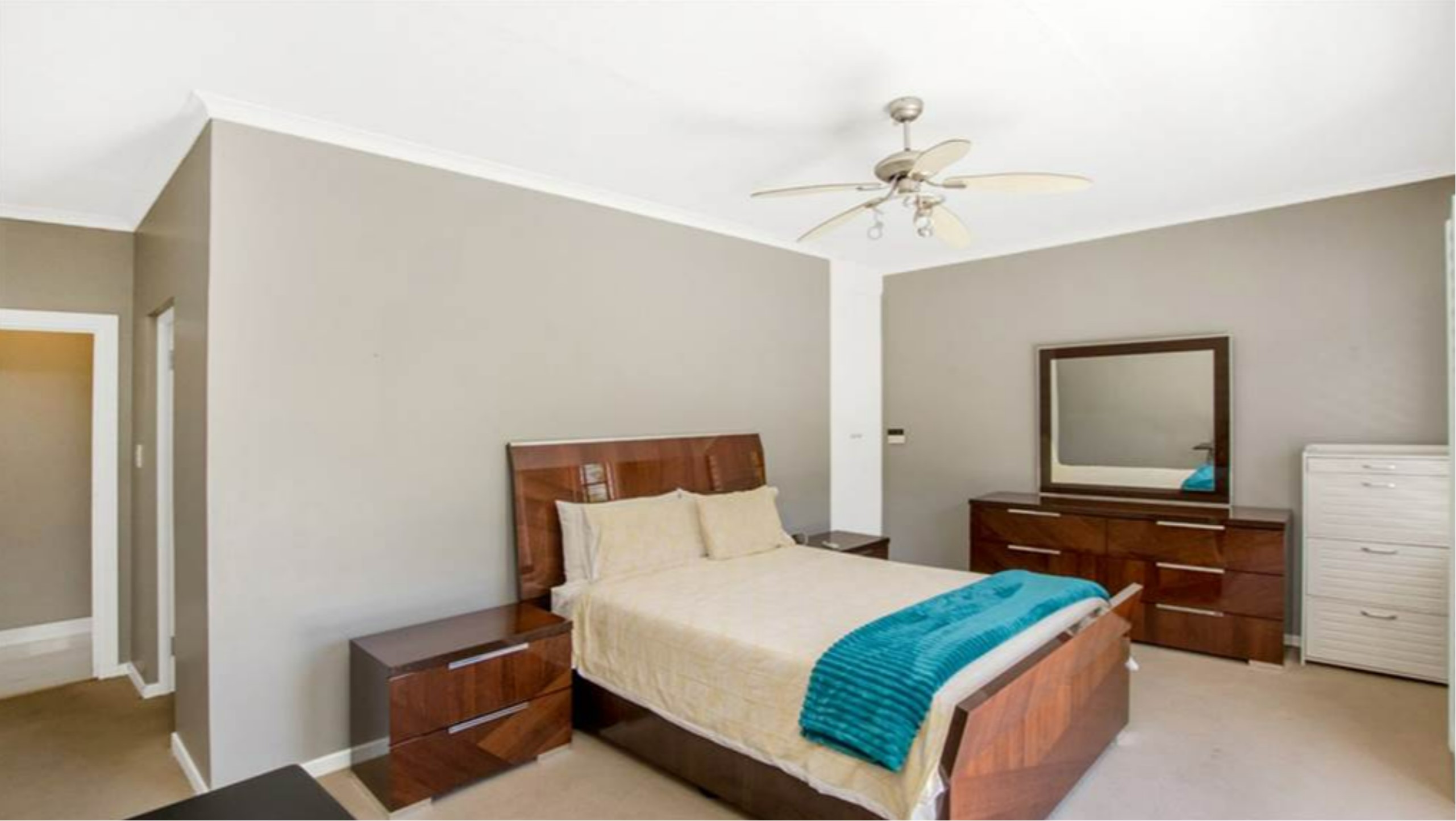 4 spacious bedrooms all fitted with carpeted floors and built-in cupboards. The 1st and main bedrooms have private balconies, while the 2nd and upstairs study have a shared balcony. 3 bedrooms are located upstairs, whilst the 4th is downstairs.