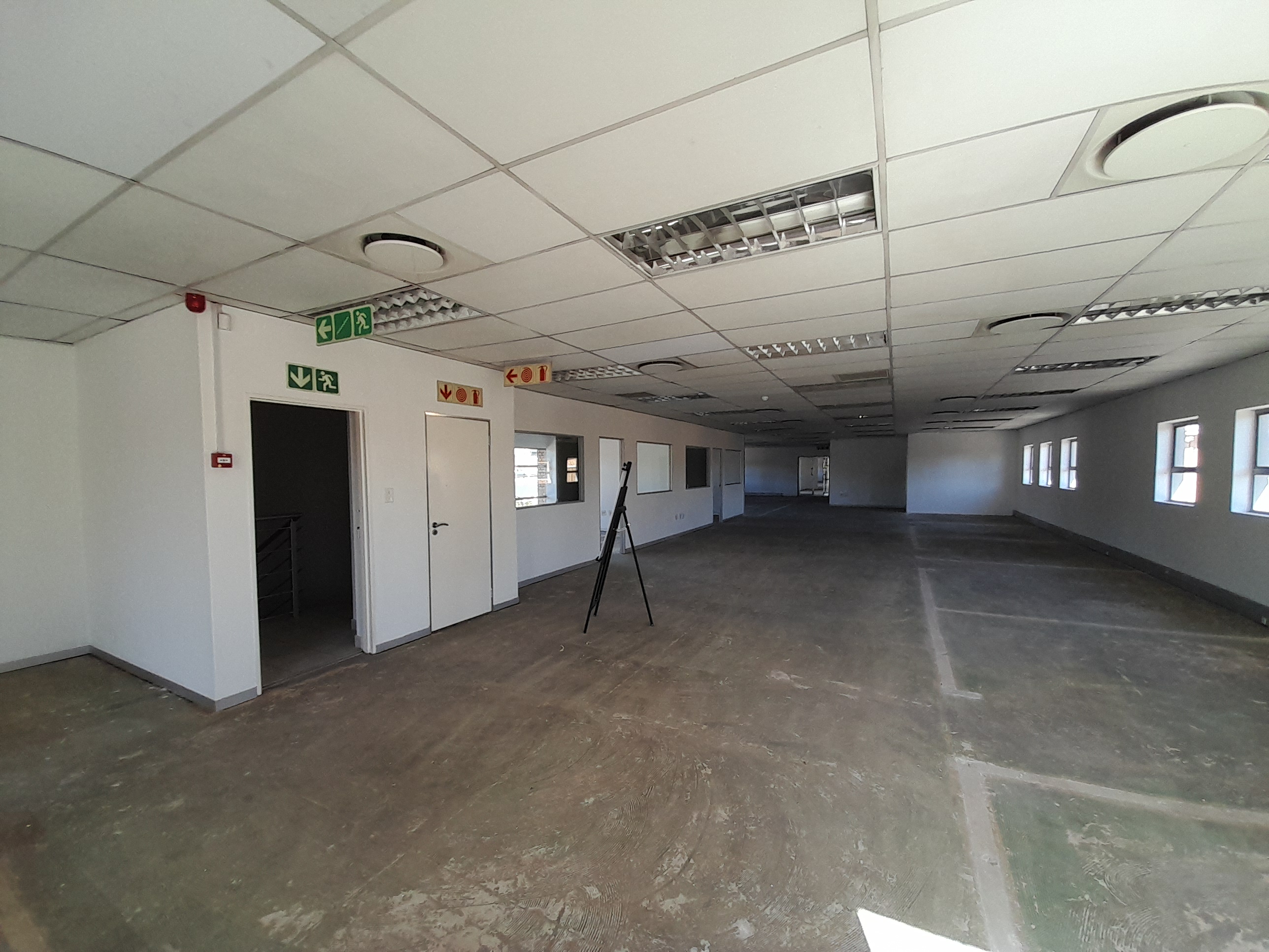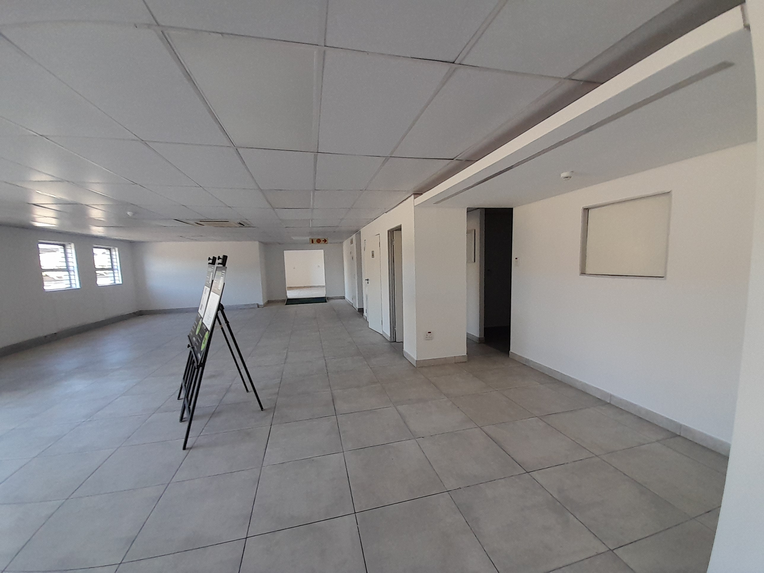 The space spans part of the ground floor and the entire first floor, providing generous and flexible accommodation. The layout includes a reception and foyer area, one boardroom, two kitchens, twenty-two closed offices, six open plan work areas, five server rooms, seven ablutions, and multiple balconies that create valuable outdoor breakaway spaces. The ground floor features tiled flooring, while the remaining areas are presented as shell space, allowing tenants to customise finishes and layouts. Large perimeter windows ensure excellent natural light and airflow throughout.
