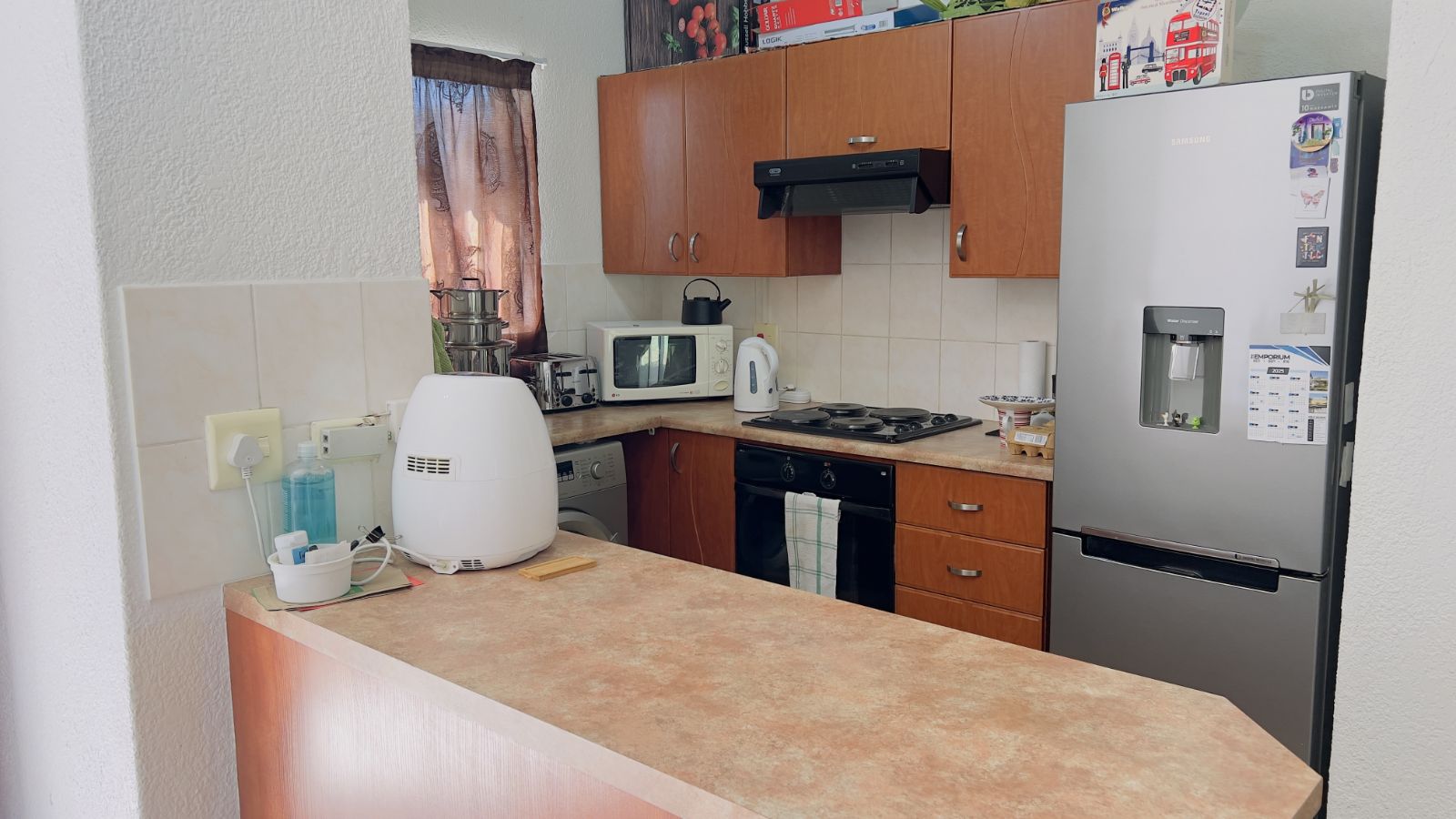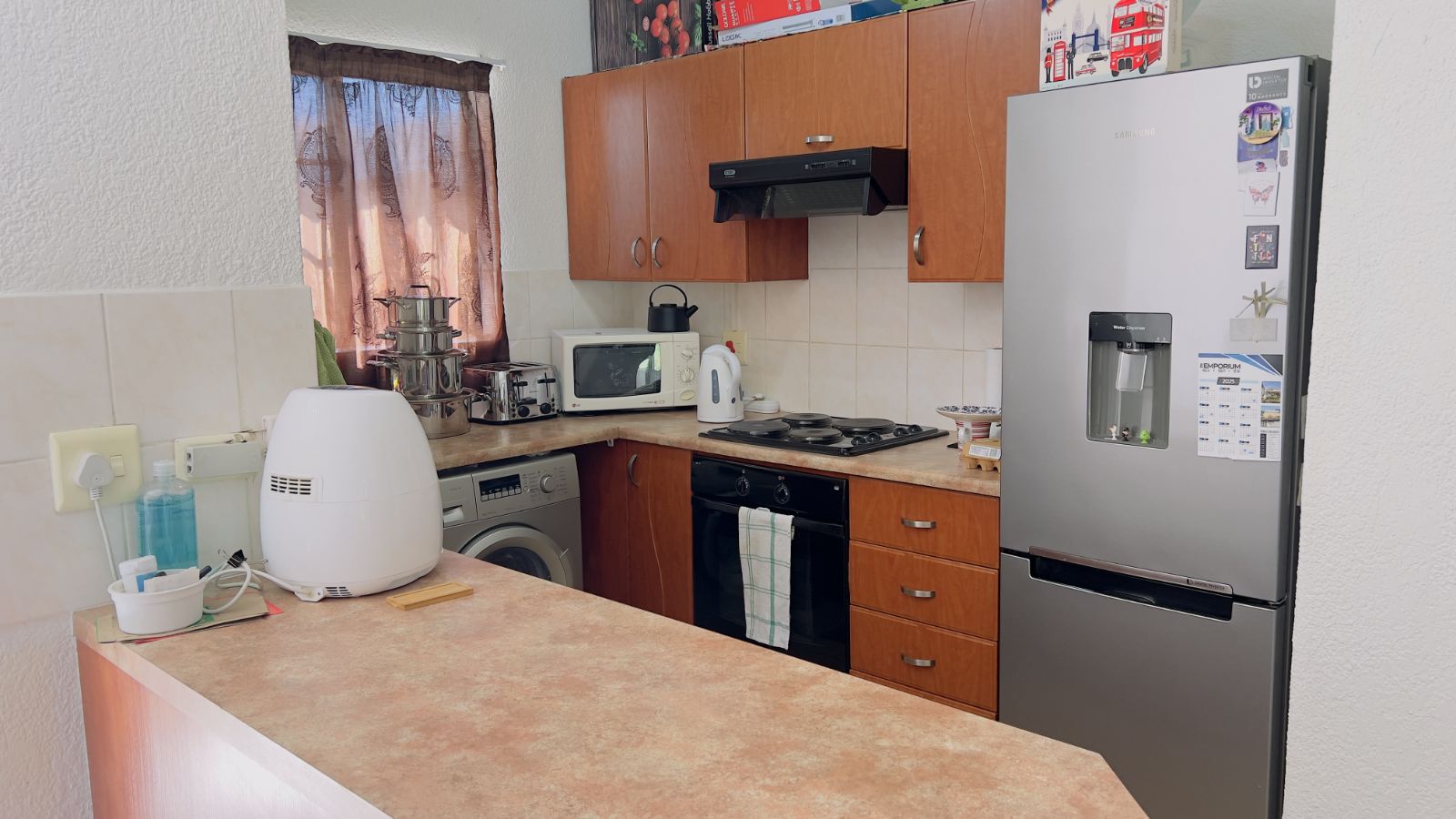 - Modern Kitchen: The kitchen is equipped with a breakfast counter and plenty of cupboard space, ideal for both cooking and entertaining.