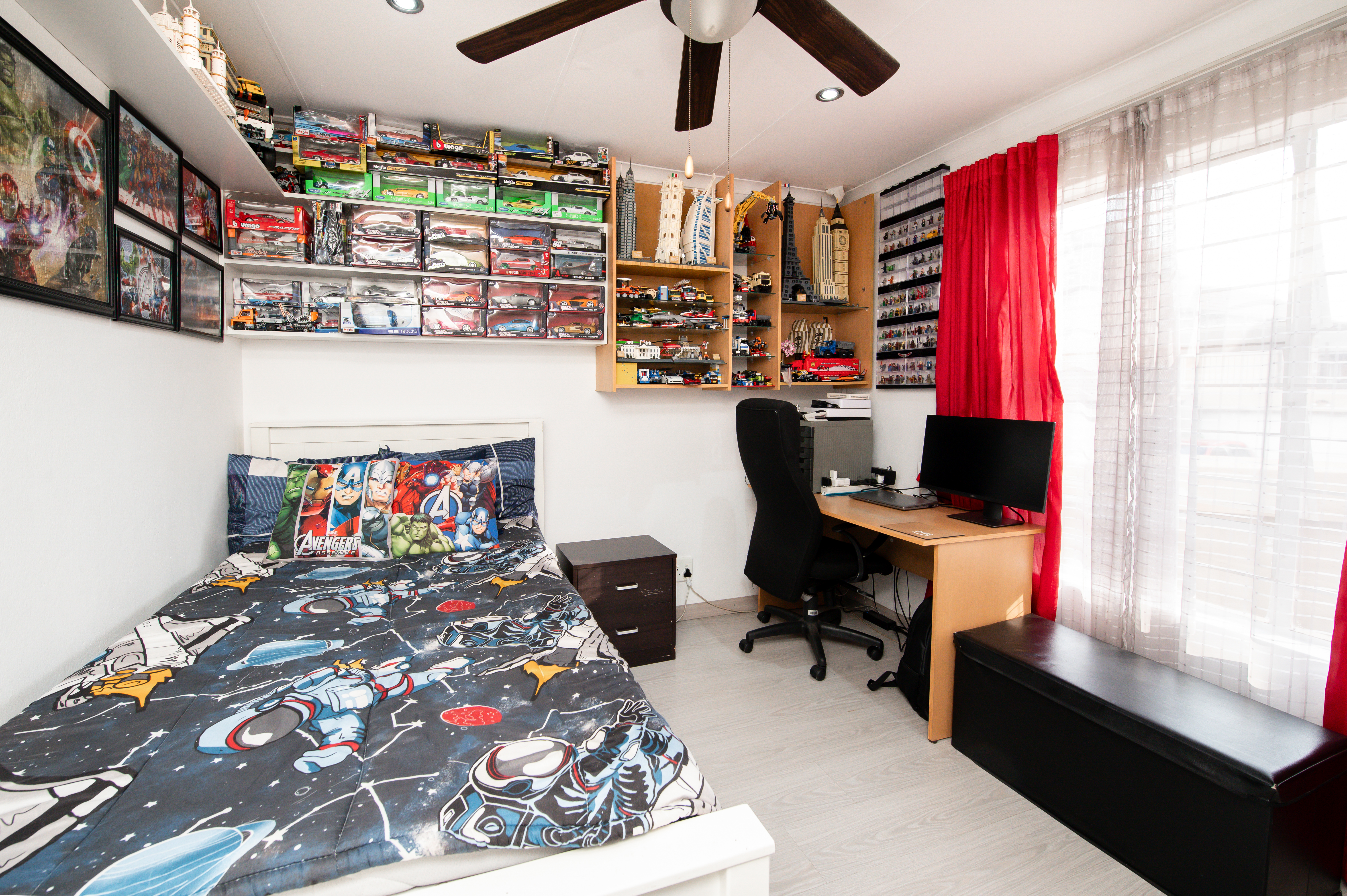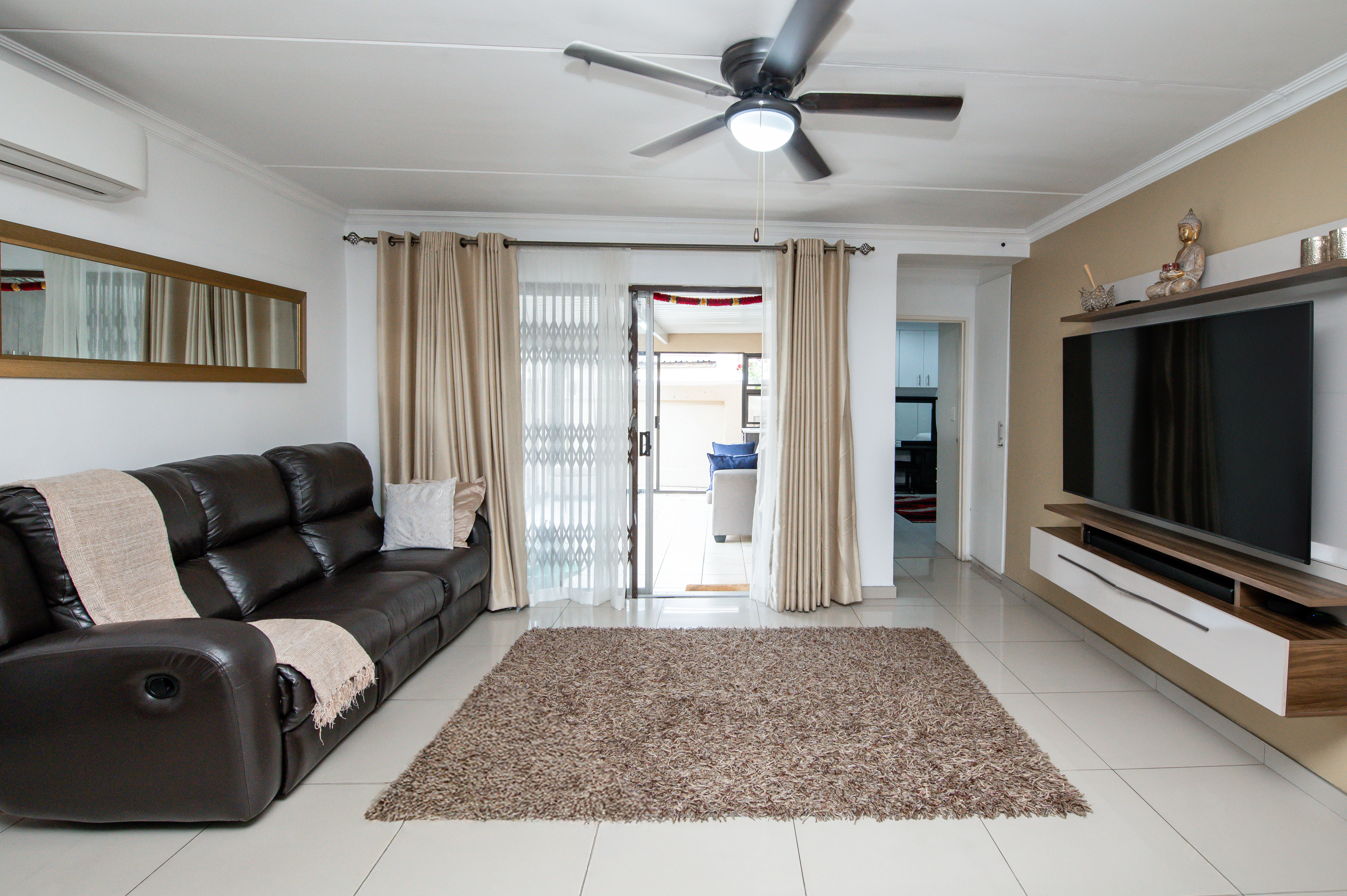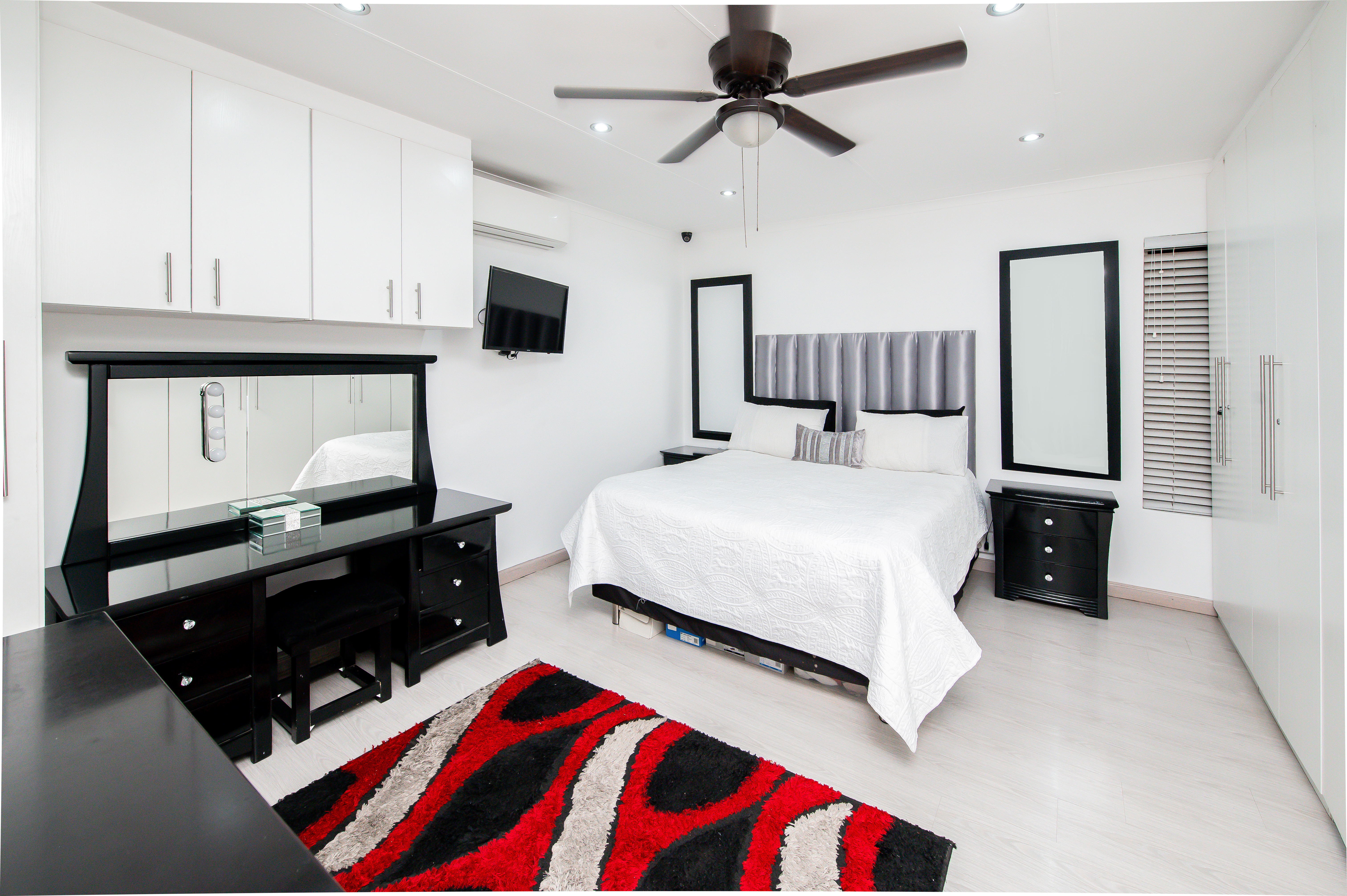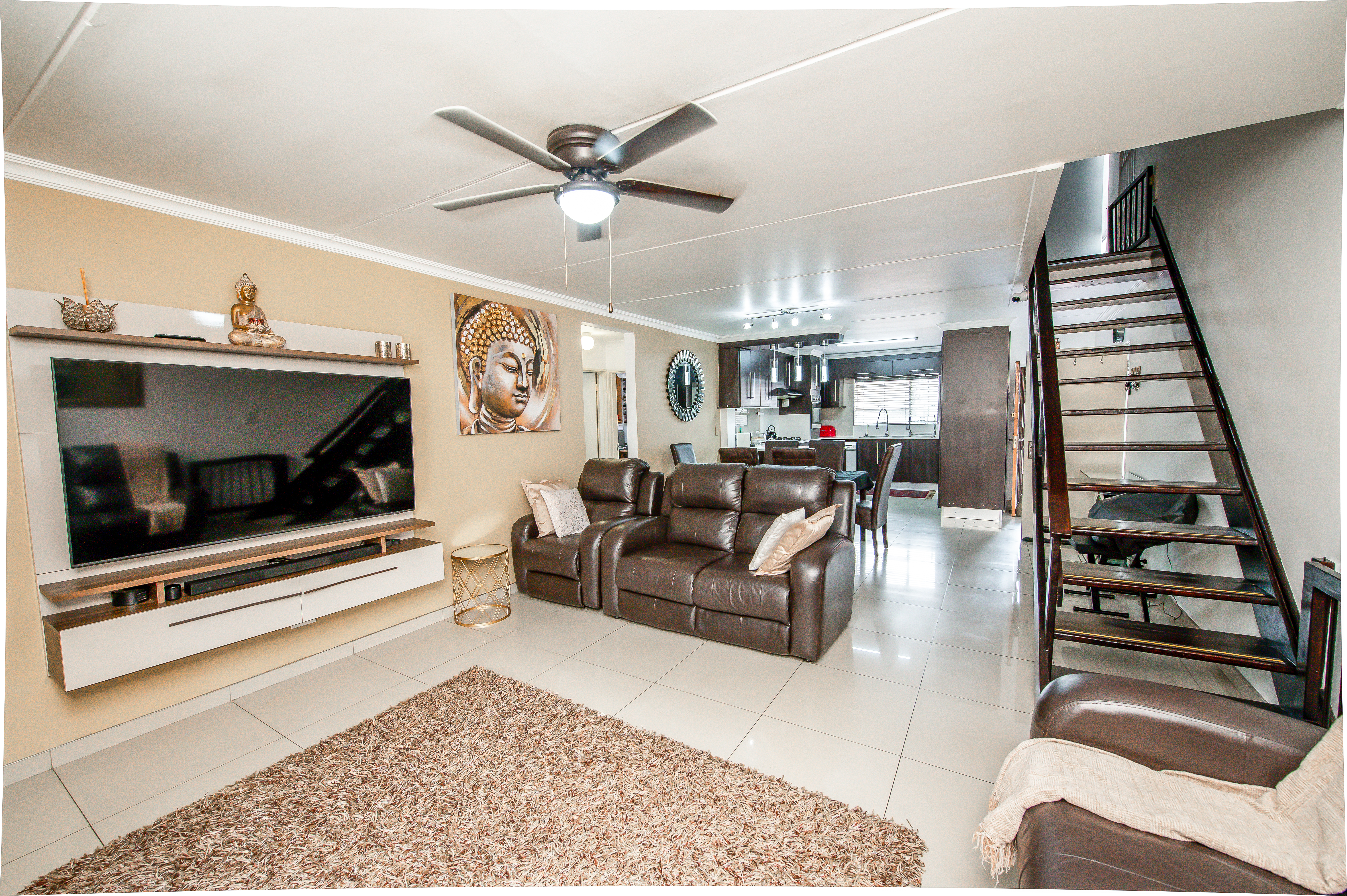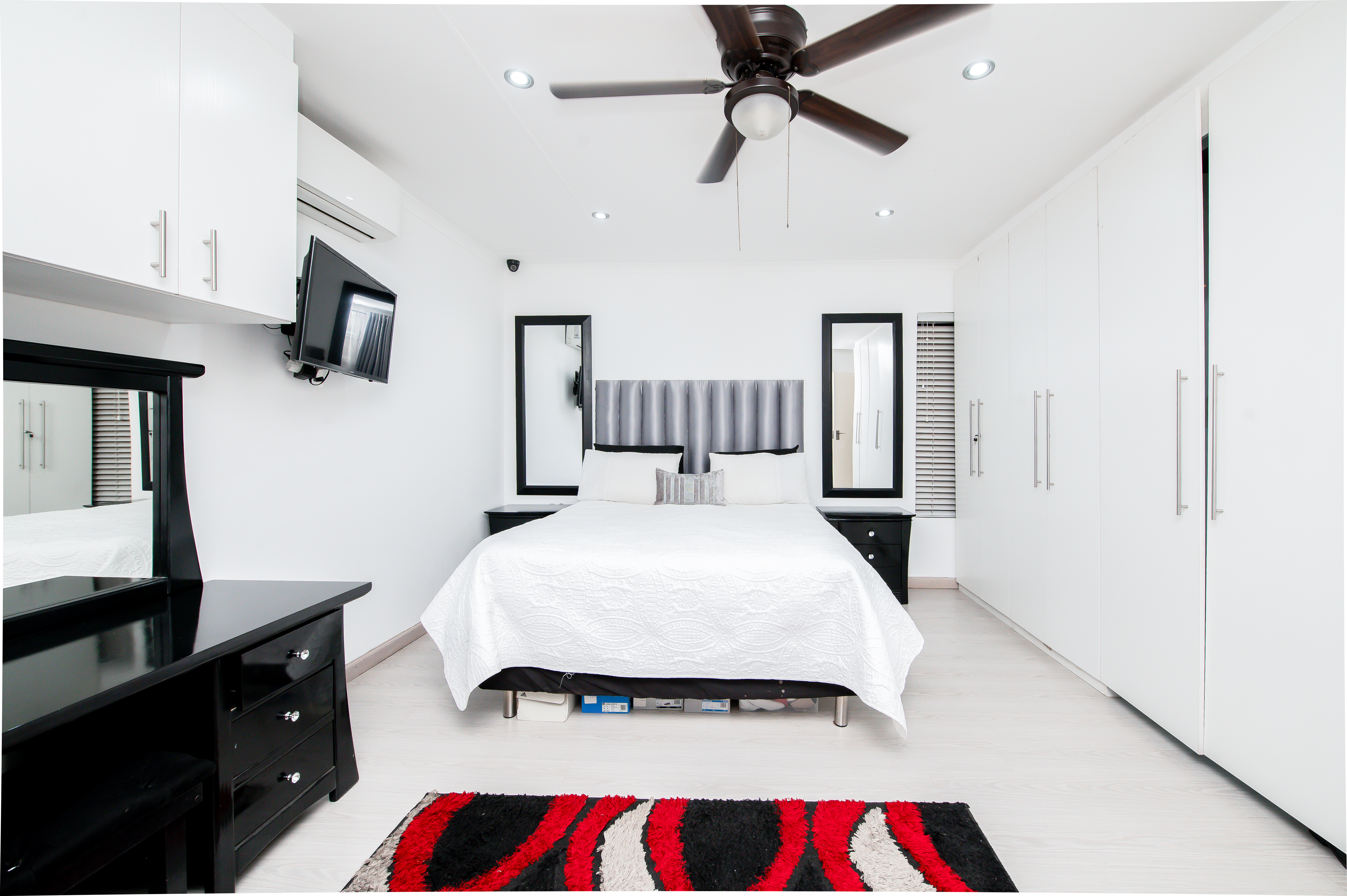 Cameras for remote monitoring, control of air-conditioners, lights, irrigated garden areas and geyser using Alexa. Large storage spaces and Wendy house in the yard