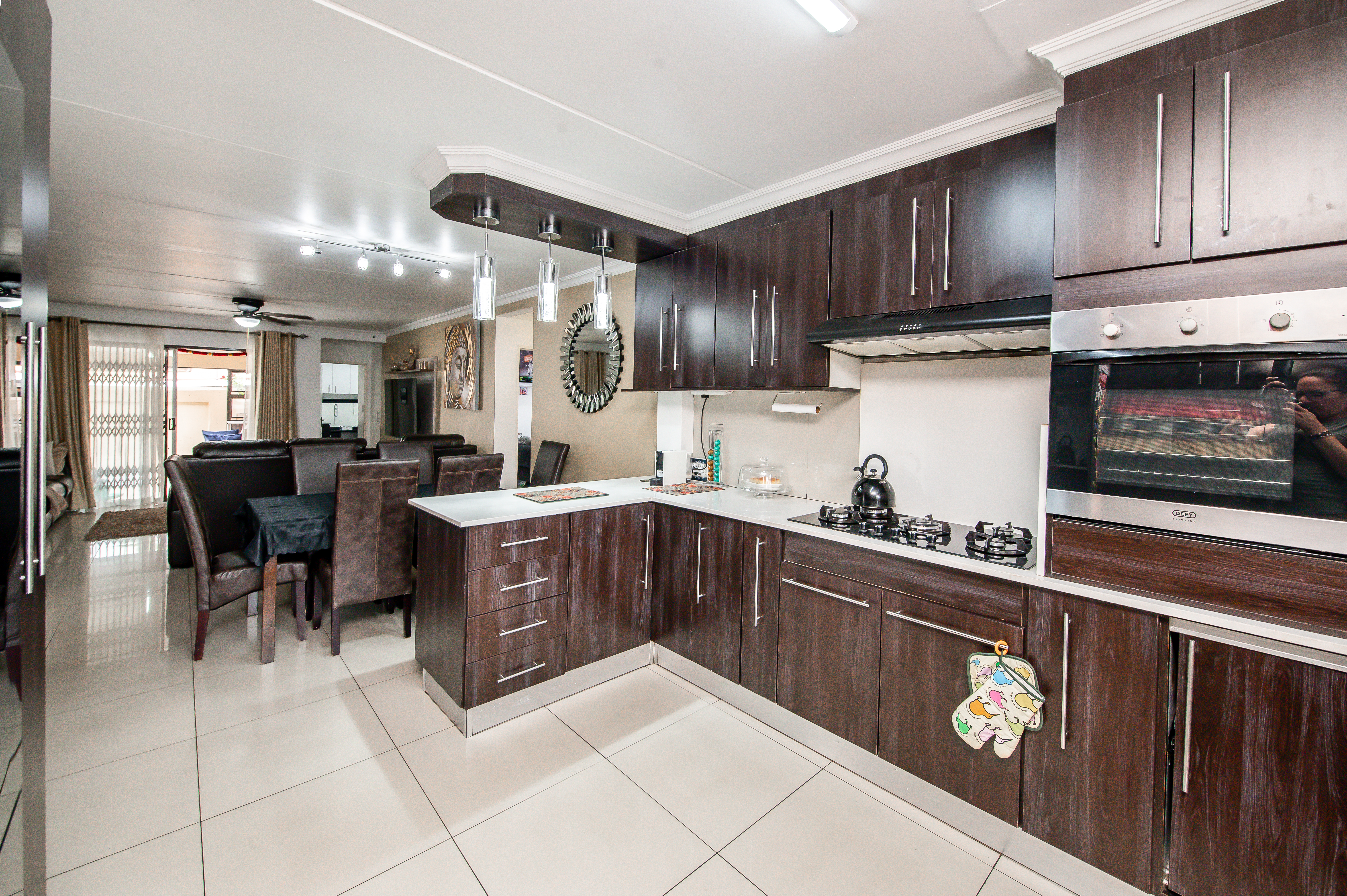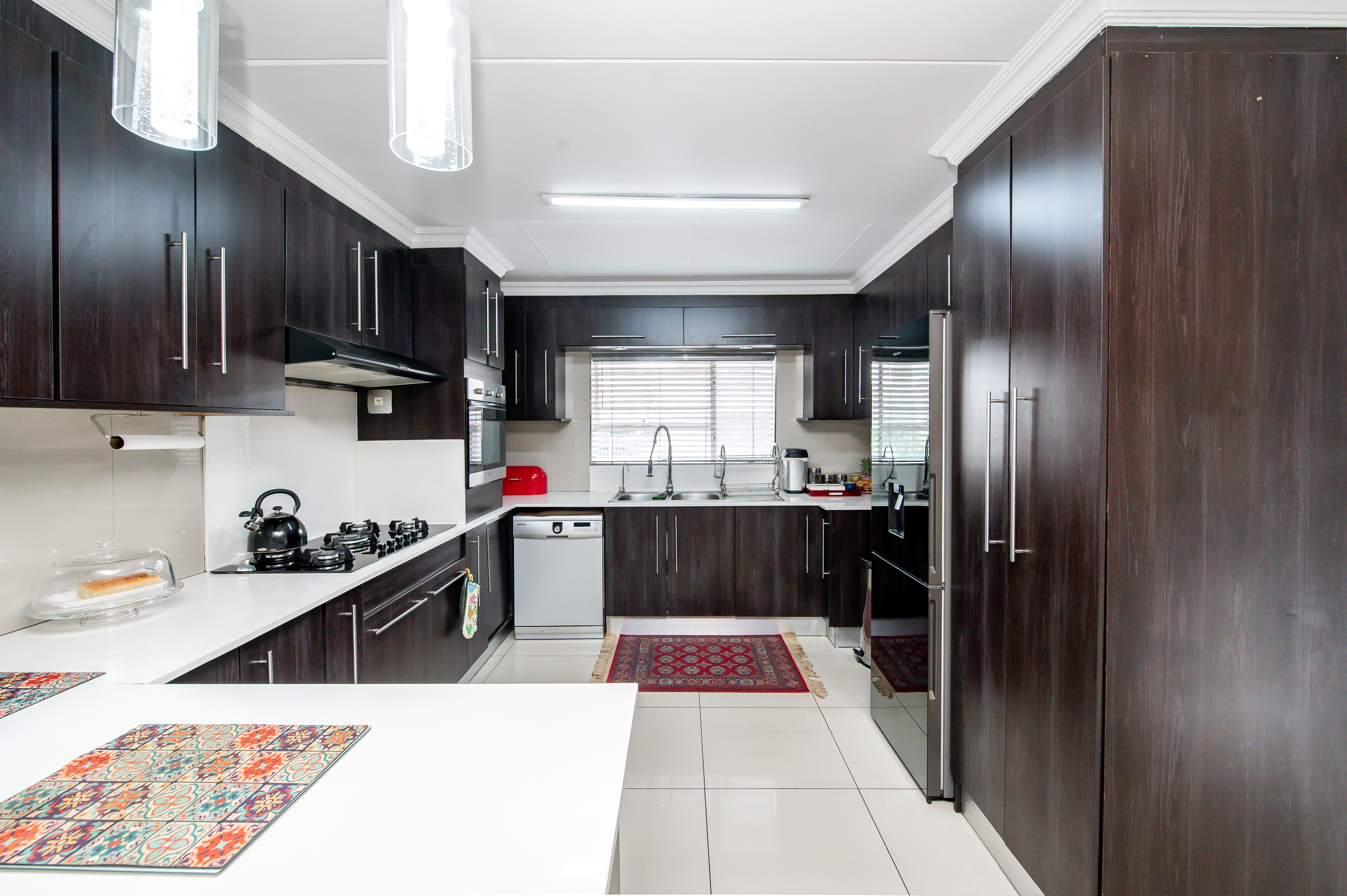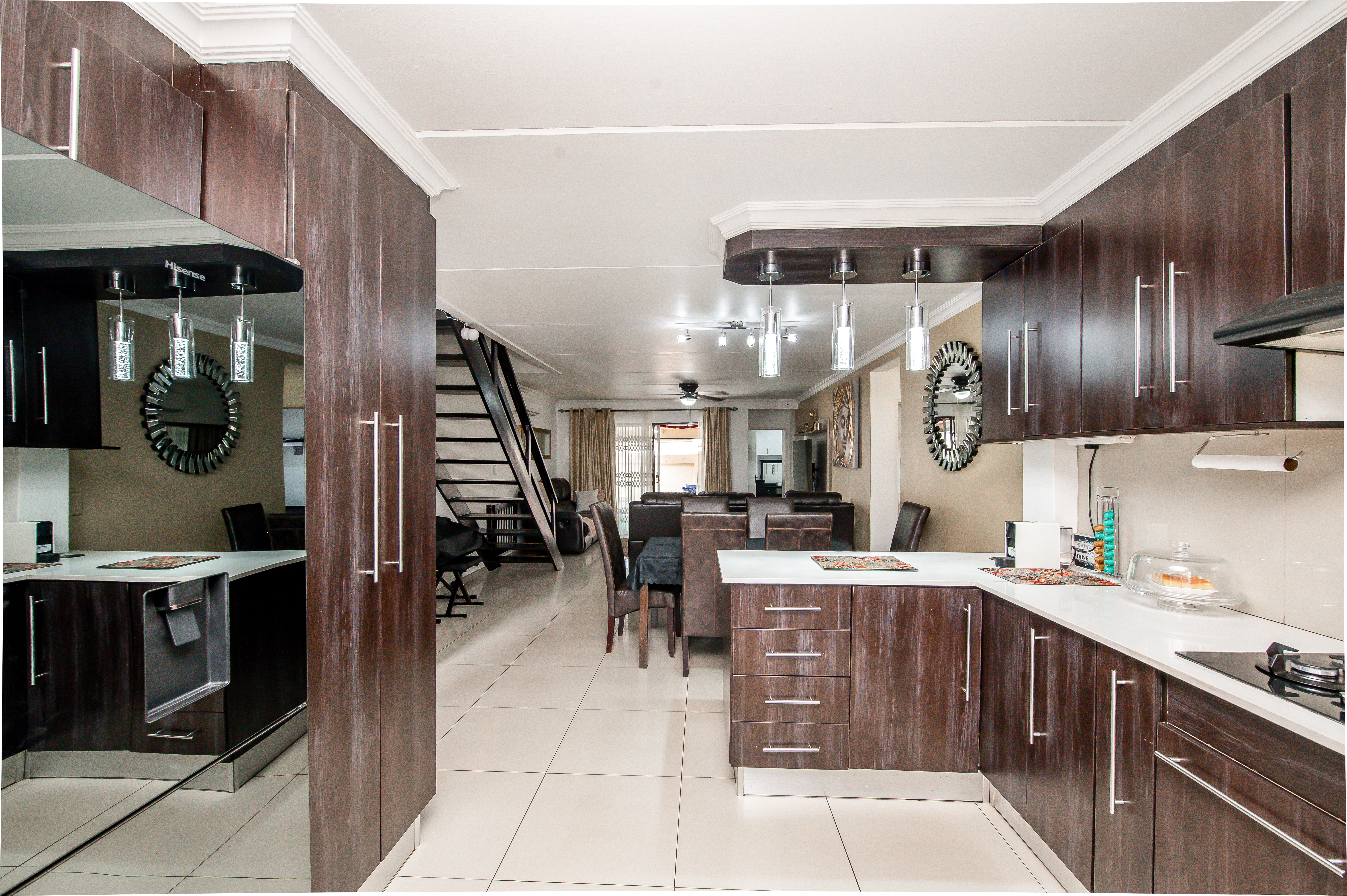 Step into beautifully designed Spacious & Inviting Living Areas - open-plan voluminous airconditioned Lounge and dining area (ceiling fans) open-plan to this amazing Chefs Designer kitchen – “the heart of the home” - boasting high fashion cabinetry, a 5-plate gas stove and space for two wet under-counter appliances and fridge, making it both functional and aesthetically appealing all flowing seamlessly to charming entertainers dream patio overlooking pool in a well-maintained garden.
