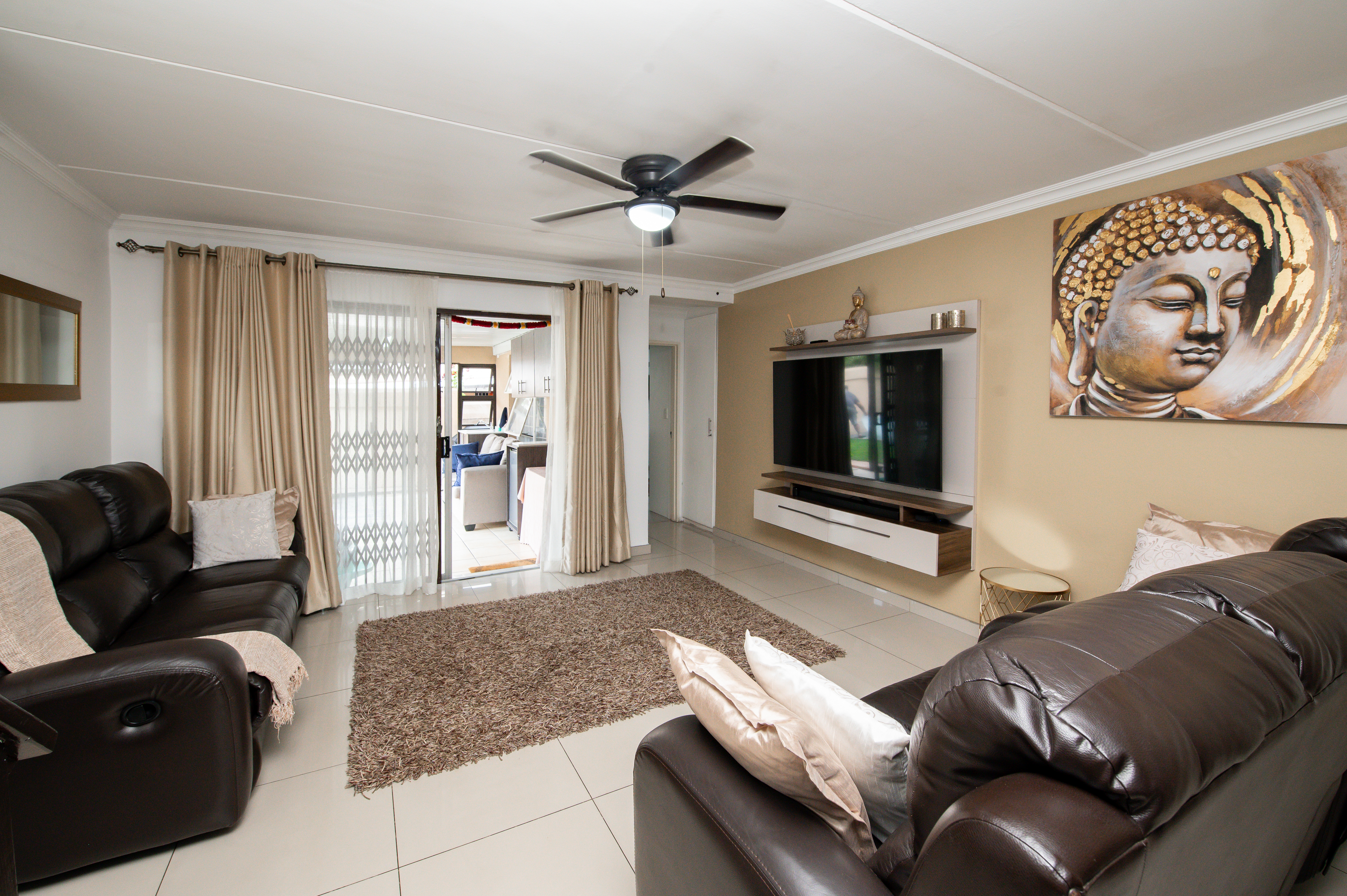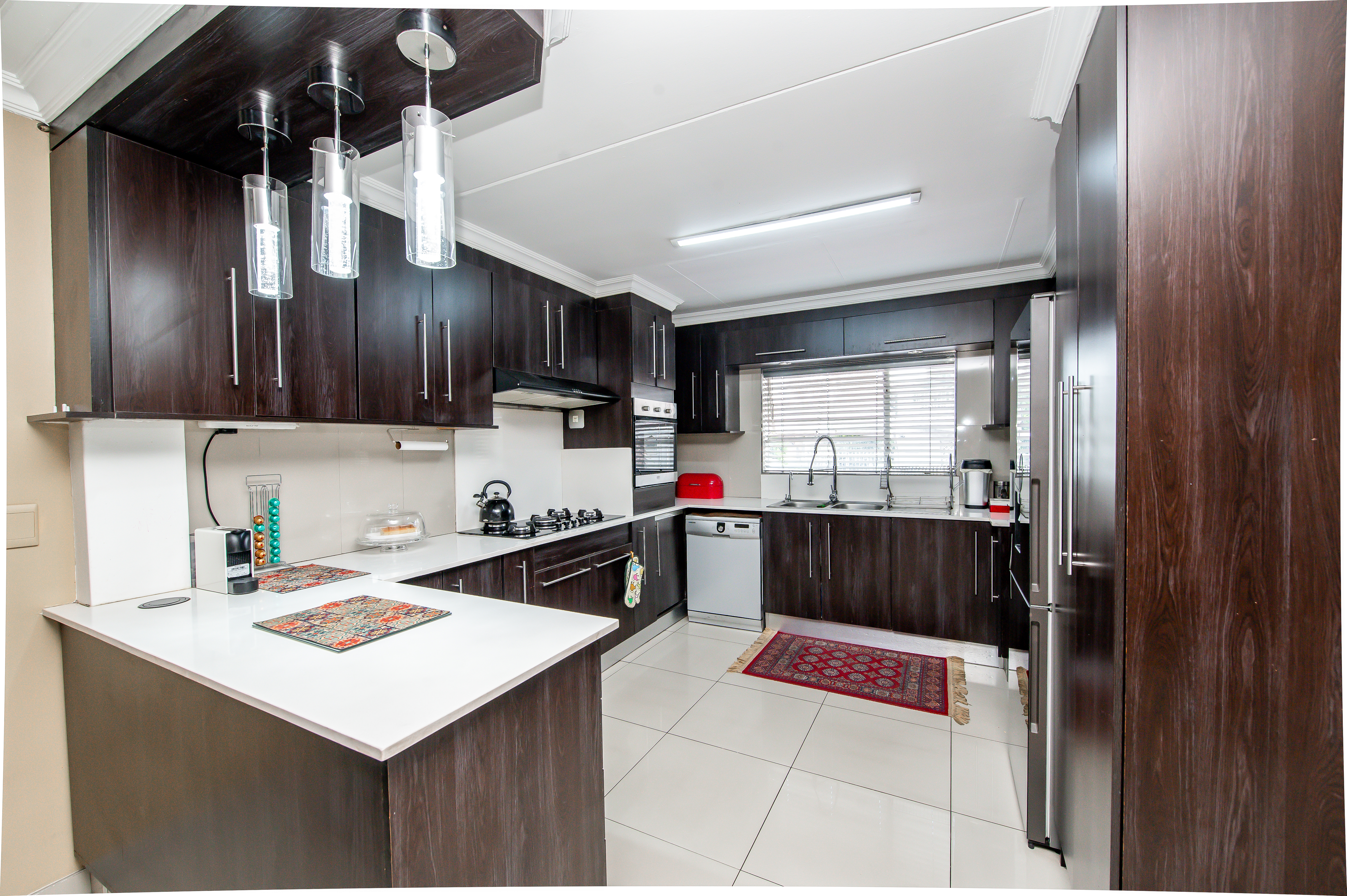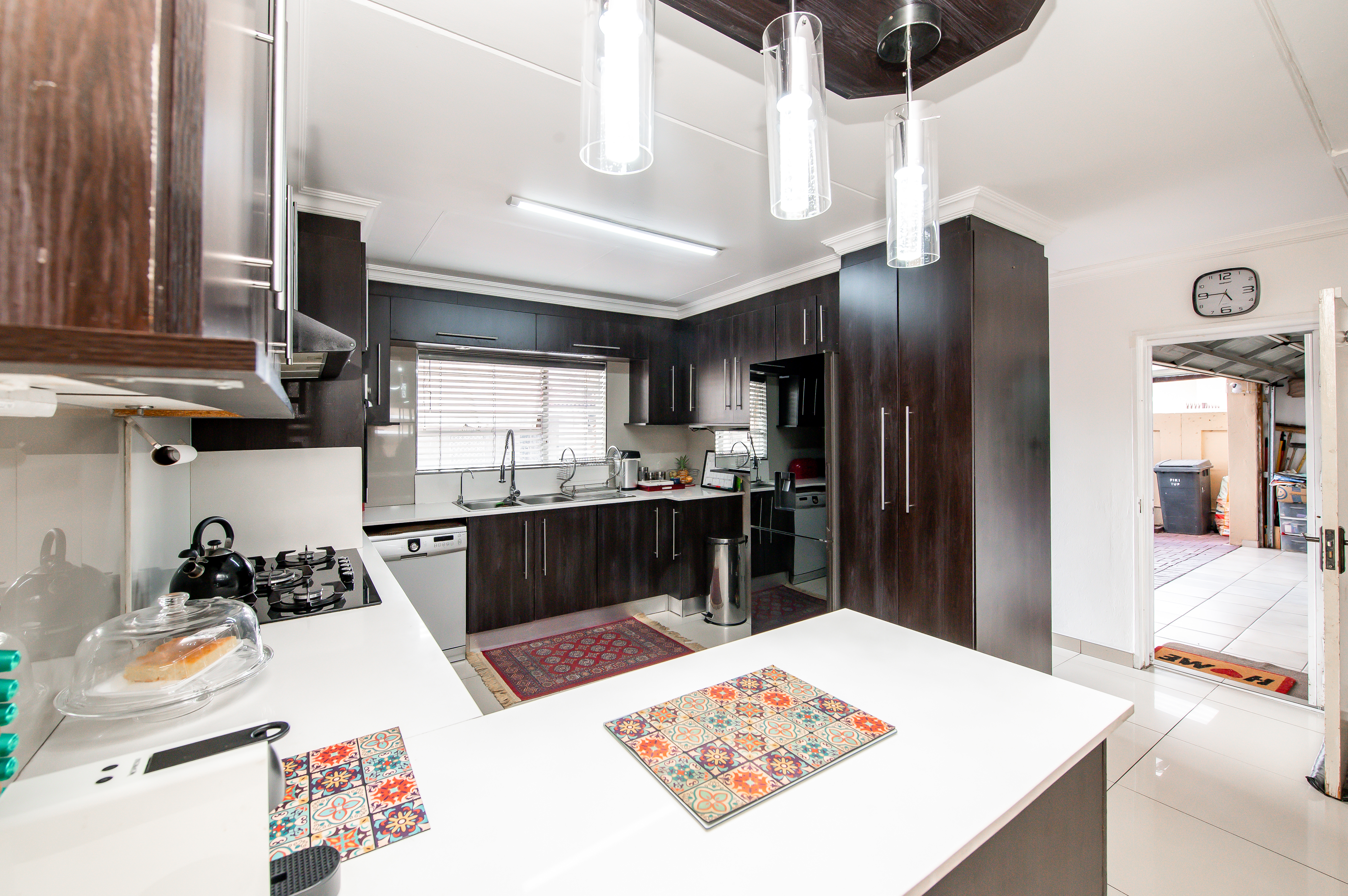 Step into beautifully designed Spacious & Inviting Living Areas - open-plan voluminous airconditioned Lounge and dining area (ceiling fans) open-plan to this amazing Chefs Designer kitchen – “the heart of the home” - boasting high fashion cabinetry, a 5-plate gas stove and space for two wet under-counter appliances and fridge, making it both functional and aesthetically appealing all flowing seamlessly to charming entertainers dream patio overlooking pool in a well-maintained garden.