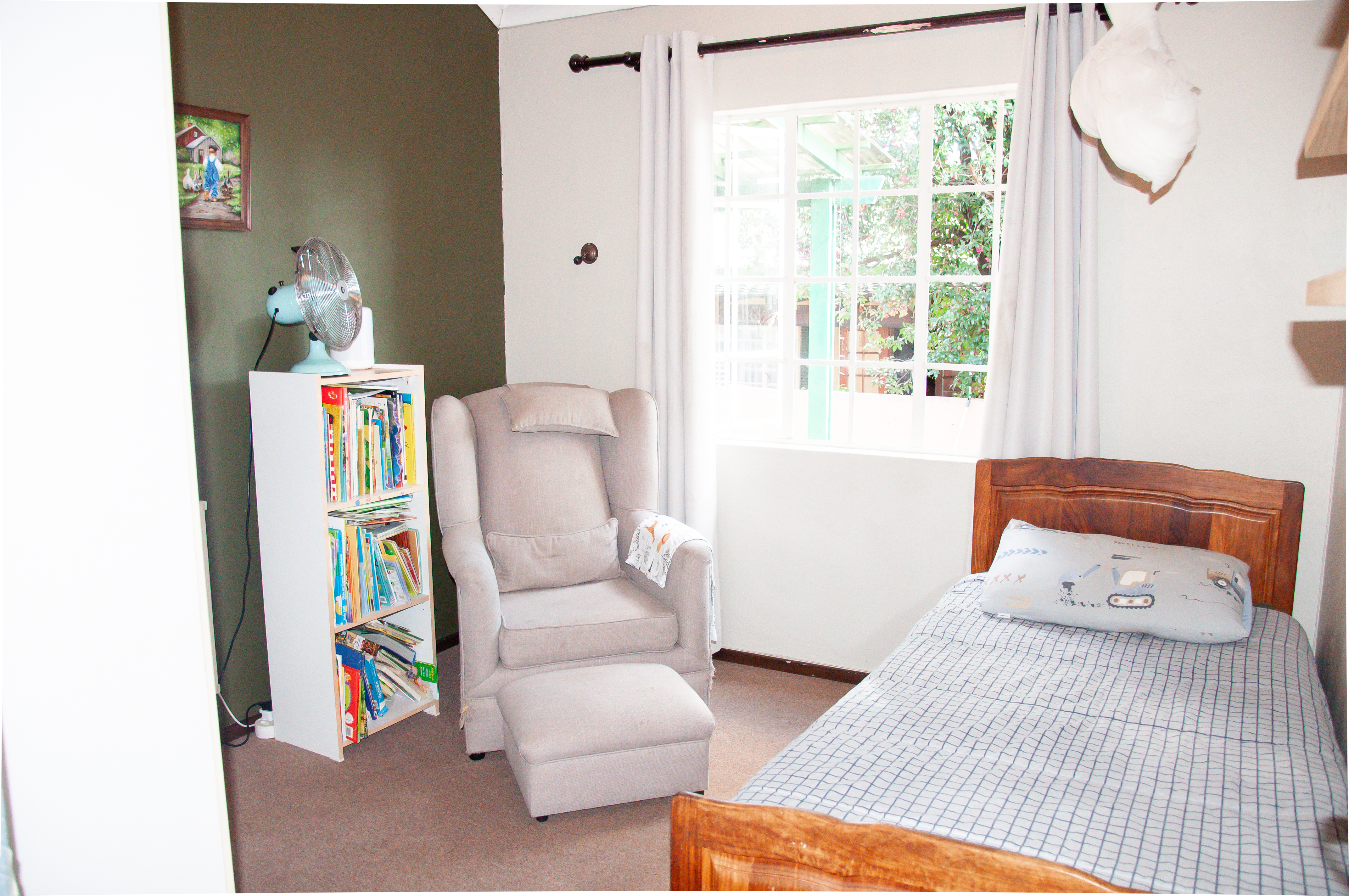 4 deluxe high-ceilinged bedrooms with 2 lovely bathrooms (2nd garage creatively transformed into a versatile 4th bedroom/family room/playroom (built-in shelving and extra storage space) direct access from the 3-car garage.