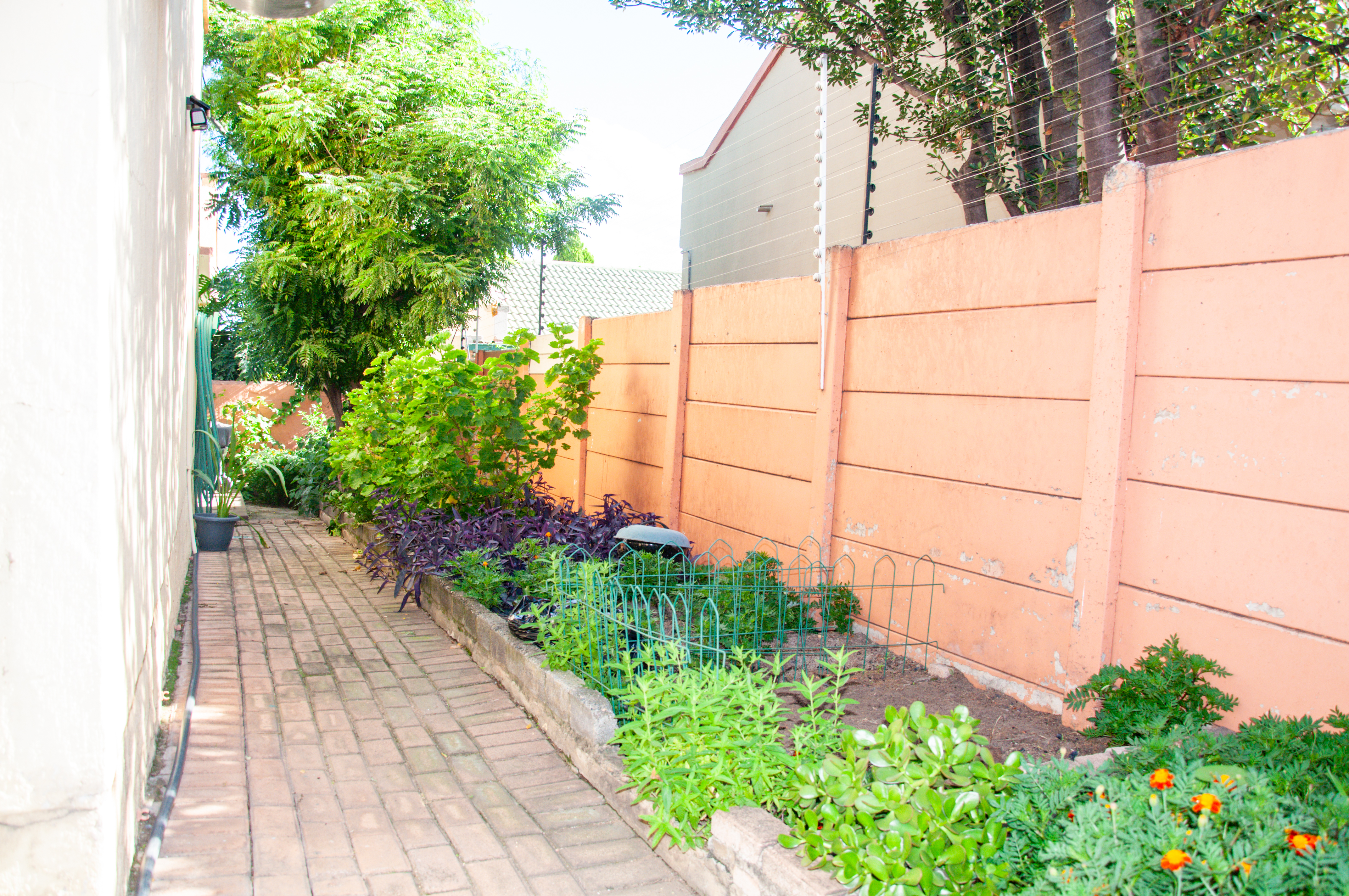 Cozy patio with a beautiful, lush, manicured tranquil garden... ideal for enjoying the outdoors in privacy. The garden is not only beautiful but also practical, with a designated space for those who enjoy growing their vegetables or plants.