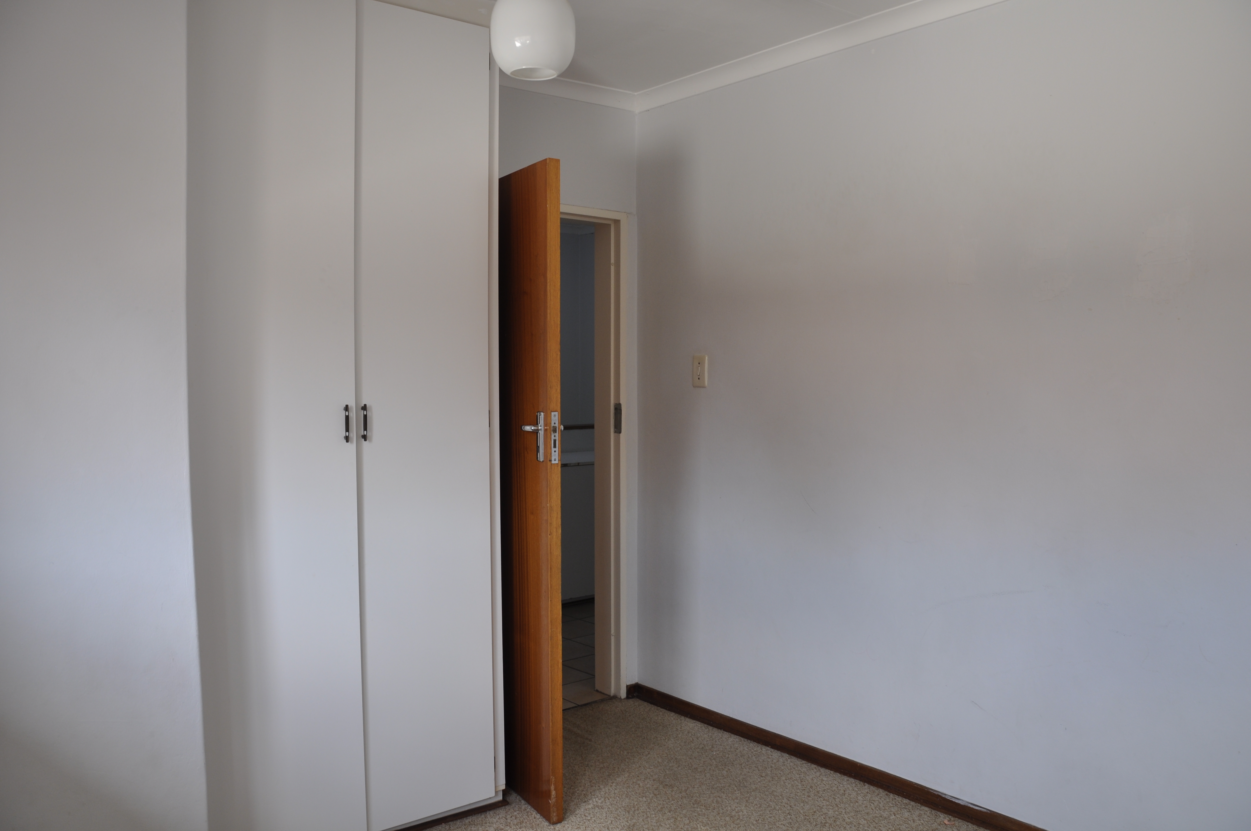 The main bedroom, which is not an ensuite, can easily fit a king-size bed and features abundant cupboard space.