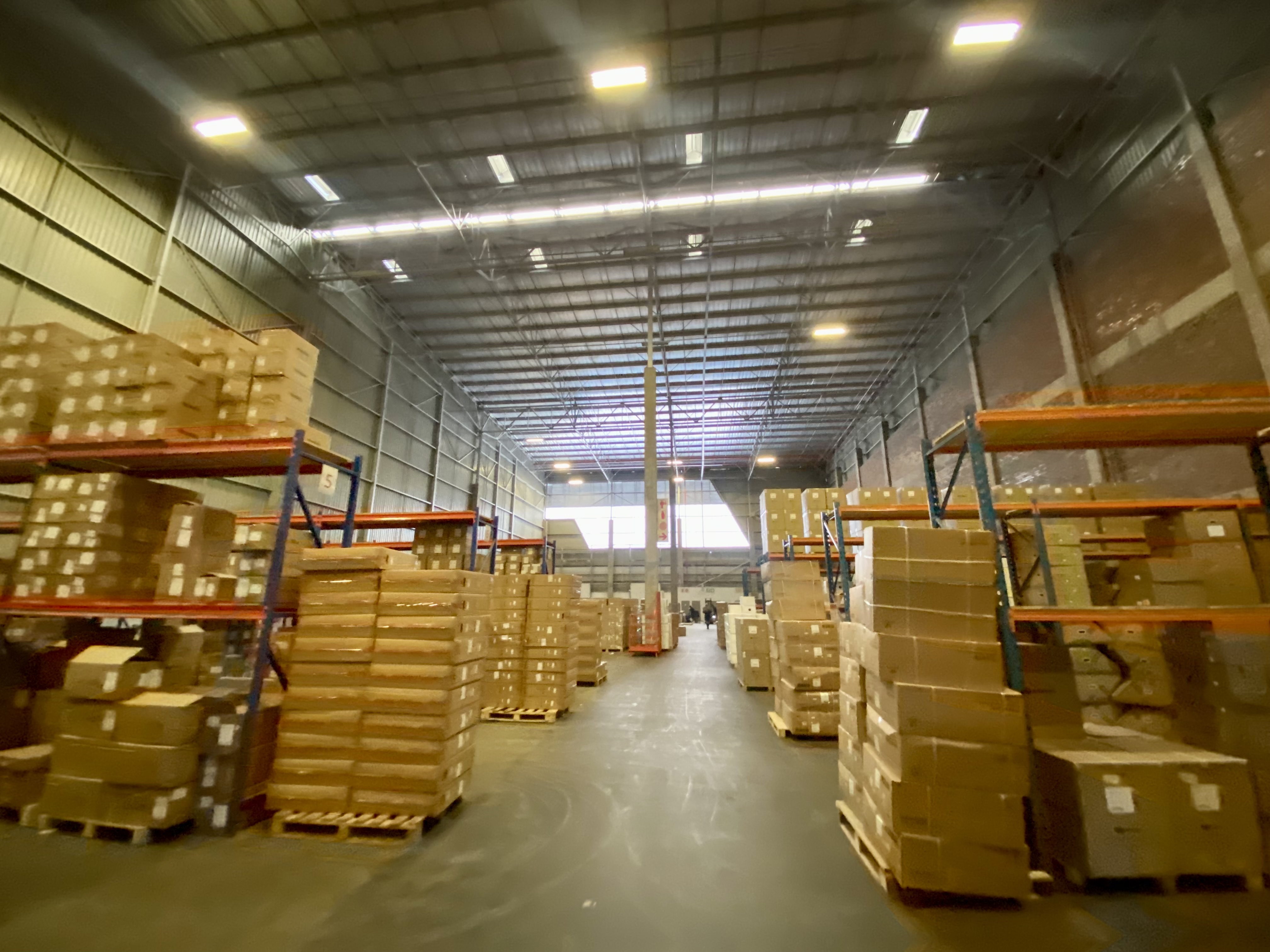 The warehouse comprises two large, uninterrupted warehouse sections designed for high-volume operations and efficient workflow.