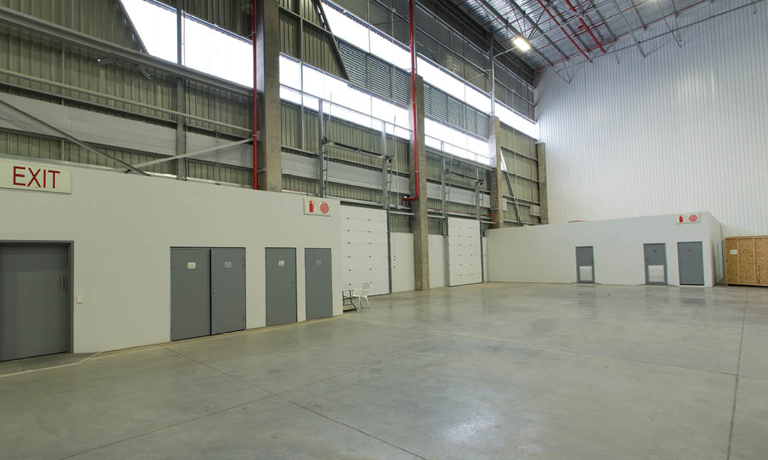 Six large roller shutter doors