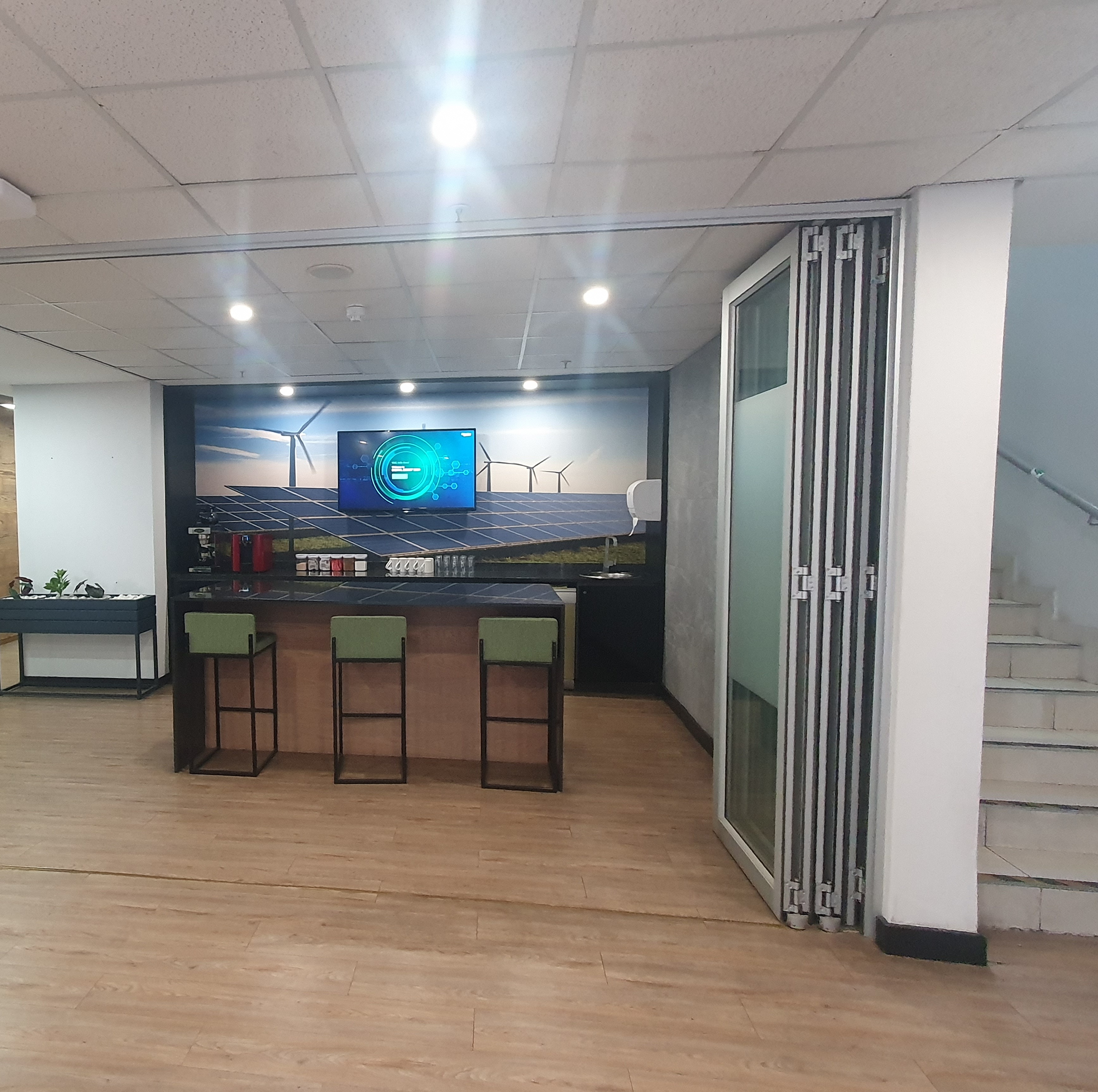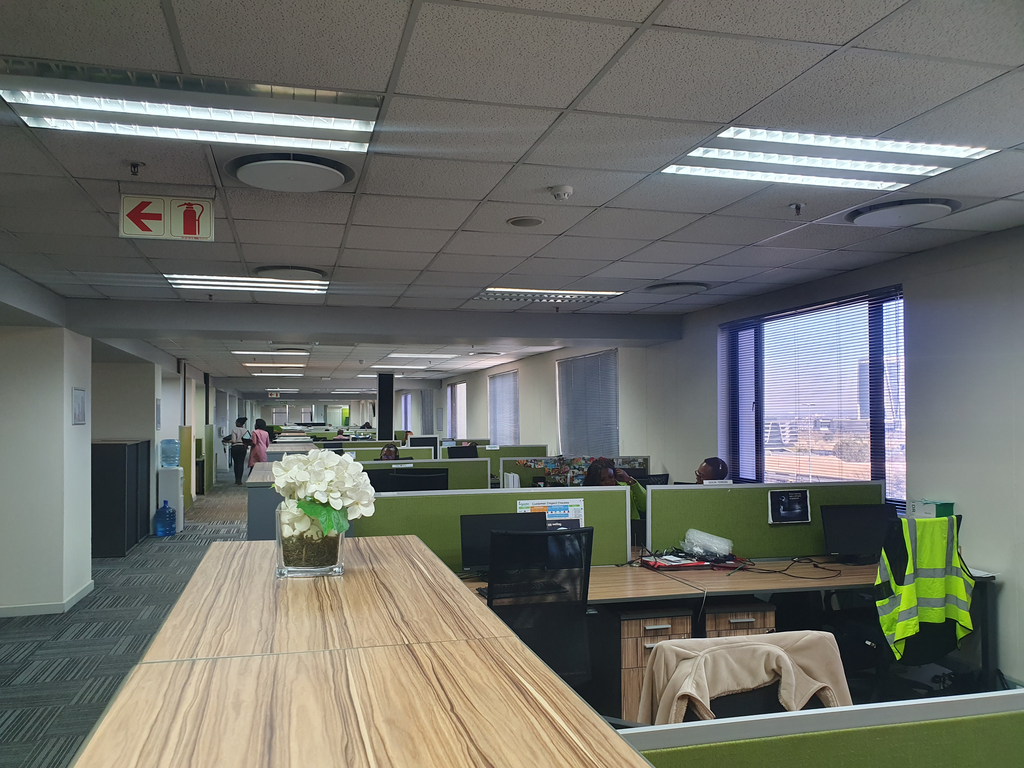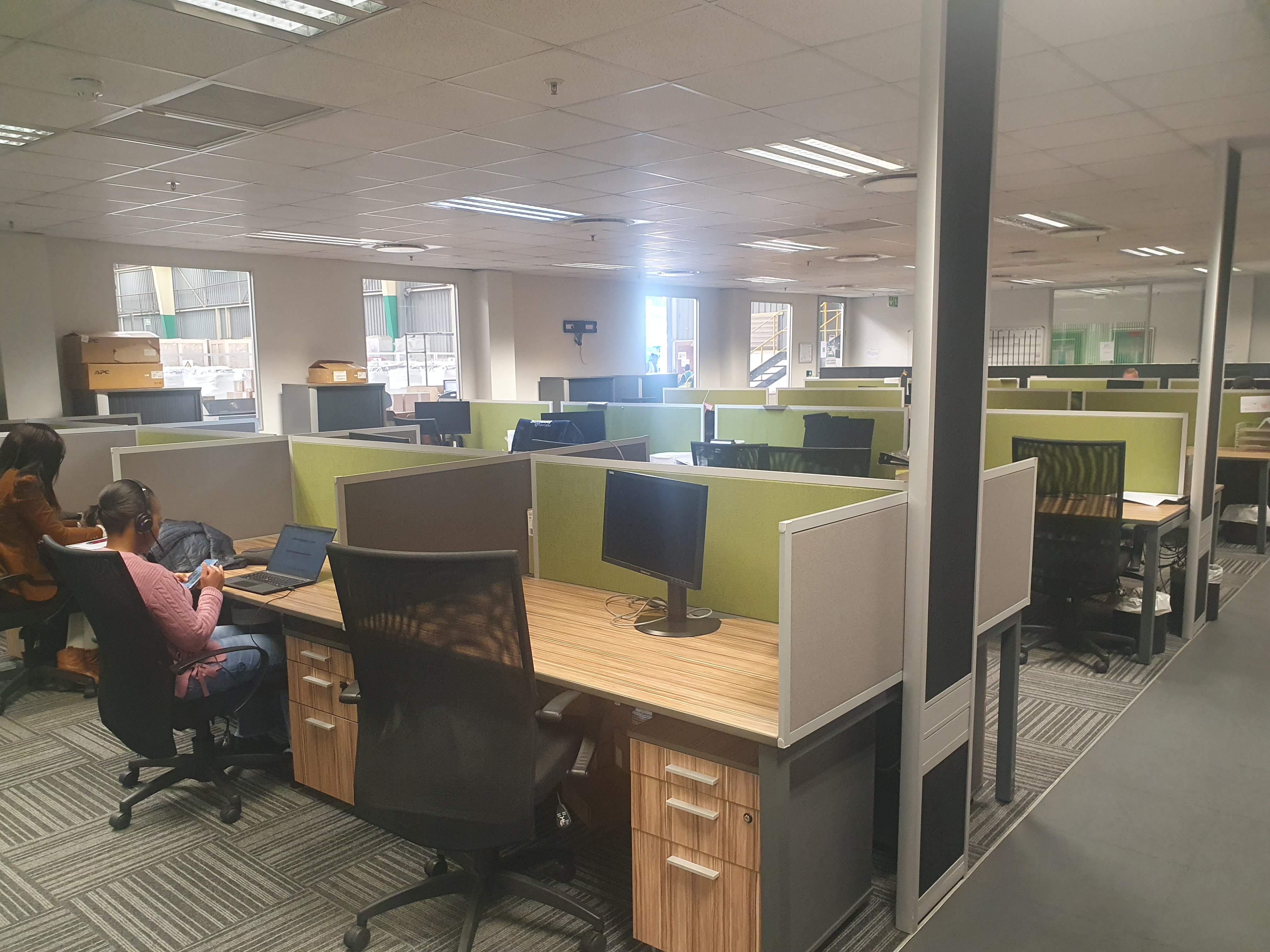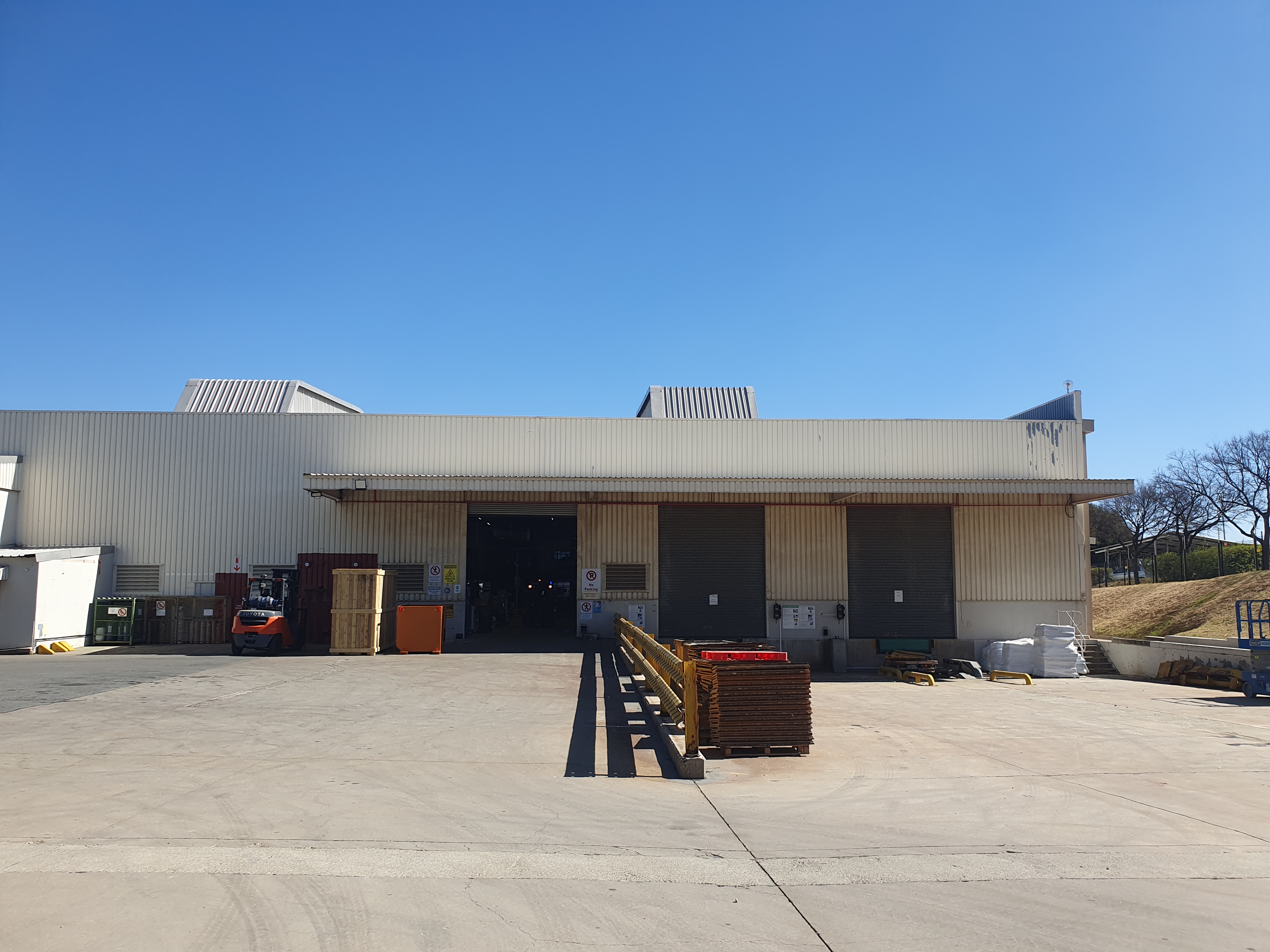 The warehouse has 4 roller-shutter doors, 2 of which have dock-levelers; yard with +-30m turning space; sprinkler system & compressed air. Would suit any logistics business and assembly or clean operation, eg. IT, pharmaceuticals; cosmetics; electronics, etc. The offices are over 2 floors, with a lift for disabled & have views over the warehouse. Made up of reception; open plan & separate offices; auditorium; training rooms; canteen with kitchen; pause areas; first aid room, etc. Parking for execs in basement, with 170 bays outside. Solar panels over the carports provide back-up power. Manned security access at entrance to premises.