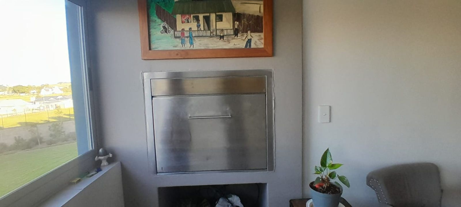 Enjoy a stylish open-plan kitchen and lounge, featuring an induction stove and ample cupboard space. The cozy living area includes a charming fireplace, perfect for relaxing evenings.