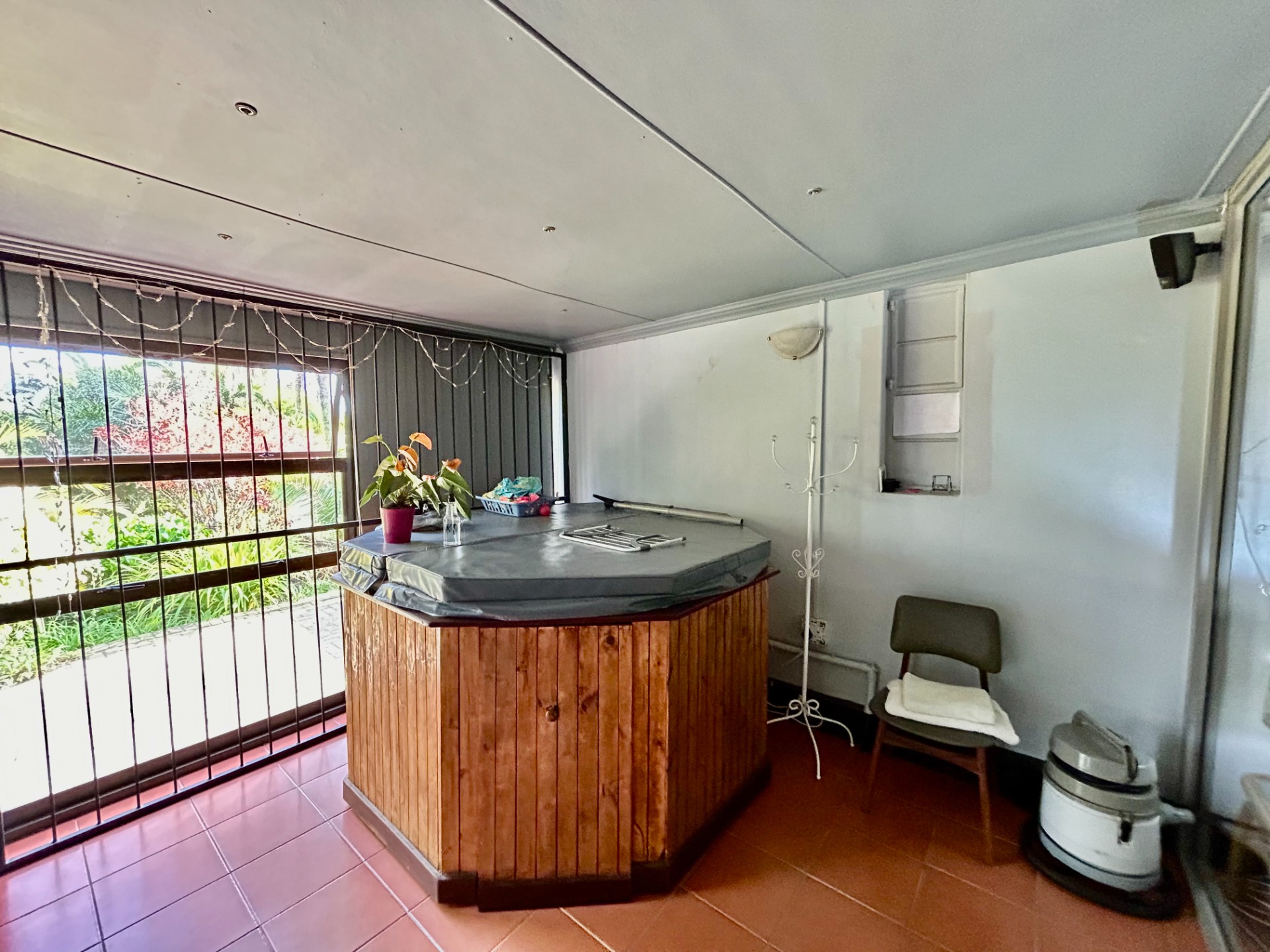 Step outside to an impressive entertainment area, which includes a well-appointed bar and a luxurious jacuzzi, perfect for relaxing after a long day or hosting friends. The space is designed for leisure and enjoyment, enhancing your rural lifestyle.