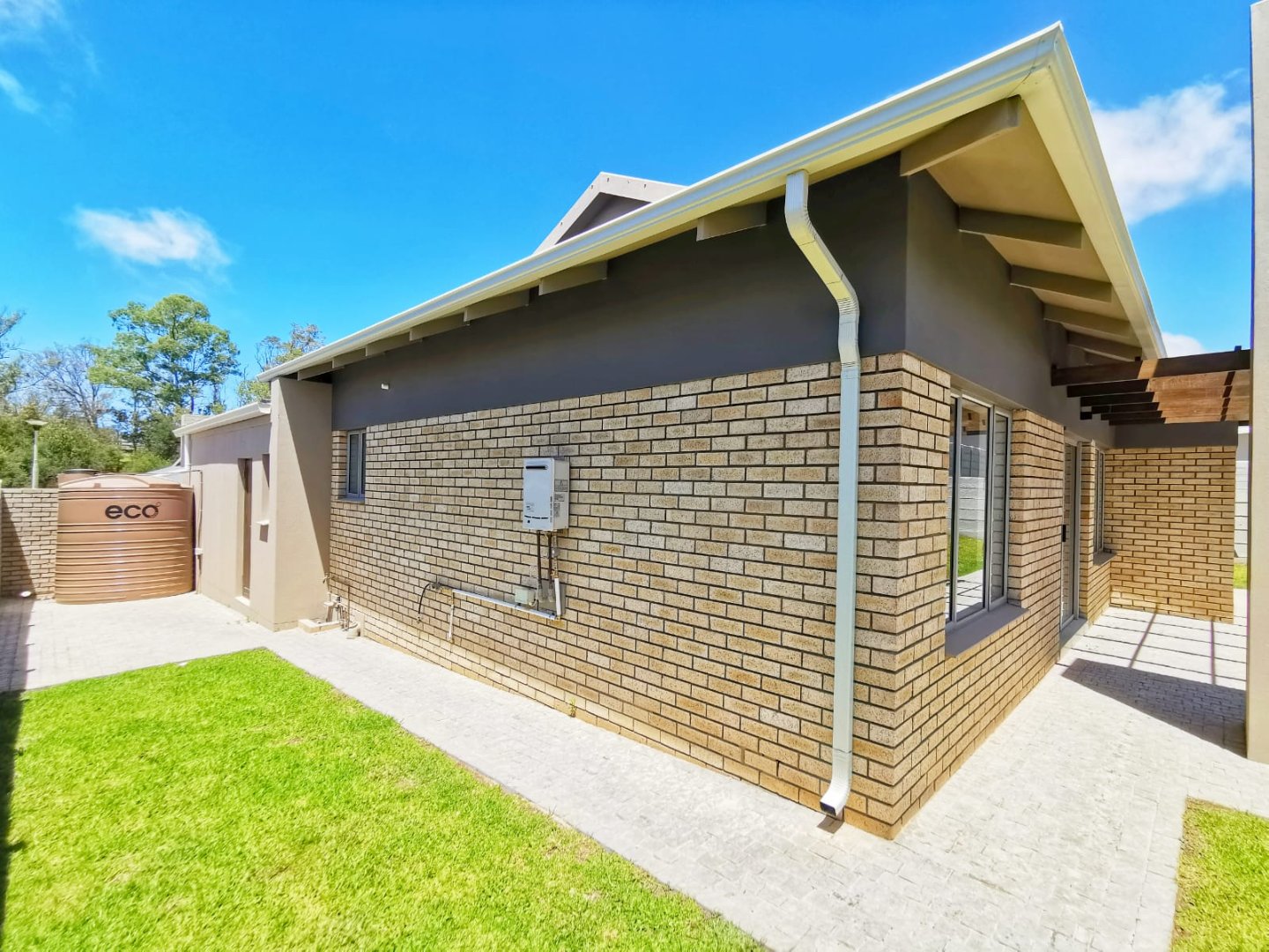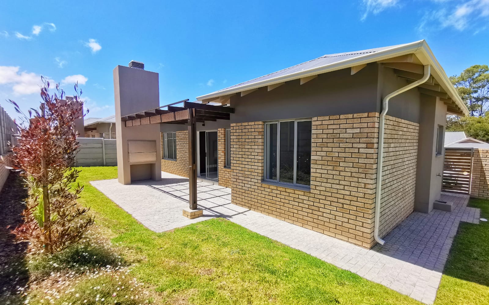 The interior is crafted for comfort and flow, featuring a spacious open plan kitchen and living area that welcomes natural light and creates an effortless sense of connection. Three well appointed bedrooms and two bathrooms, including a main en-suite, provide private retreats tailored for relaxation. Smart efficiency is built in with a gas geyser, ceiling insulation and a 2.4kW inverter system, ensuring energy conscious living without compromise. A 5,000L water tank with pump adds reliable water security, while the built-in braai and pergola extend the living space outdoors, perfect for entertaining in the Garden Route climate. The garden is low maintenance and fully pet-friendly, offering a practical outdoor environment for both families and animal lovers. Everyday convenience is enhanced by a double garage with an integrated laundry facility, completing this thoughtfully designed home.