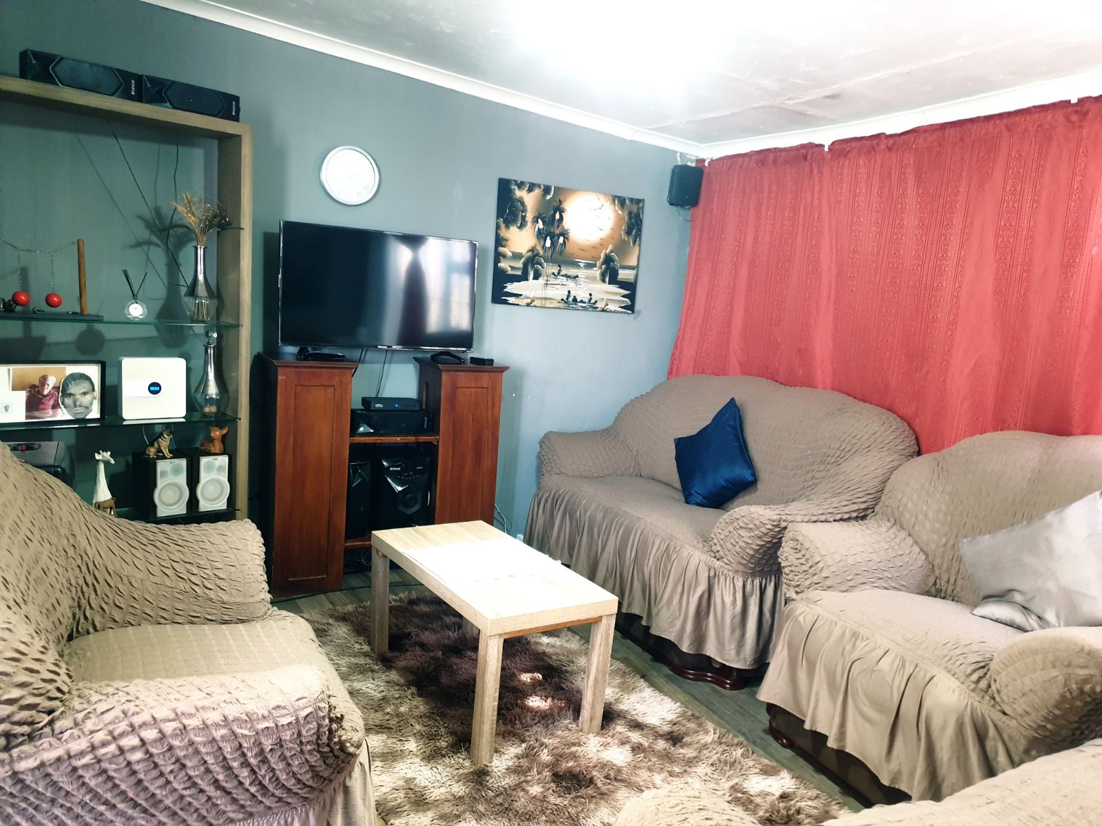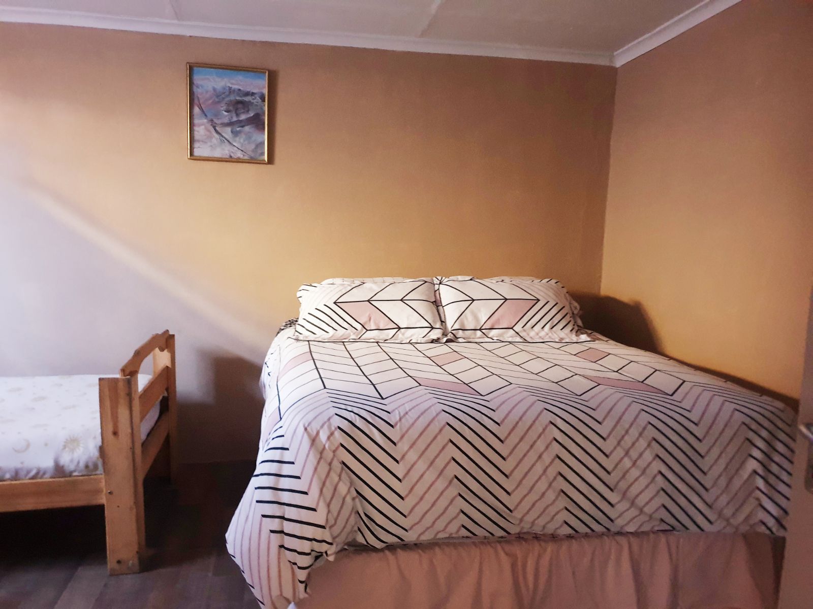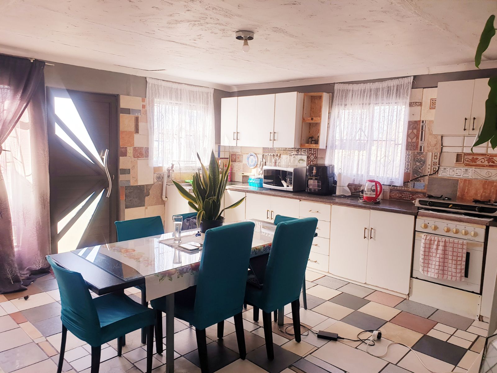 There's a cosy family lounge and a very spacious kitchen with plenty of built-in cupboards, a built-in stove, and a single sink.