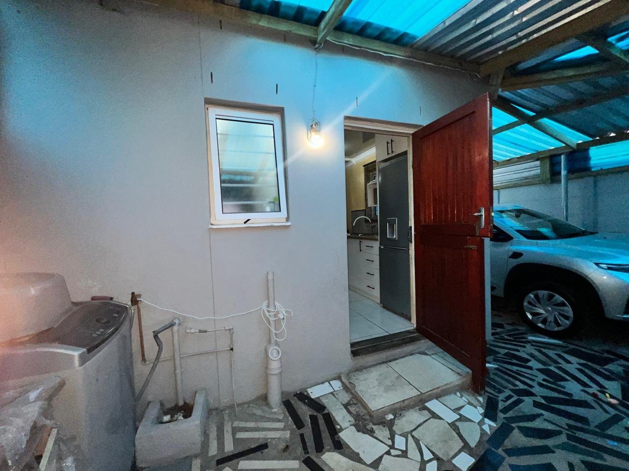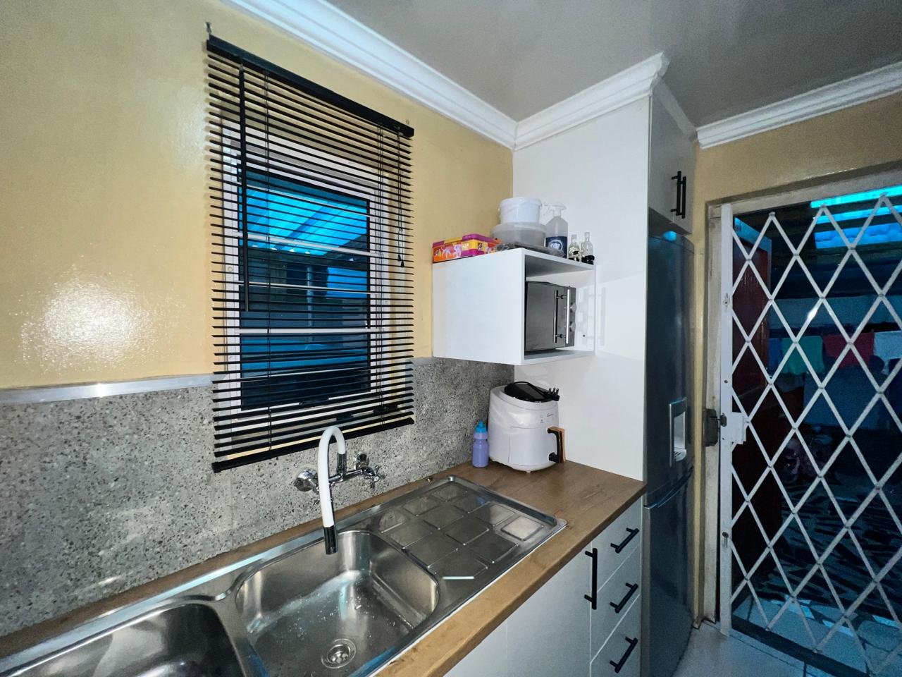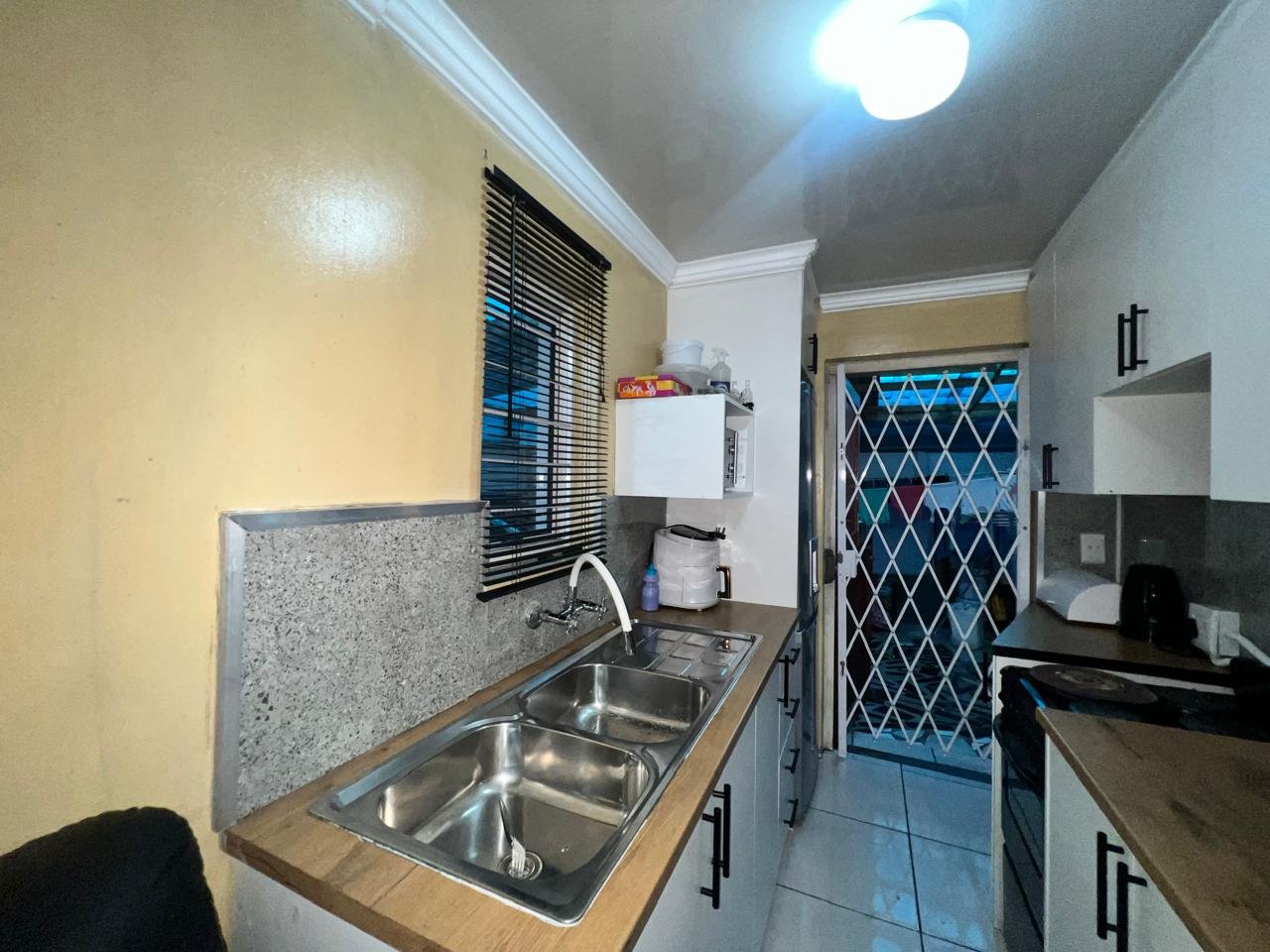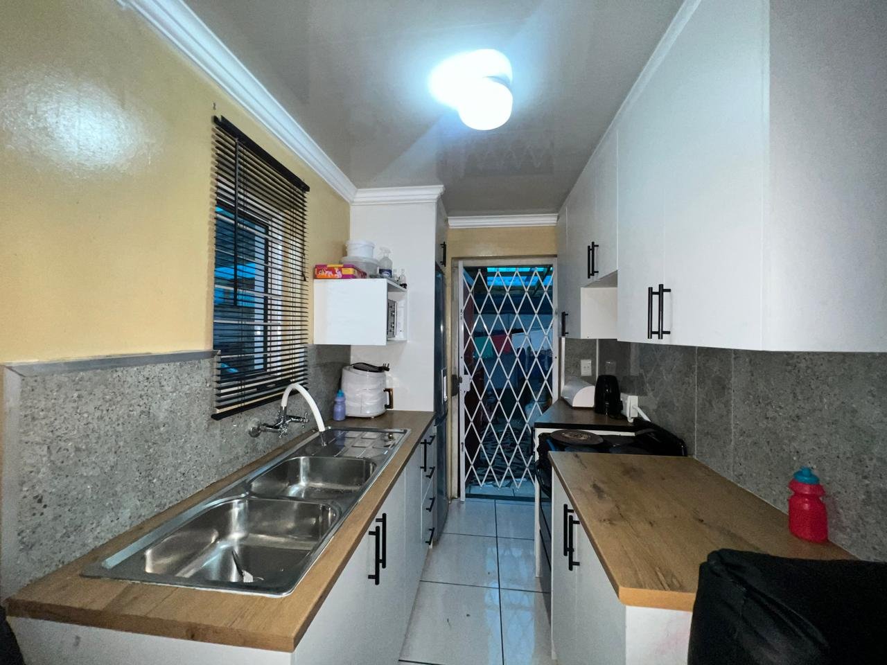 The home offers two bedrooms, all fully fitted with built-in cupboards a bath, with shower facilities and a basin. A fully fitted, newly tiled kitchen and living room area. This home provides privacy and security with its nutec gates and roller garage door, tiled paved garage floor, fully enclosed carport and both trelley gates on both front and back door