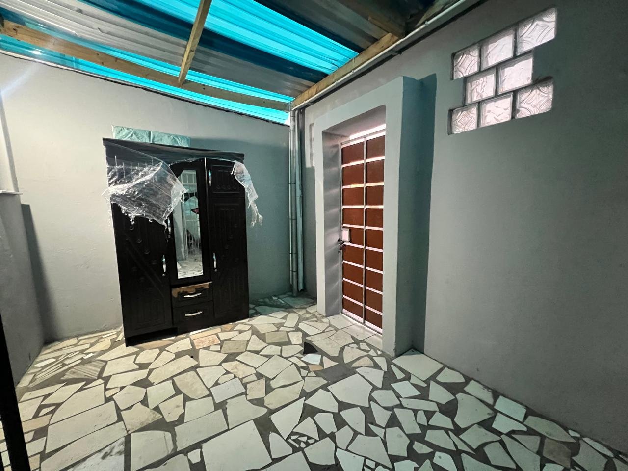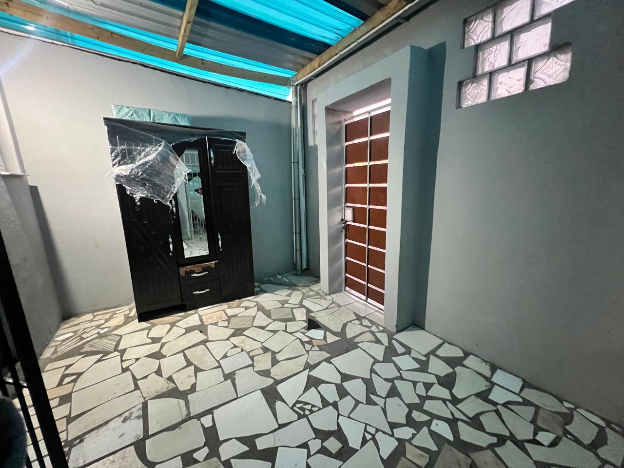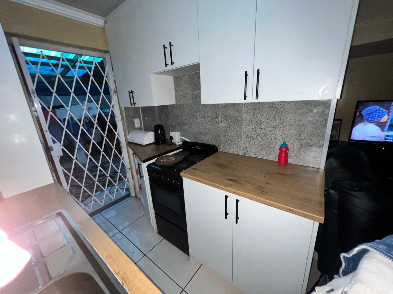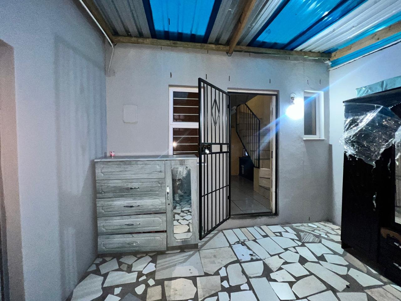 The home offers two bedrooms, all fully fitted with built-in cupboards a bath, with shower facilities and a basin. A fully fitted, newly tiled kitchen and living room area. This home provides privacy and security with its nutec gates and roller garage door, tiled paved garage floor, fully enclosed carport and both trelley gates on both front and back door
