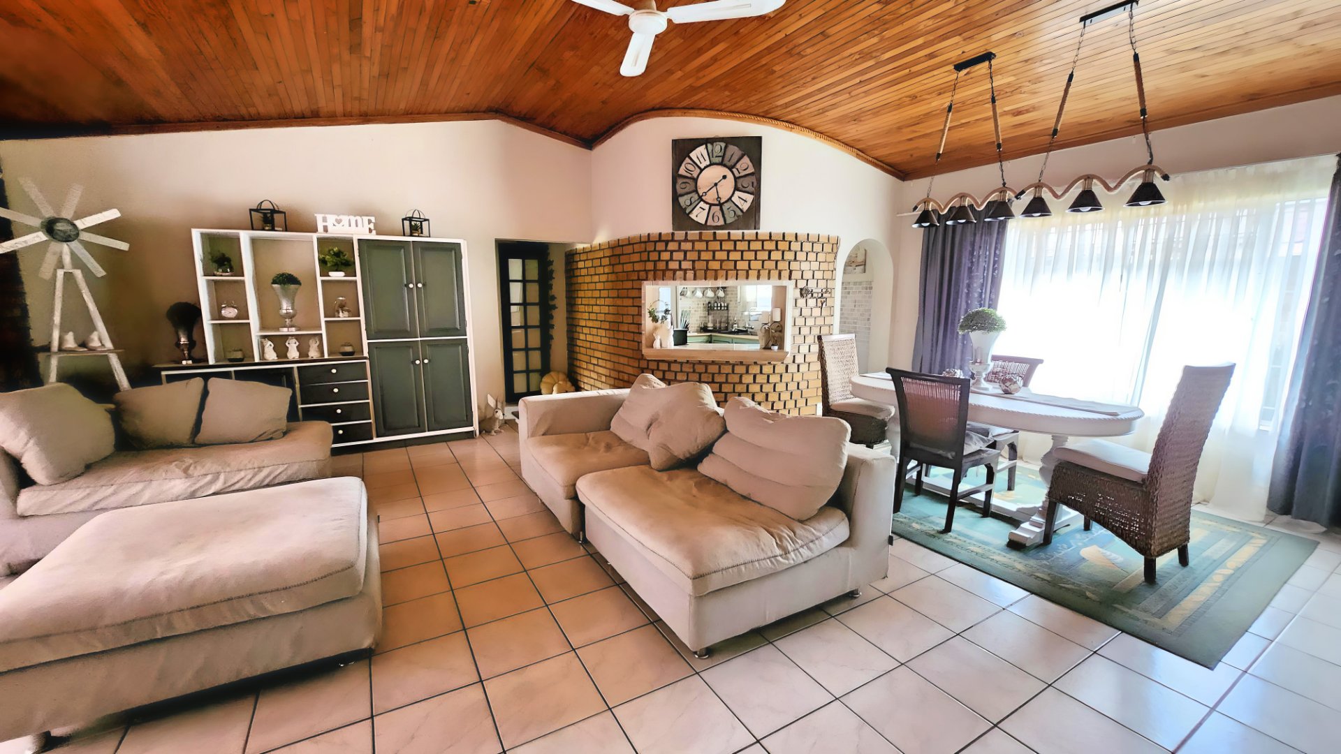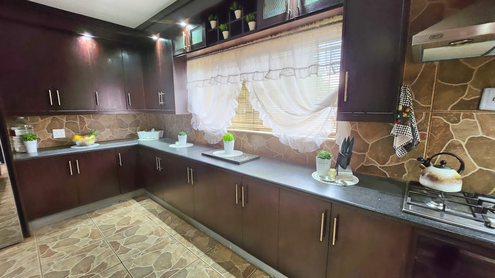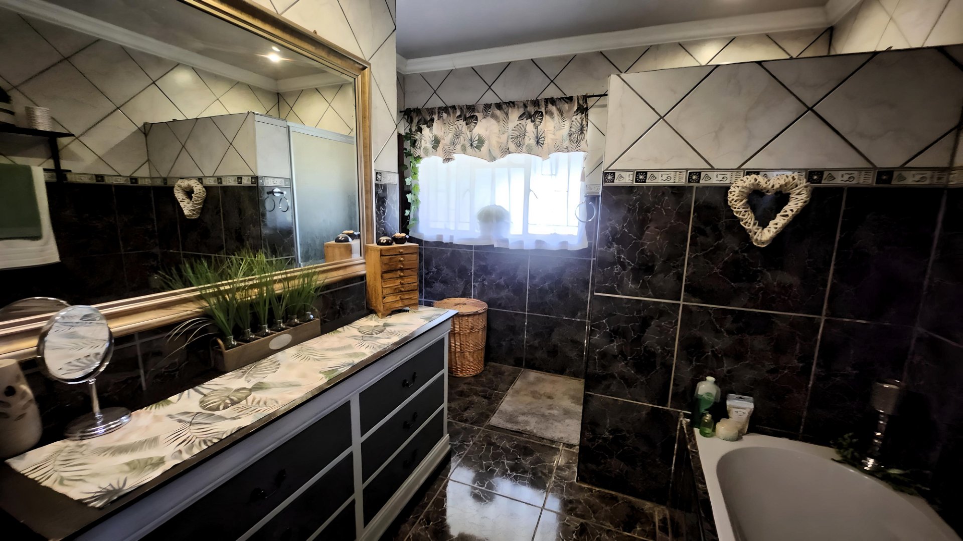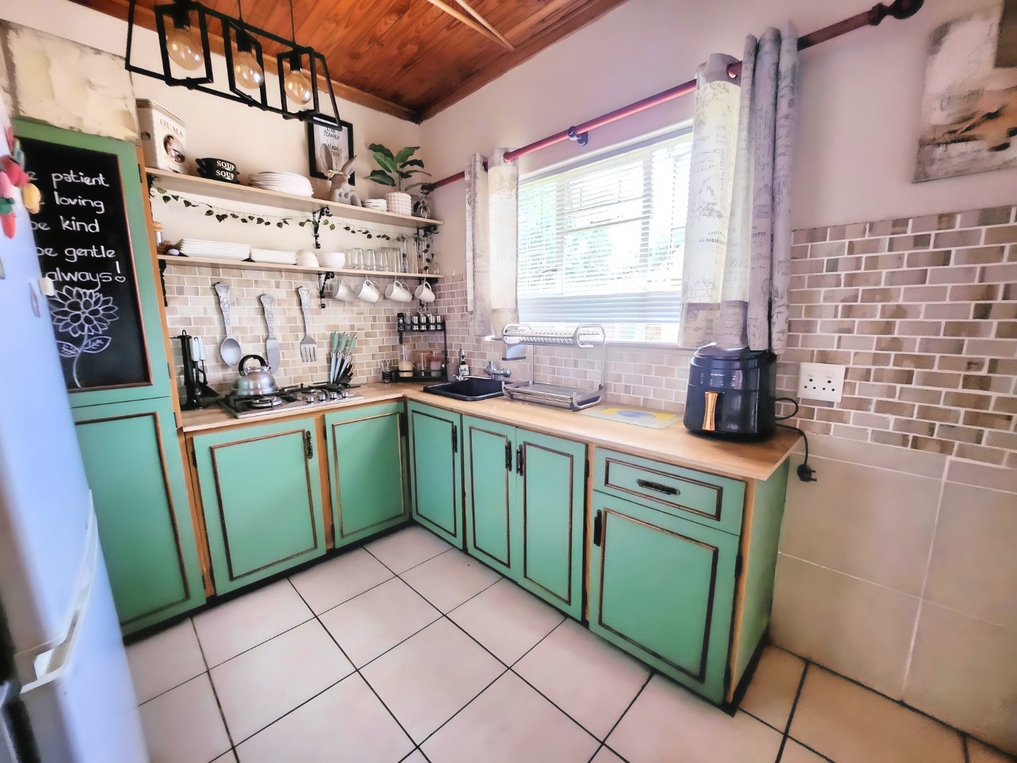 The heart of the home is a neat and well-appointed kitchen, complemented by a second kitchen, allowing the property to be effortlessly divided into two separate living spaces—ideal for extended family or a rental flatlet. The entertainment area, complete with a built-in braai, overlooks the sparkling swimming pool, creating the perfect setting for hosting gatherings and enjoying outdoor living.