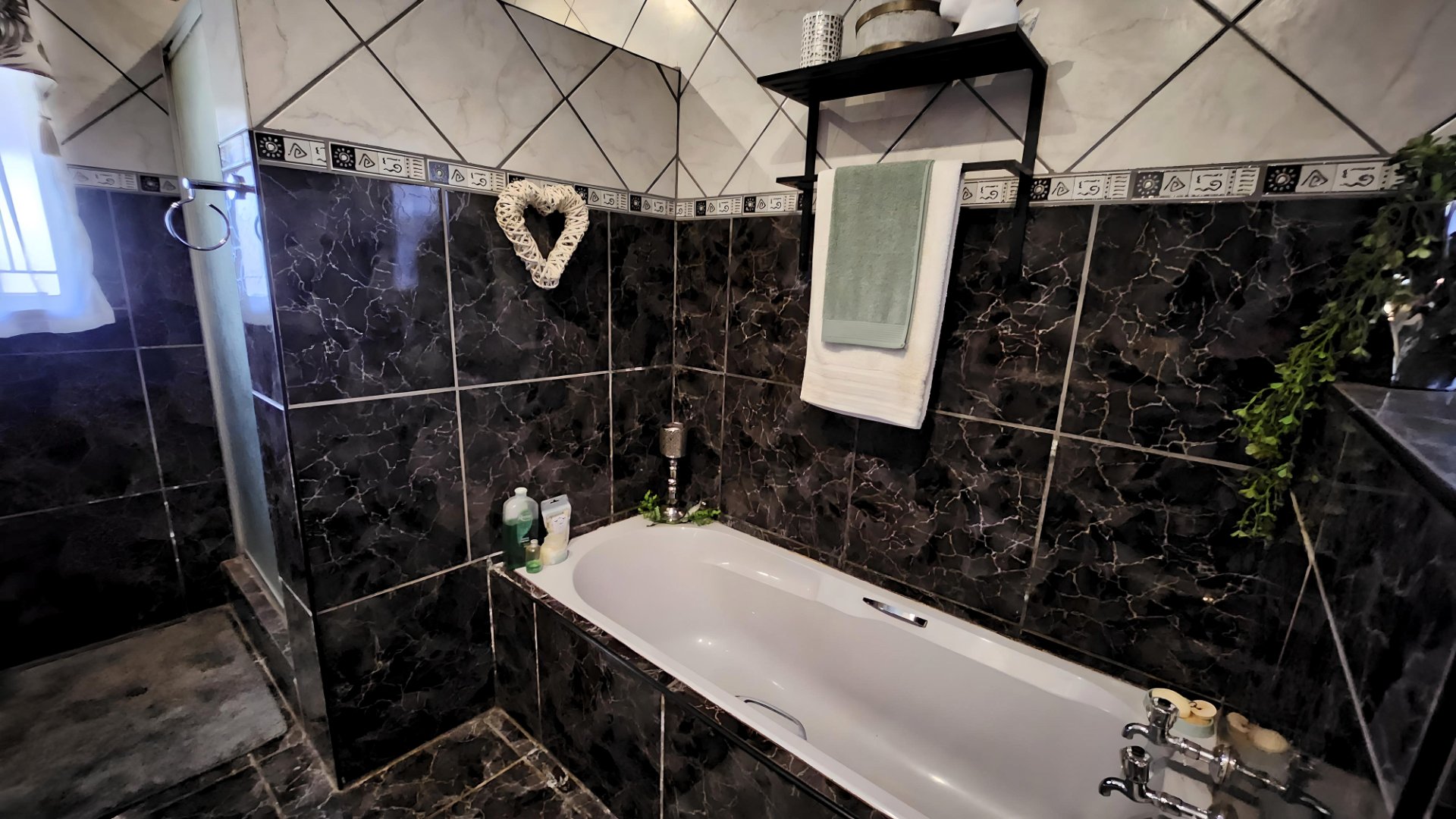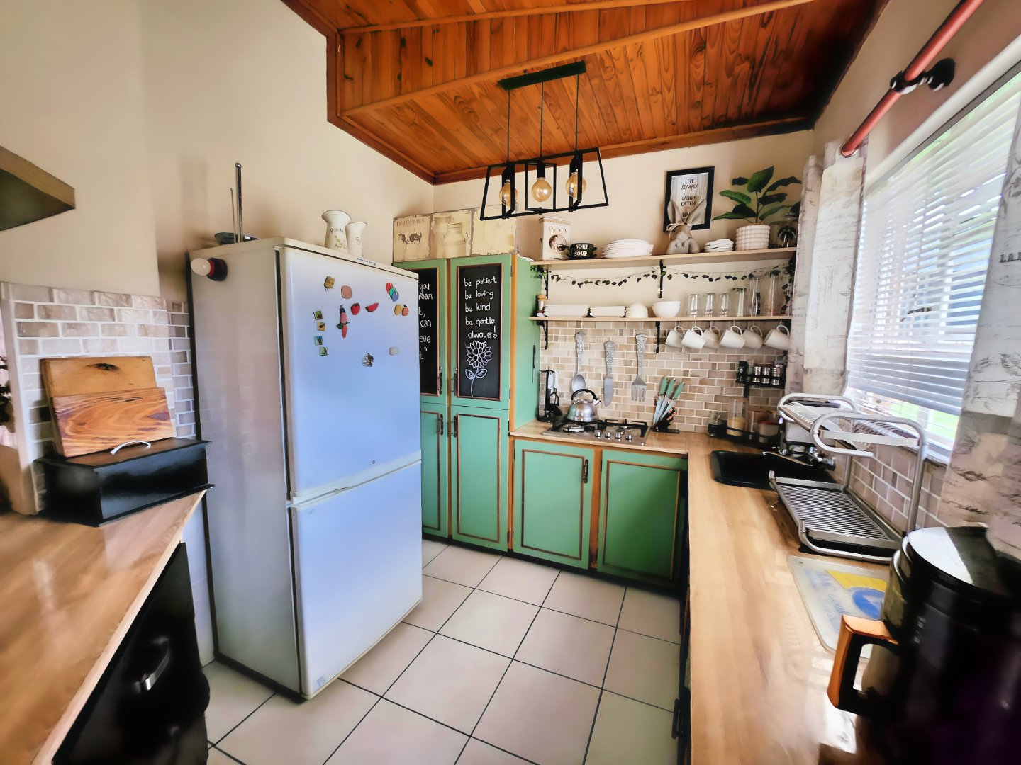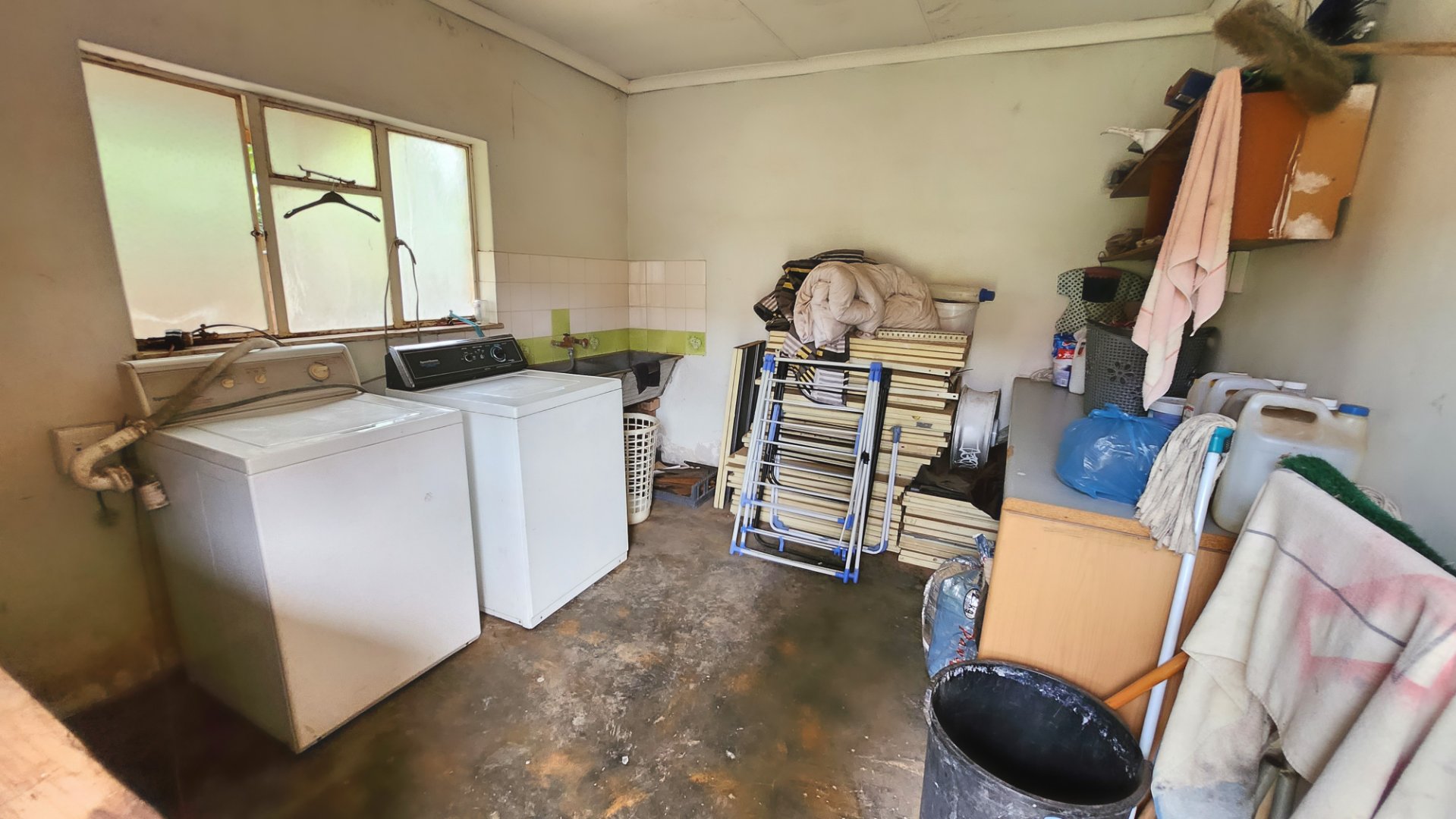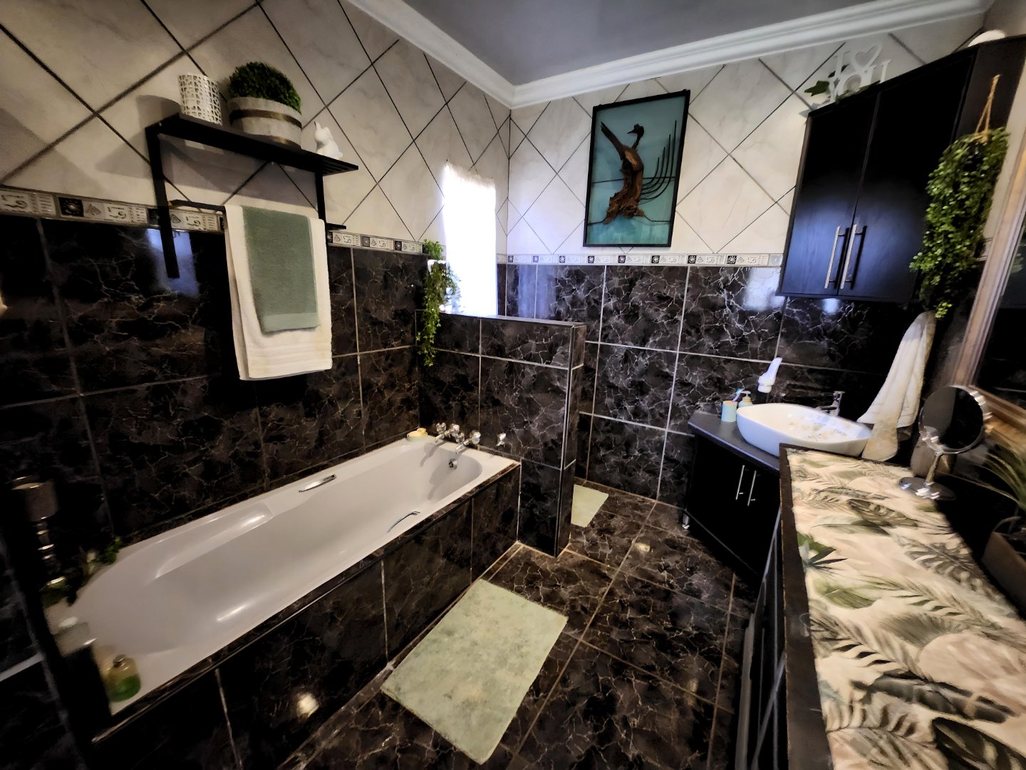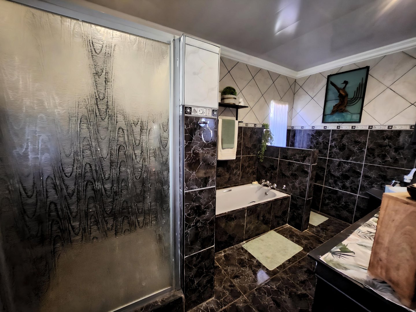 The heart of the home is a neat and well-appointed kitchen, complemented by a second kitchen, allowing the property to be effortlessly divided into two separate living spaces—ideal for extended family or a rental flatlet. The entertainment area, complete with a built-in braai, overlooks the sparkling swimming pool, creating the perfect setting for hosting gatherings and enjoying outdoor living.