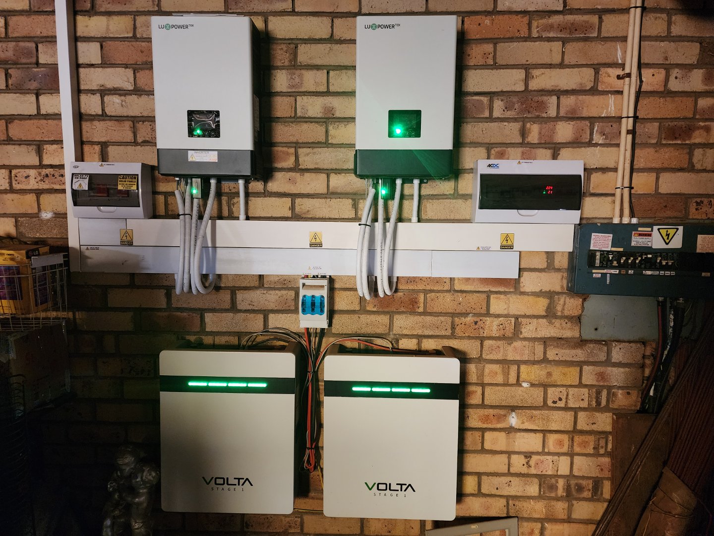 * 10 KVA inverter system with two Lithium backup batteries and 12 solar panels for energy efficiency