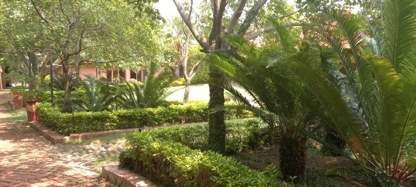 In spite of being closed for more than two years, the property still overflows extravagance - recoloured glass windows, designer wallpaper, maroon velvet wall coverings, imported rare, antique, and carved wooden doors, a few water features and flawless rich garden