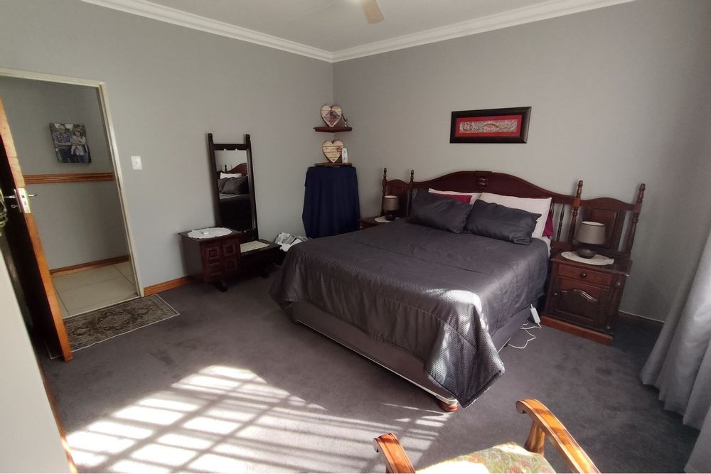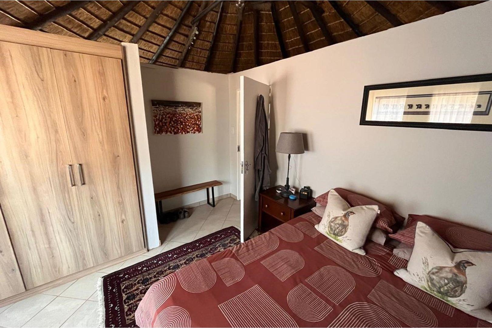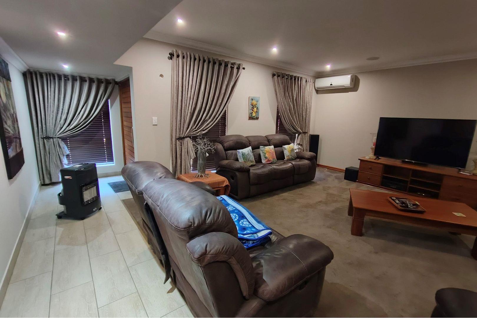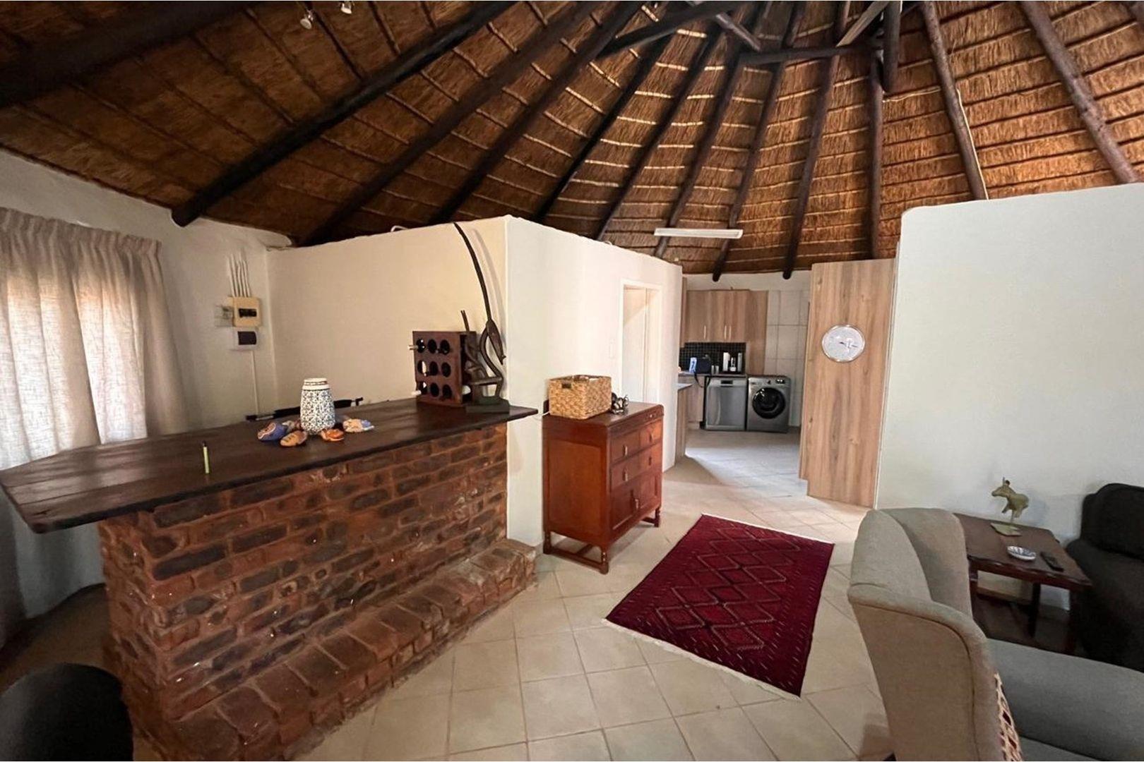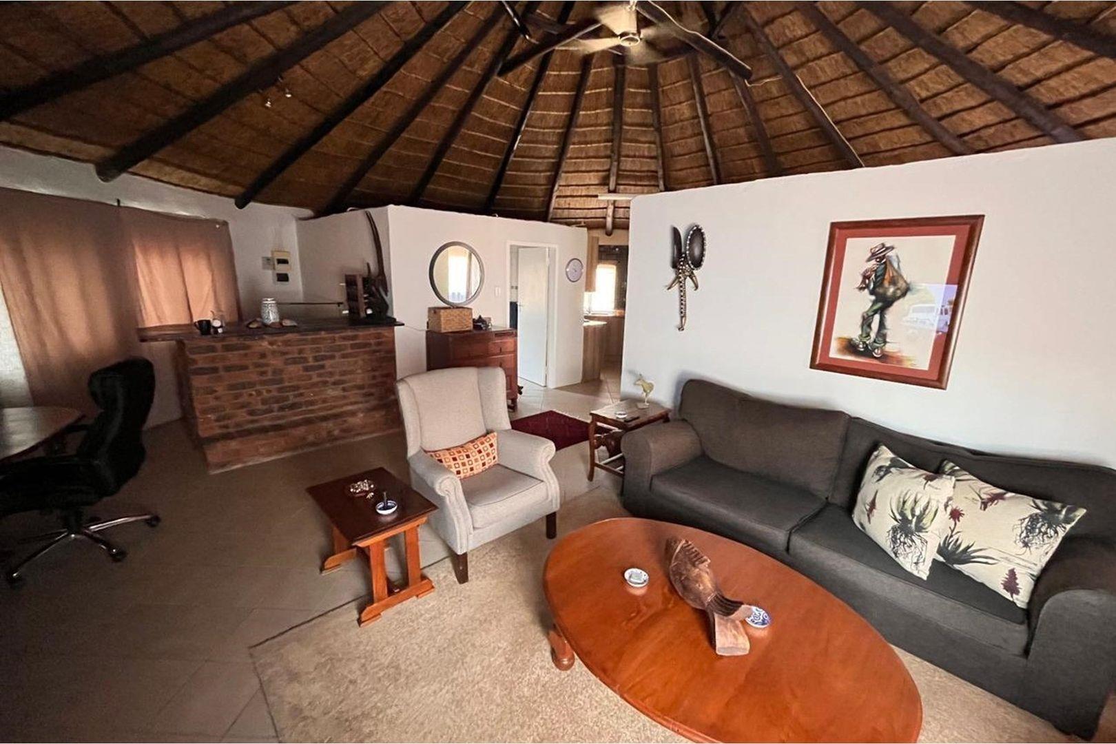 Outdoors, indulge in the sparkling swimming pool, beautifully landscaped garden, and entertainment-ready terrace with a built-in braai. A water feature, irrigation system, and comprehensive security setup with an alarm system guarantee peace of mind, Borehole, Fence, Garden, Paving, Pets Allowed, Staff Quarters, Storage, 24 hour Security, Aircon, CCTV, Central Heating, Fire place, Satellite, Smoking Allowed, Driveway, Spa Pool, Special Doors, Water tanks, Sliding Doors, Tv Antenna, Feedlot for 80 Cattle and 1.5ha Arable land. Garden under sprinkler irrigation.