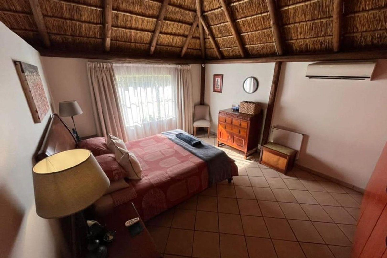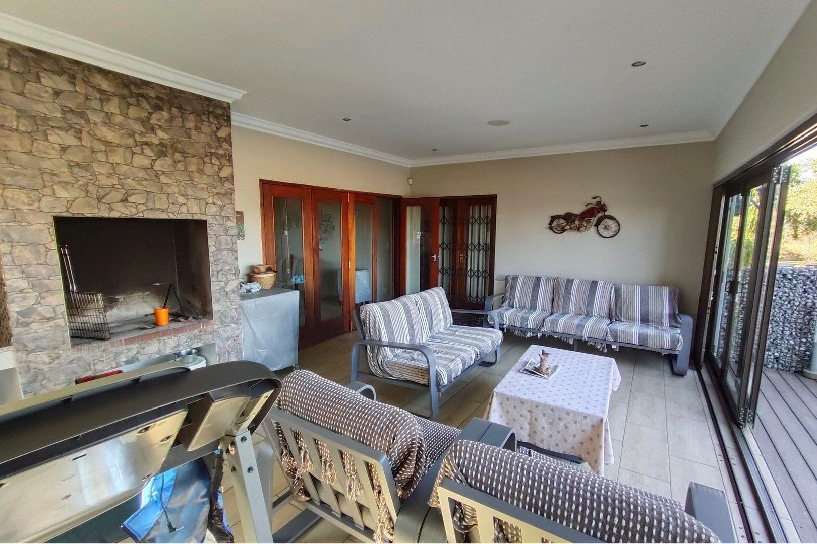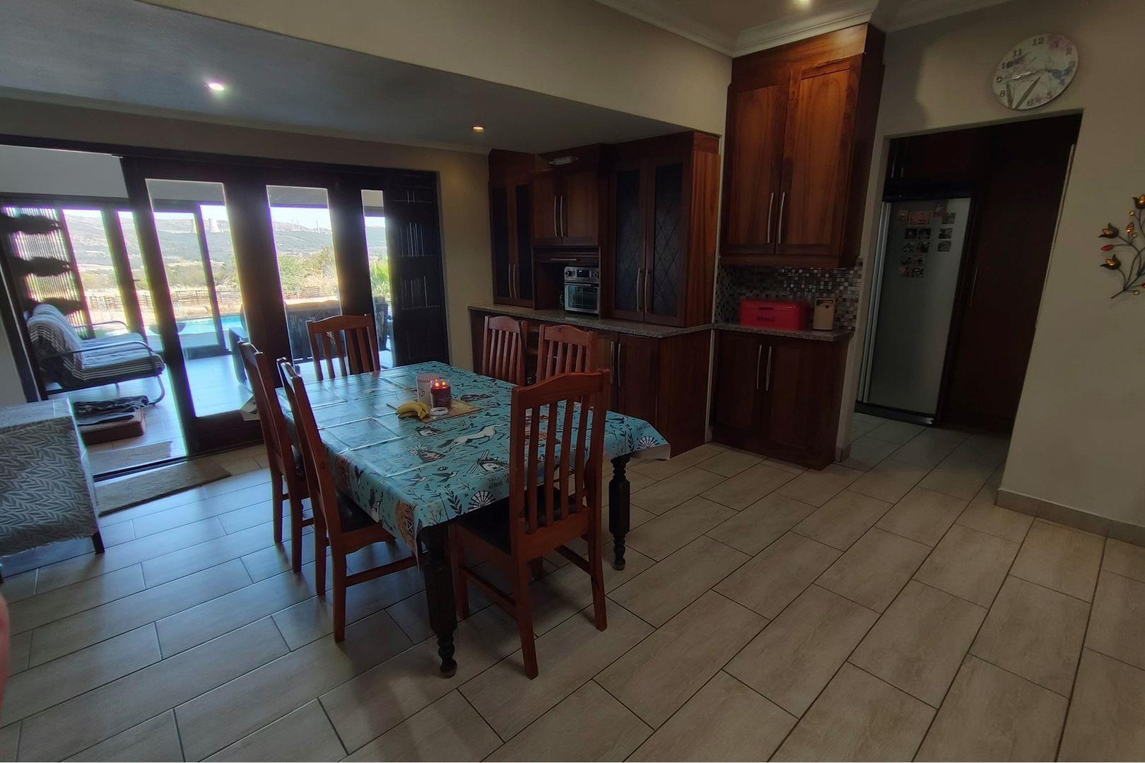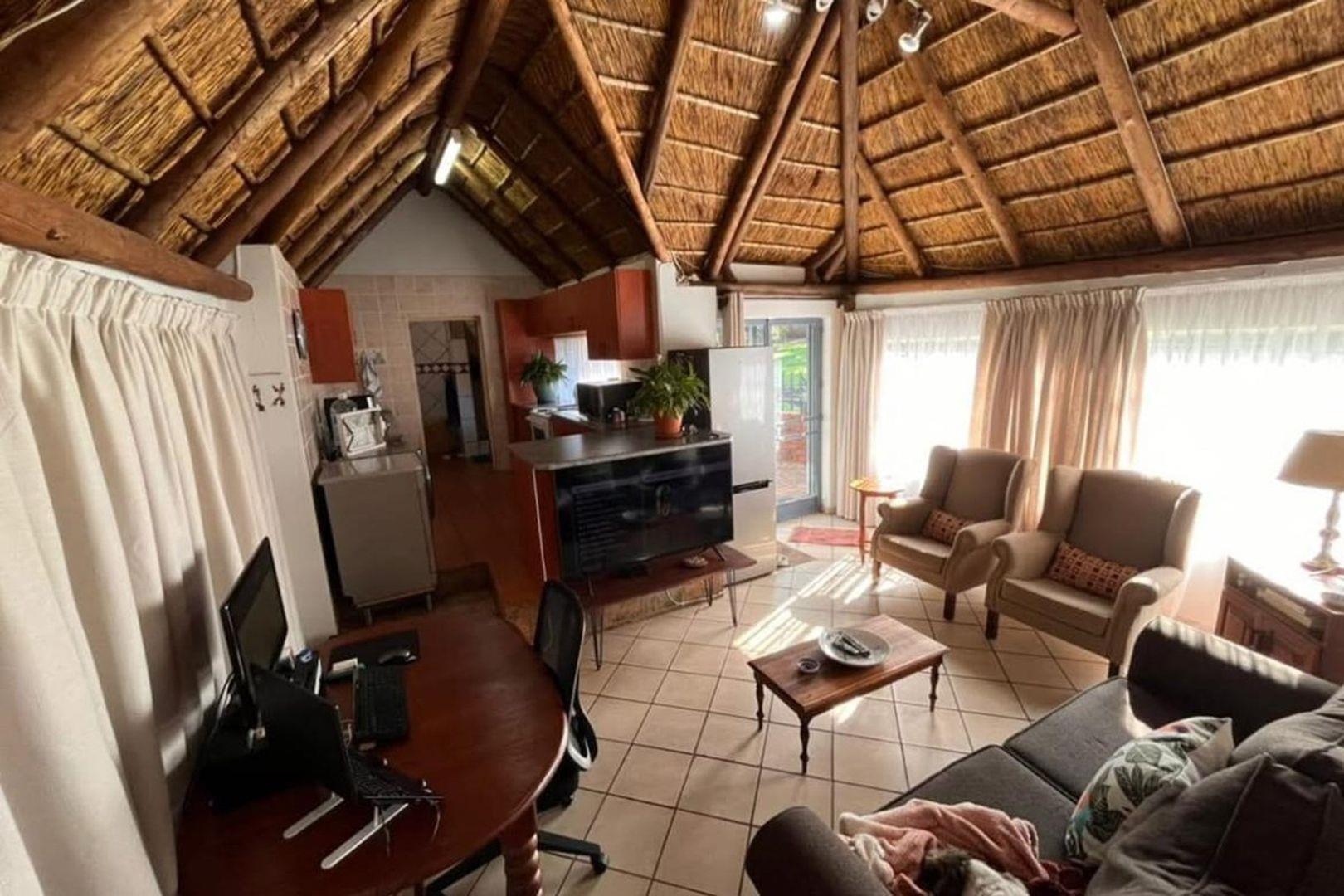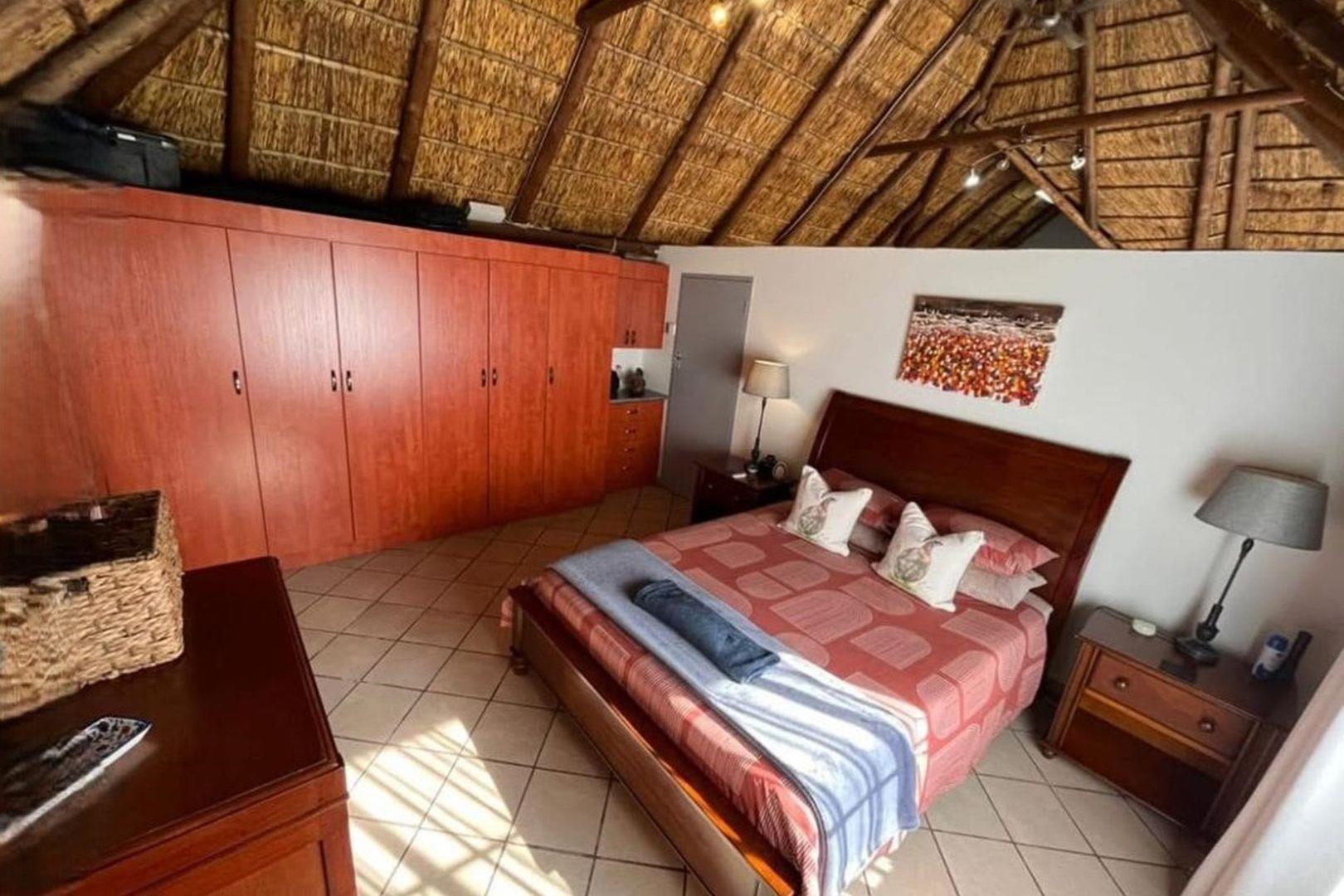 Outdoors, indulge in the sparkling swimming pool, beautifully landscaped garden, and entertainment-ready terrace with a built-in braai. A water feature, irrigation system, and comprehensive security setup with an alarm system guarantee peace of mind, Borehole, Fence, Garden, Paving, Pets Allowed, Staff Quarters, Storage, 24 hour Security, Aircon, CCTV, Central Heating, Fire place, Satellite, Smoking Allowed, Driveway, Spa Pool, Special Doors, Water tanks, Sliding Doors, Tv Antenna, Feedlot for 80 Cattle and 1.5ha Arable land. Garden under sprinkler irrigation.