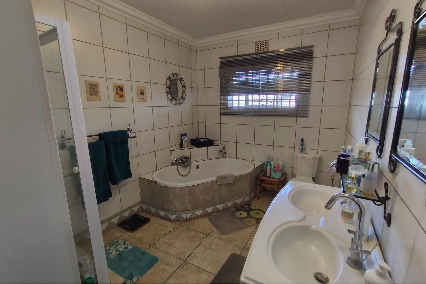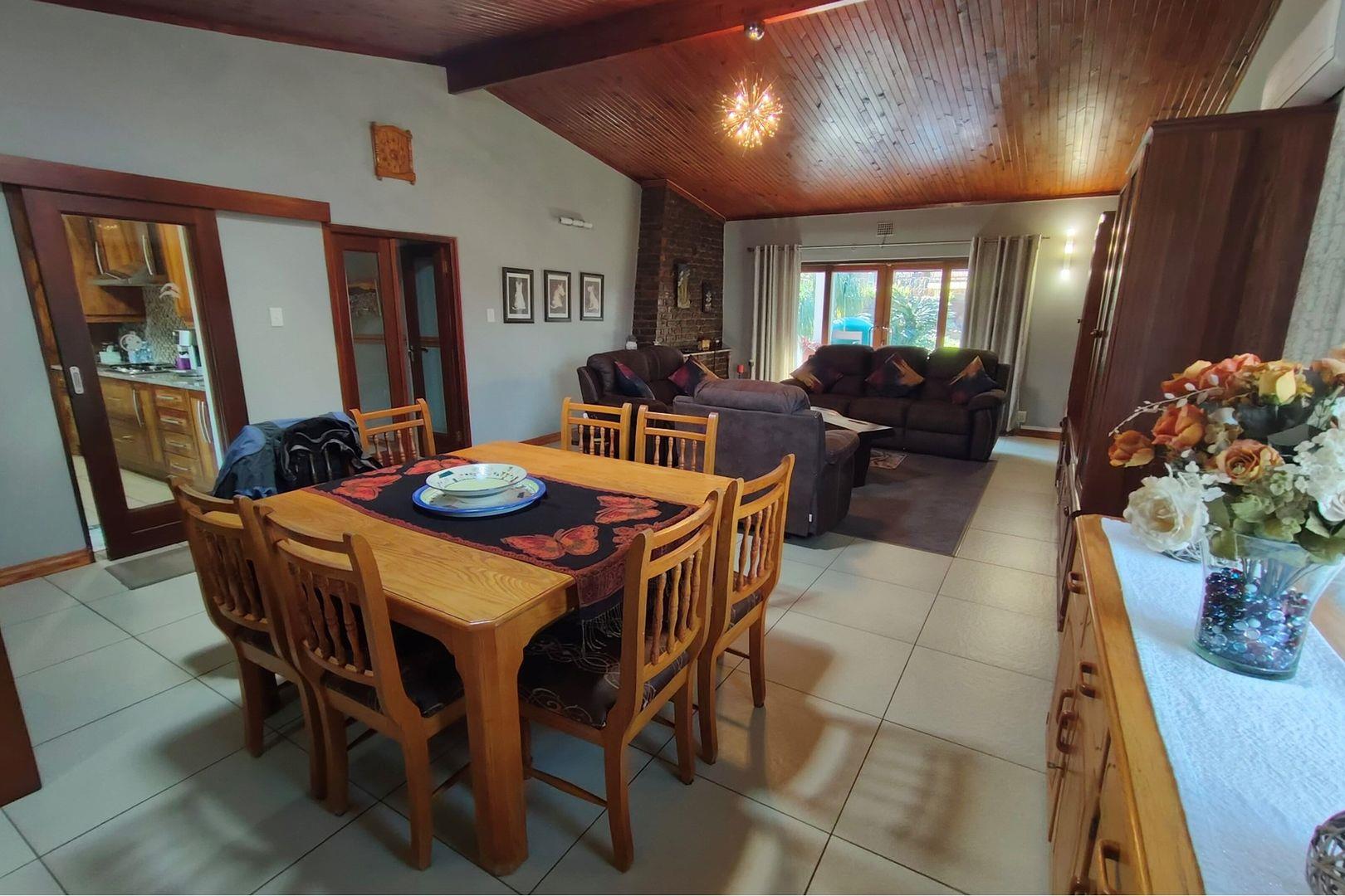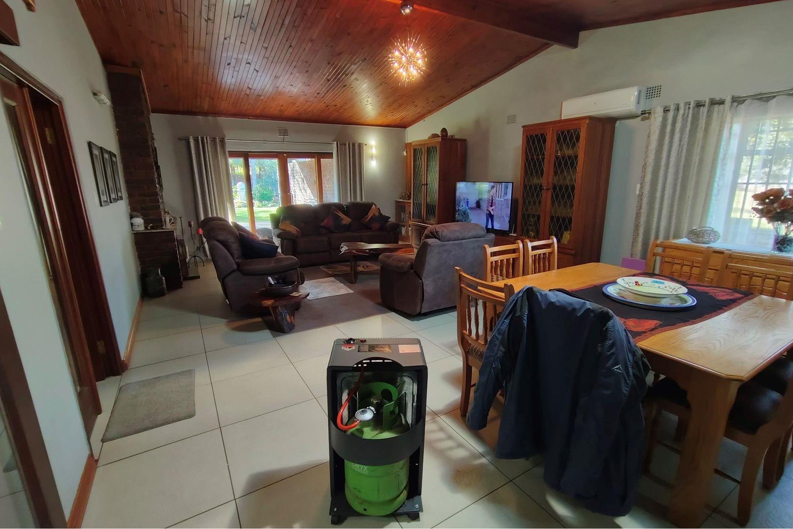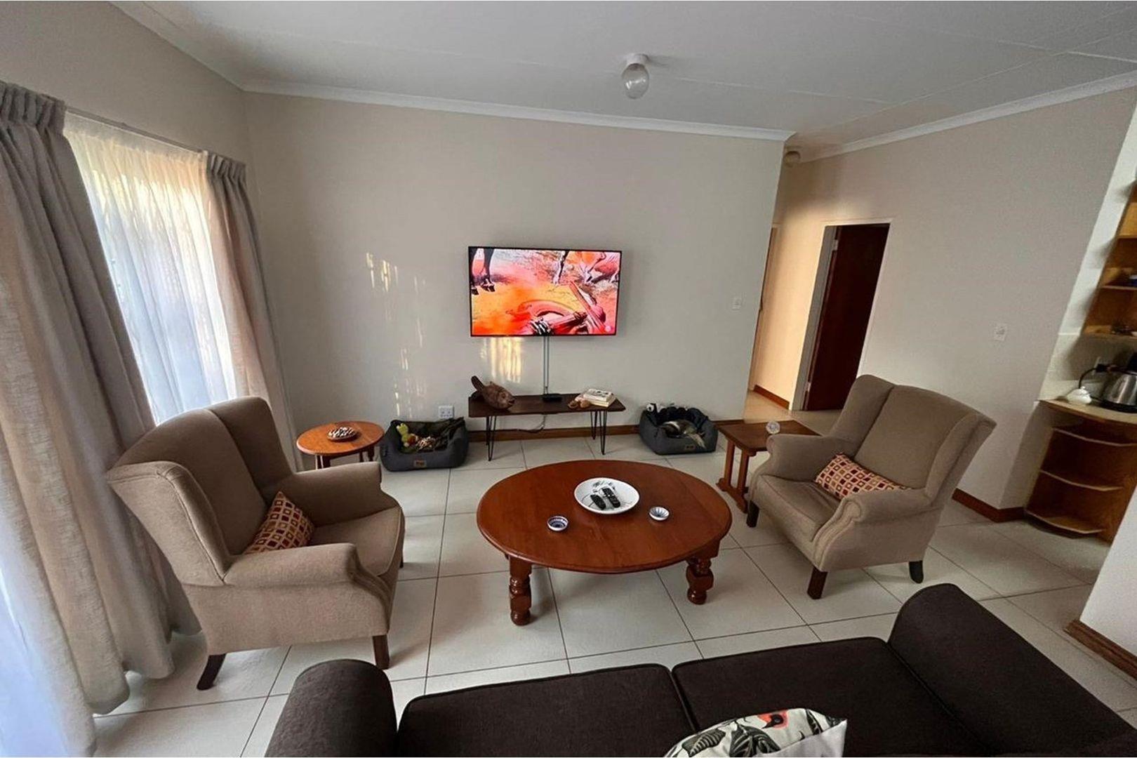 Outdoors, indulge in the sparkling swimming pool, beautifully landscaped garden, and entertainment-ready terrace with a built-in braai. A water feature, irrigation system, and comprehensive security setup with an alarm system guarantee peace of mind, Borehole, Fence, Garden, Paving, Pets Allowed, Staff Quarters, Storage, 24 hour Security, Aircon, CCTV, Central Heating, Fire place, Satellite, Smoking Allowed, Driveway, Spa Pool, Special Doors, Water tanks, Sliding Doors, Tv Antenna, Feedlot for 80 Cattle and 1.5ha Arable land. Garden under sprinkler irrigation.