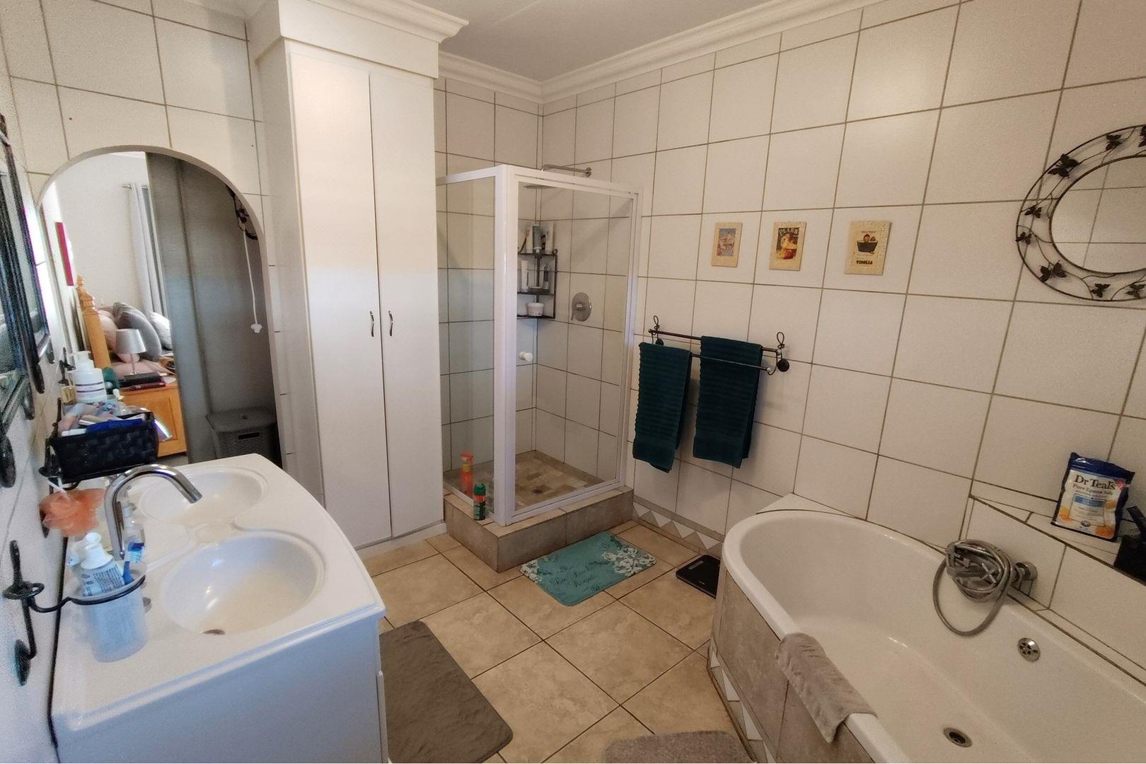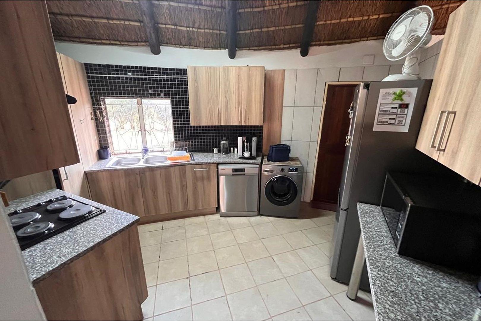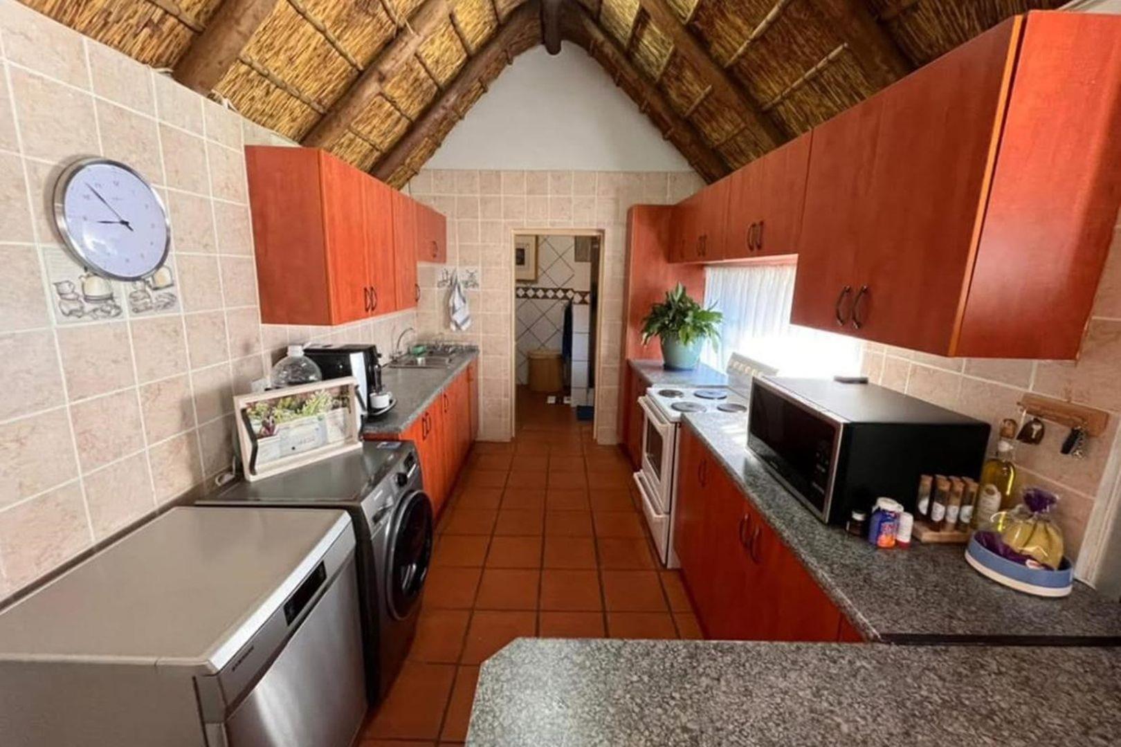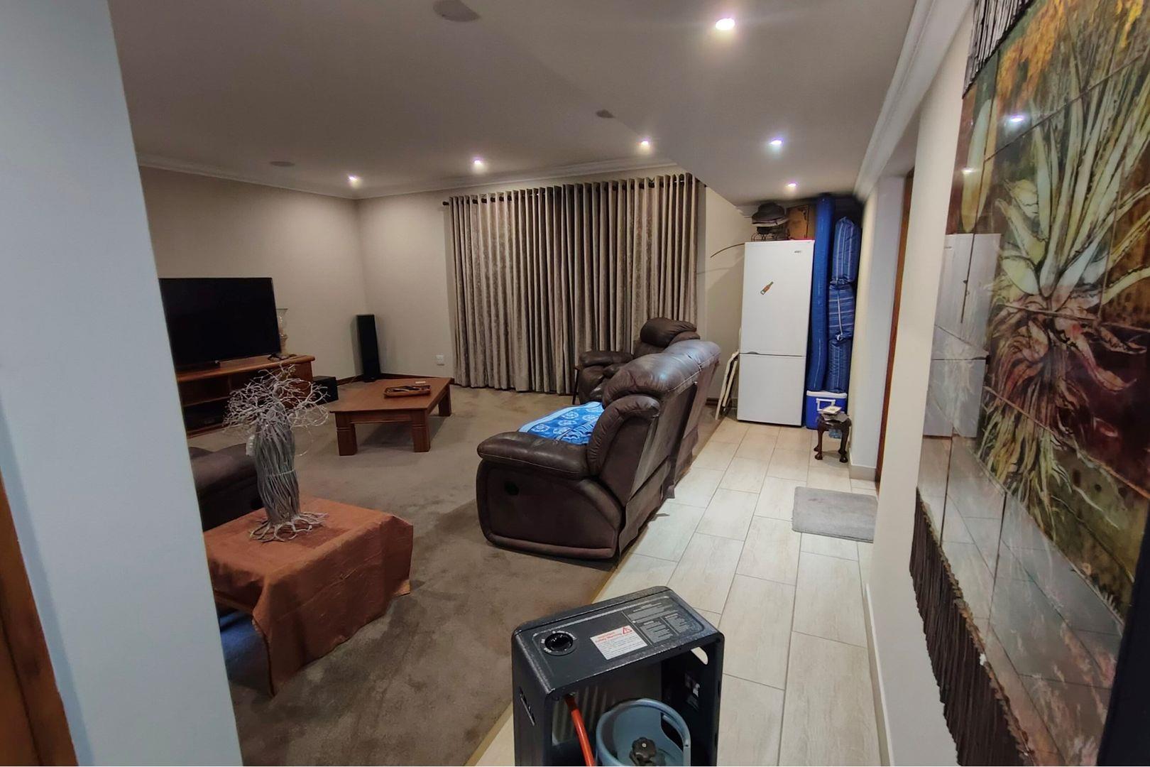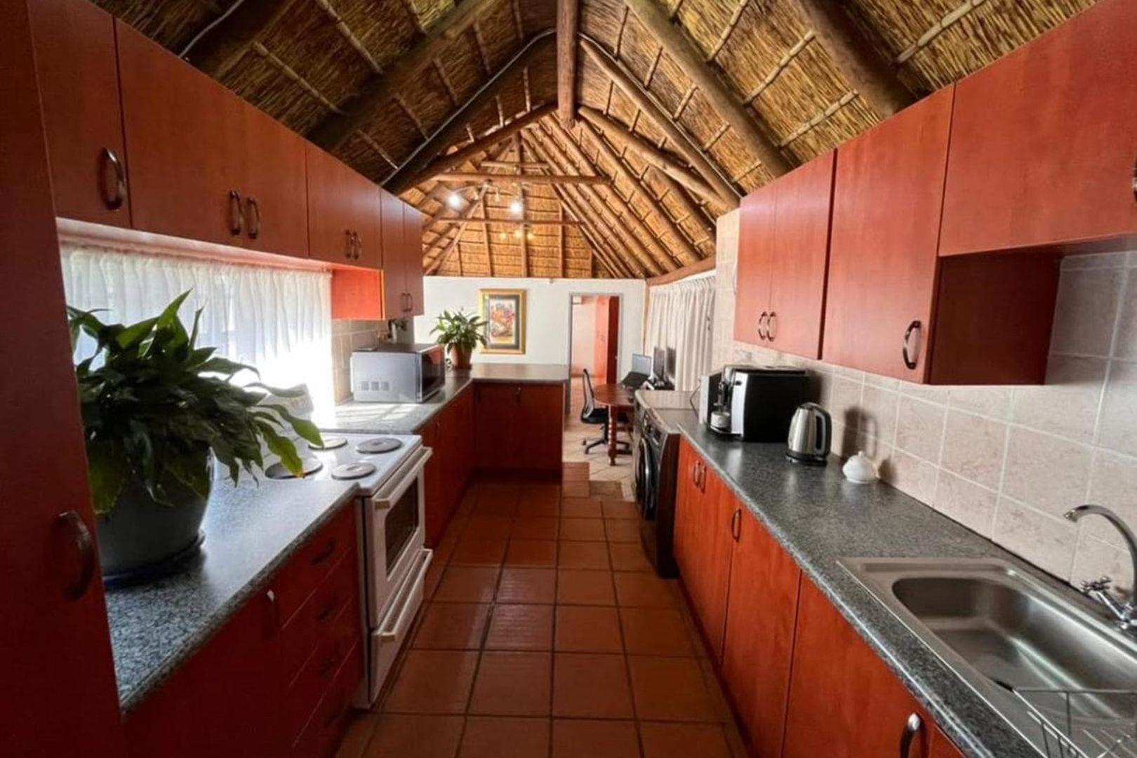 Outdoors, indulge in the sparkling swimming pool, beautifully landscaped garden, and entertainment-ready terrace with a built-in braai. A water feature, irrigation system, and comprehensive security setup with an alarm system guarantee peace of mind, Borehole, Fence, Garden, Paving, Pets Allowed, Staff Quarters, Storage, 24 hour Security, Aircon, CCTV, Central Heating, Fire place, Satellite, Smoking Allowed, Driveway, Spa Pool, Special Doors, Water tanks, Sliding Doors, Tv Antenna, Feedlot for 80 Cattle and 1.5ha Arable land. Garden under sprinkler irrigation.