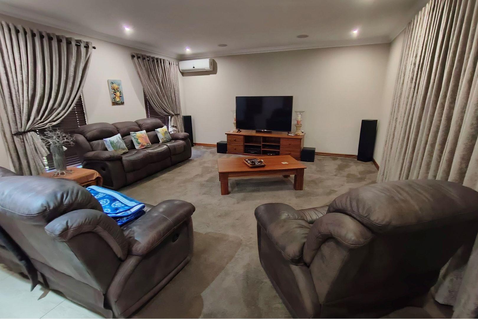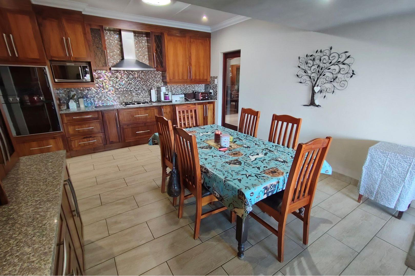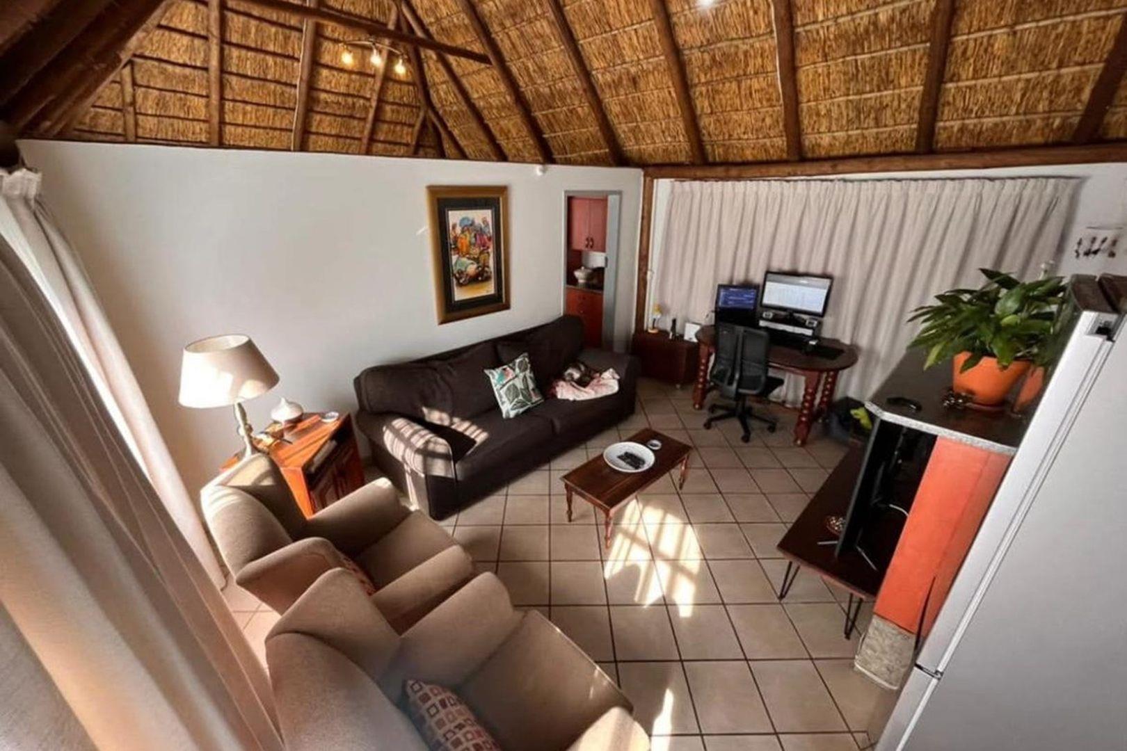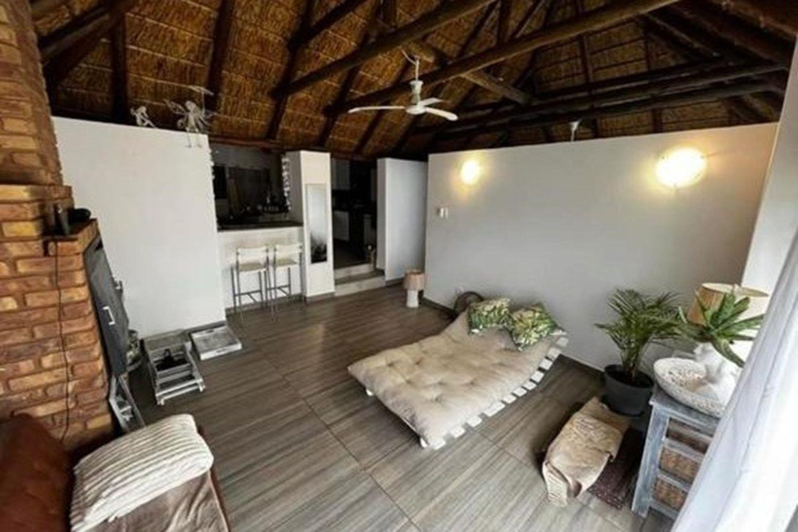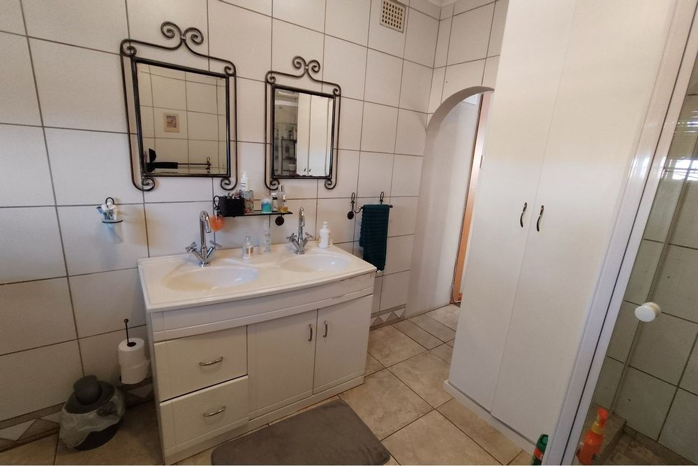 Outdoors, indulge in the sparkling swimming pool, beautifully landscaped garden, and entertainment-ready terrace with a built-in braai. A water feature, irrigation system, and comprehensive security setup with an alarm system guarantee peace of mind, Borehole, Fence, Garden, Paving, Pets Allowed, Staff Quarters, Storage, 24 hour Security, Aircon, CCTV, Central Heating, Fire place, Satellite, Smoking Allowed, Driveway, Spa Pool, Special Doors, Water tanks, Sliding Doors, Tv Antenna, Feedlot for 80 Cattle and 1.5ha Arable land. Garden under sprinkler irrigation.