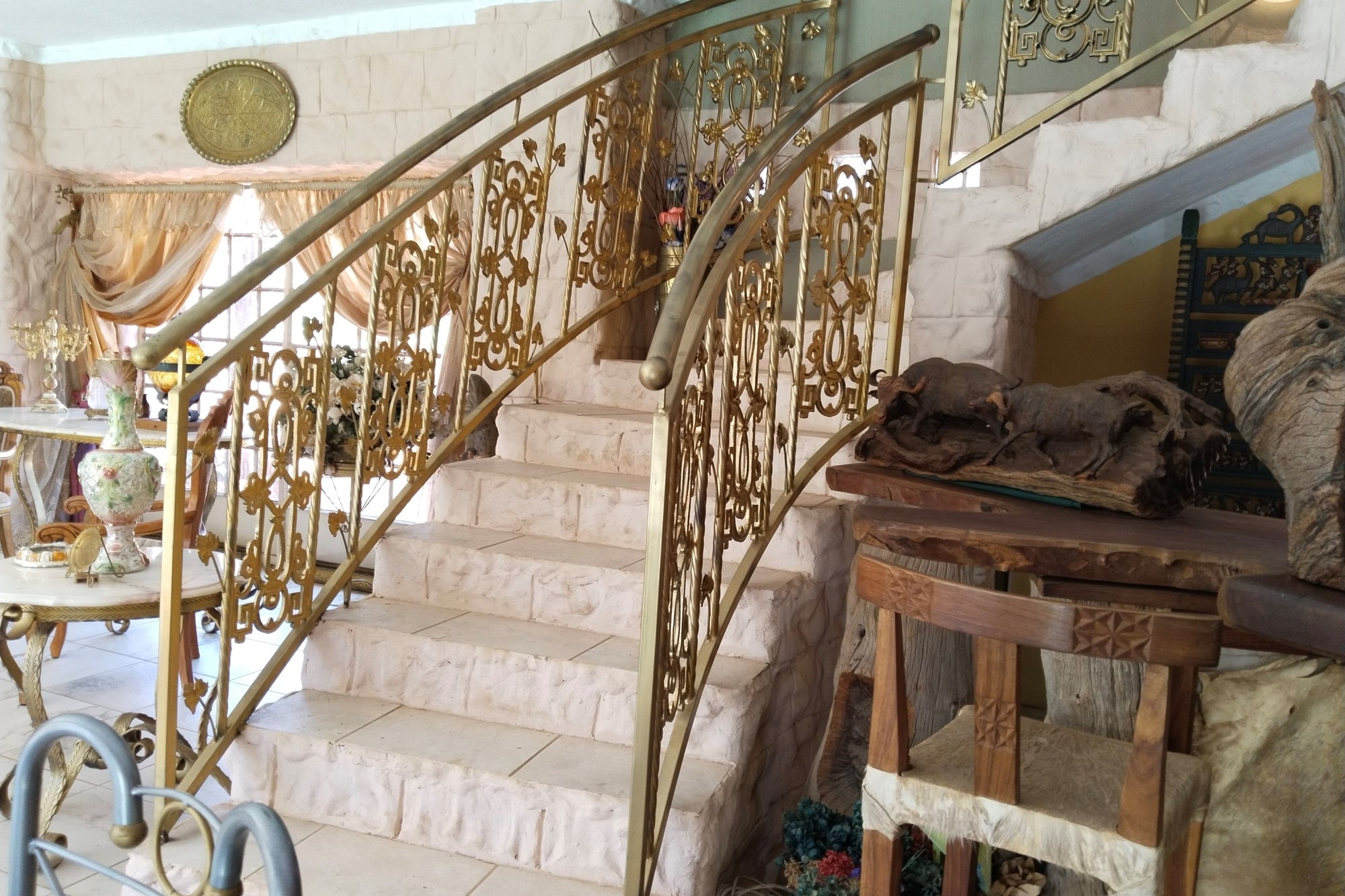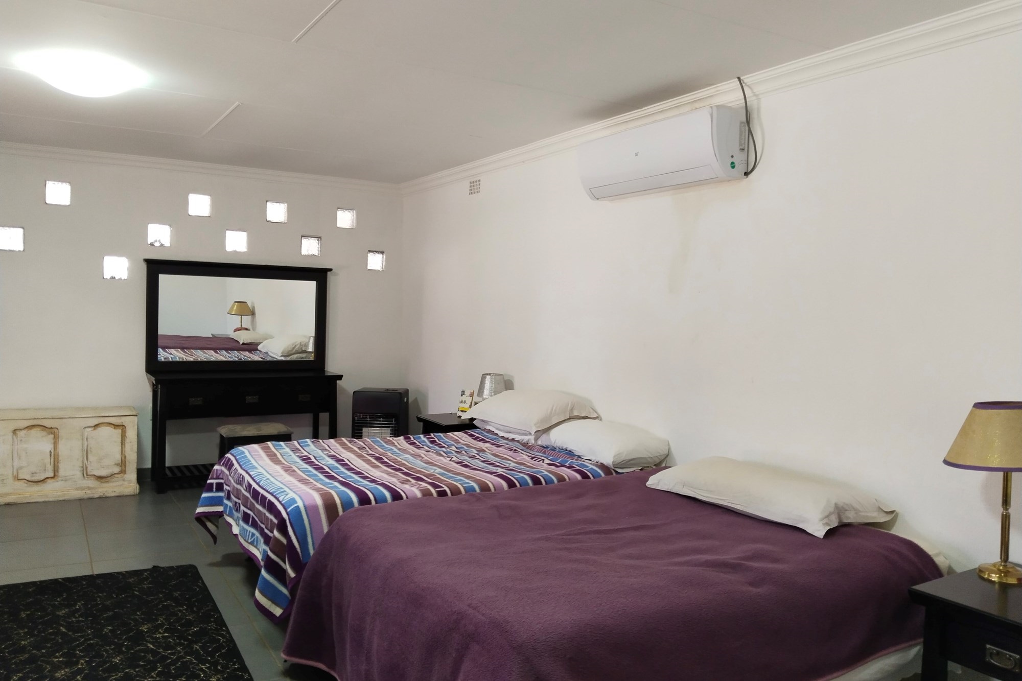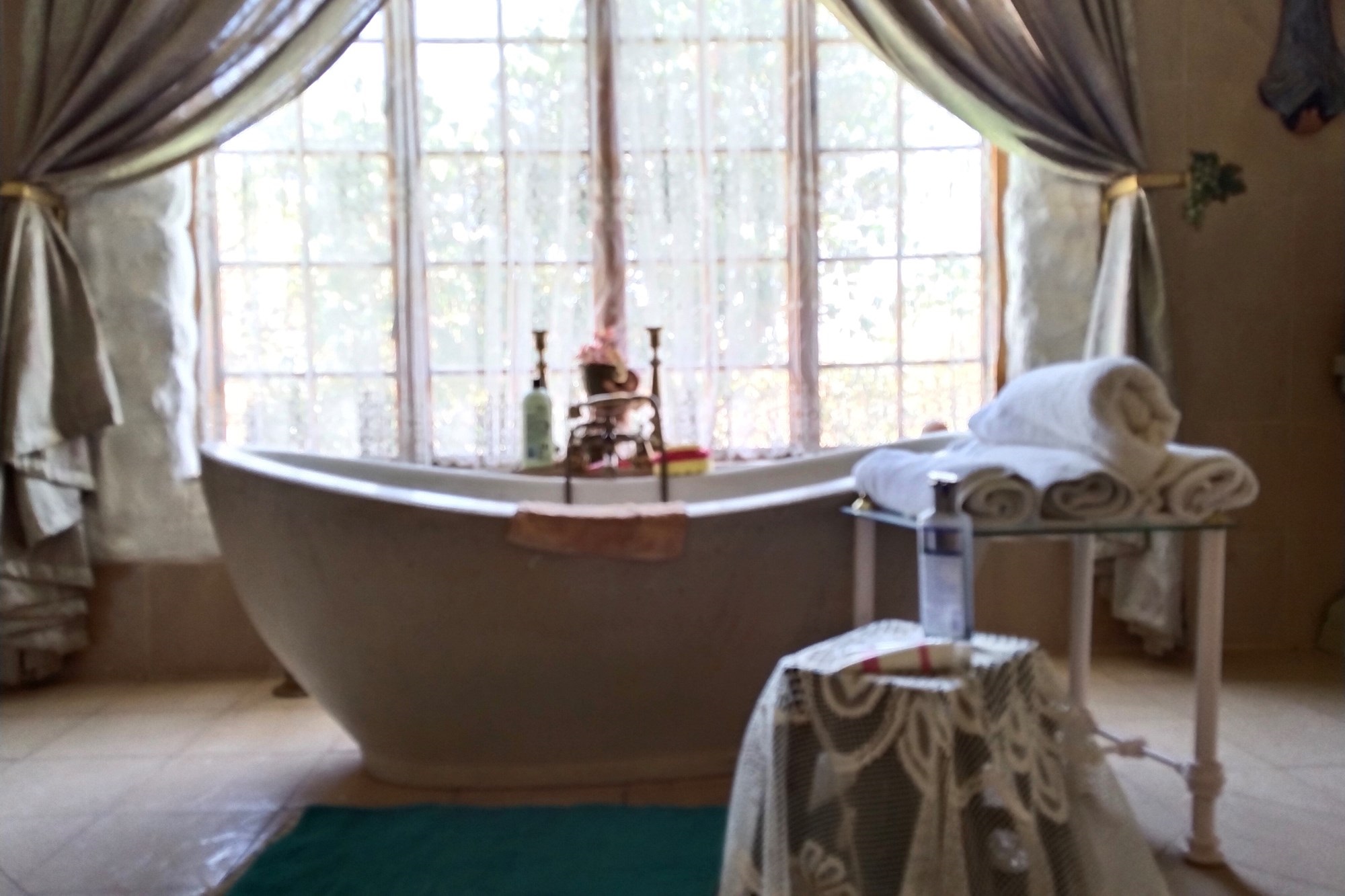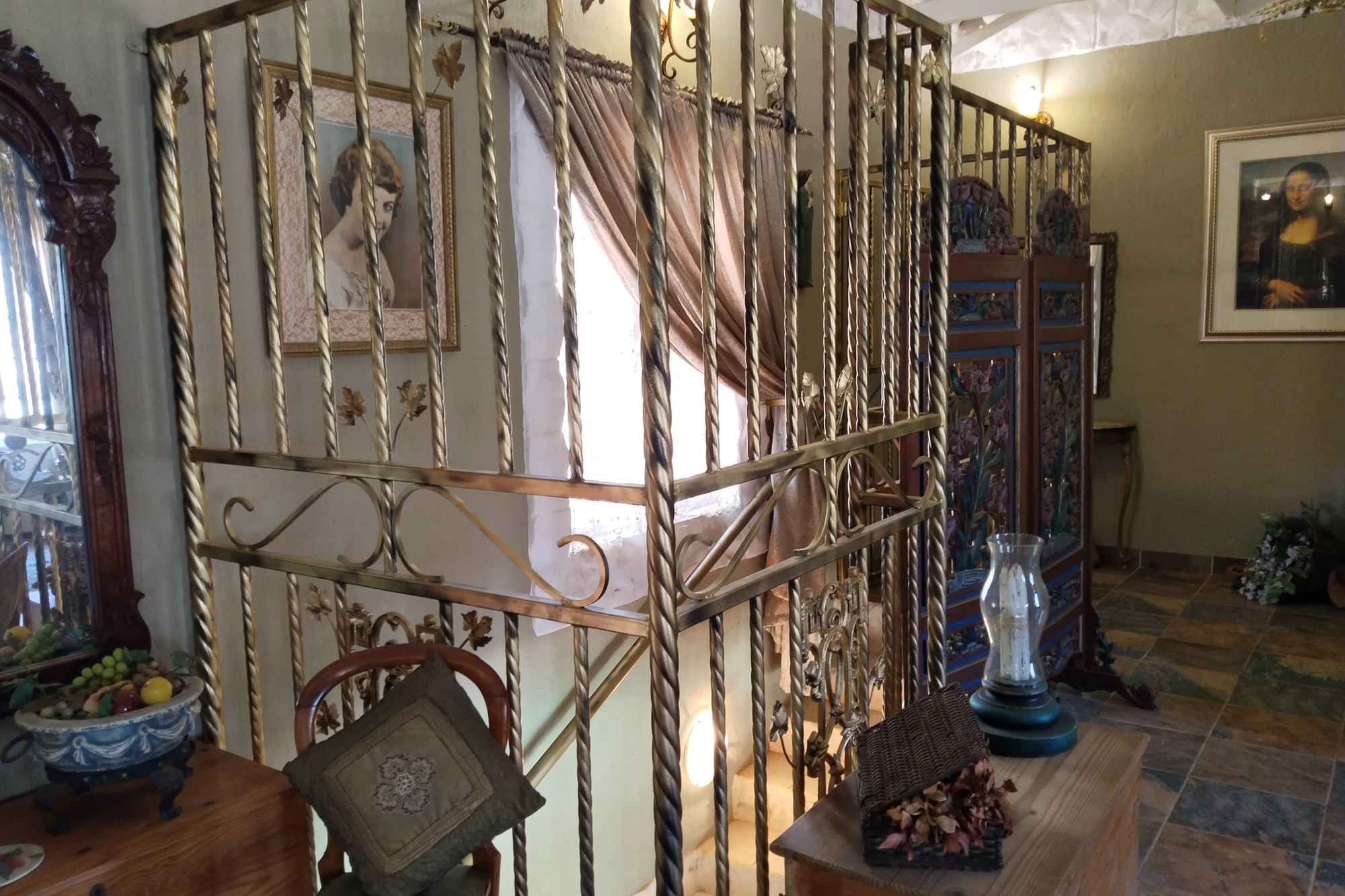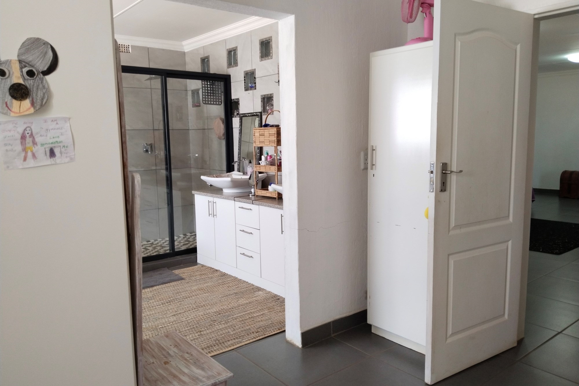 The estate features luxurious bathrooms with enclosed showers, en-suite designs, and built-in wardrobes, ensuring comfort and seclusion. The interior is elegantly decorated with a mix of brick, glass, and wood details, contributing to its rustic charm. Air conditioning throughout, partially furnished bedrooms, and staff accommodations enhance the inviting atmosphere.