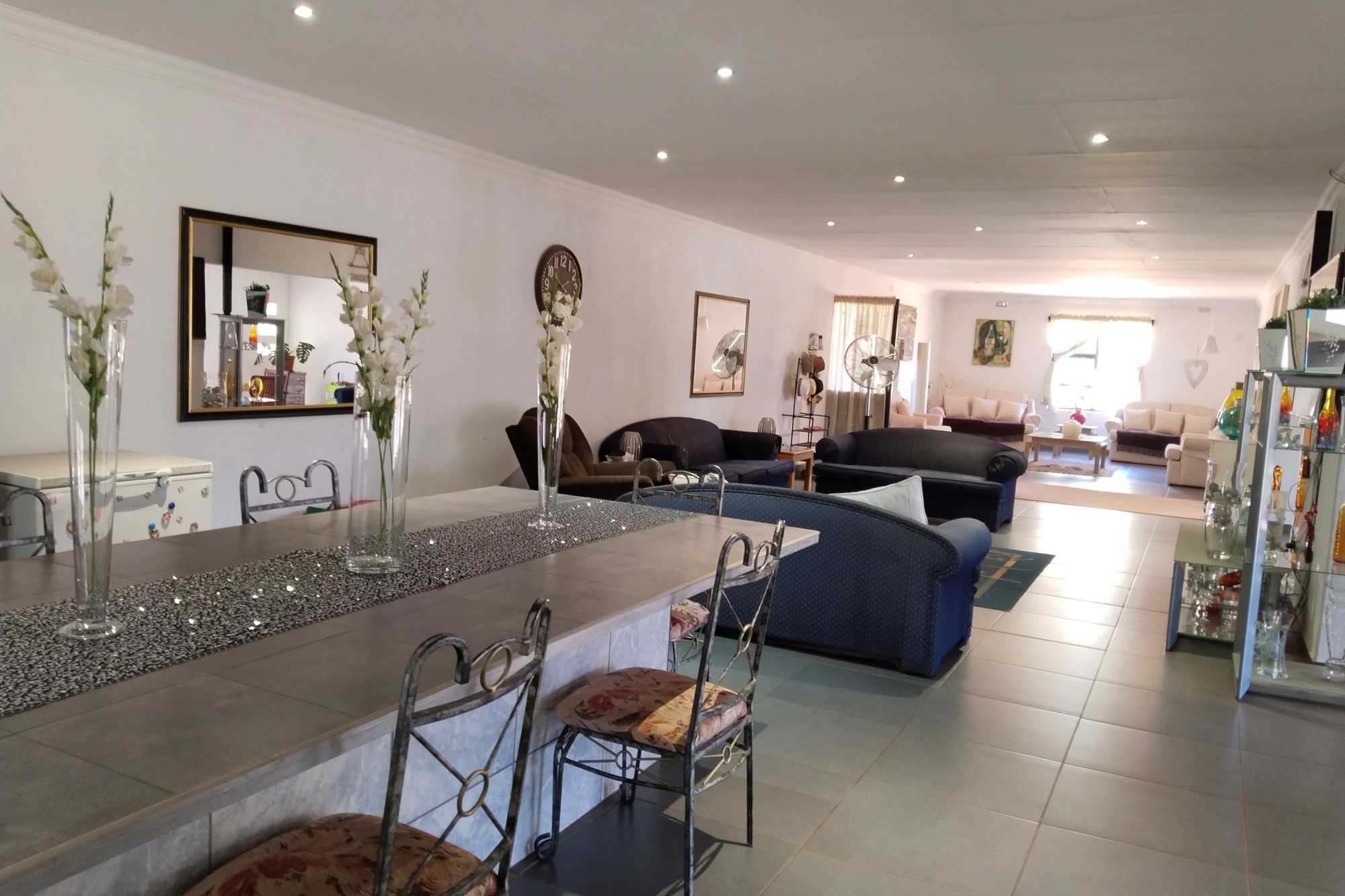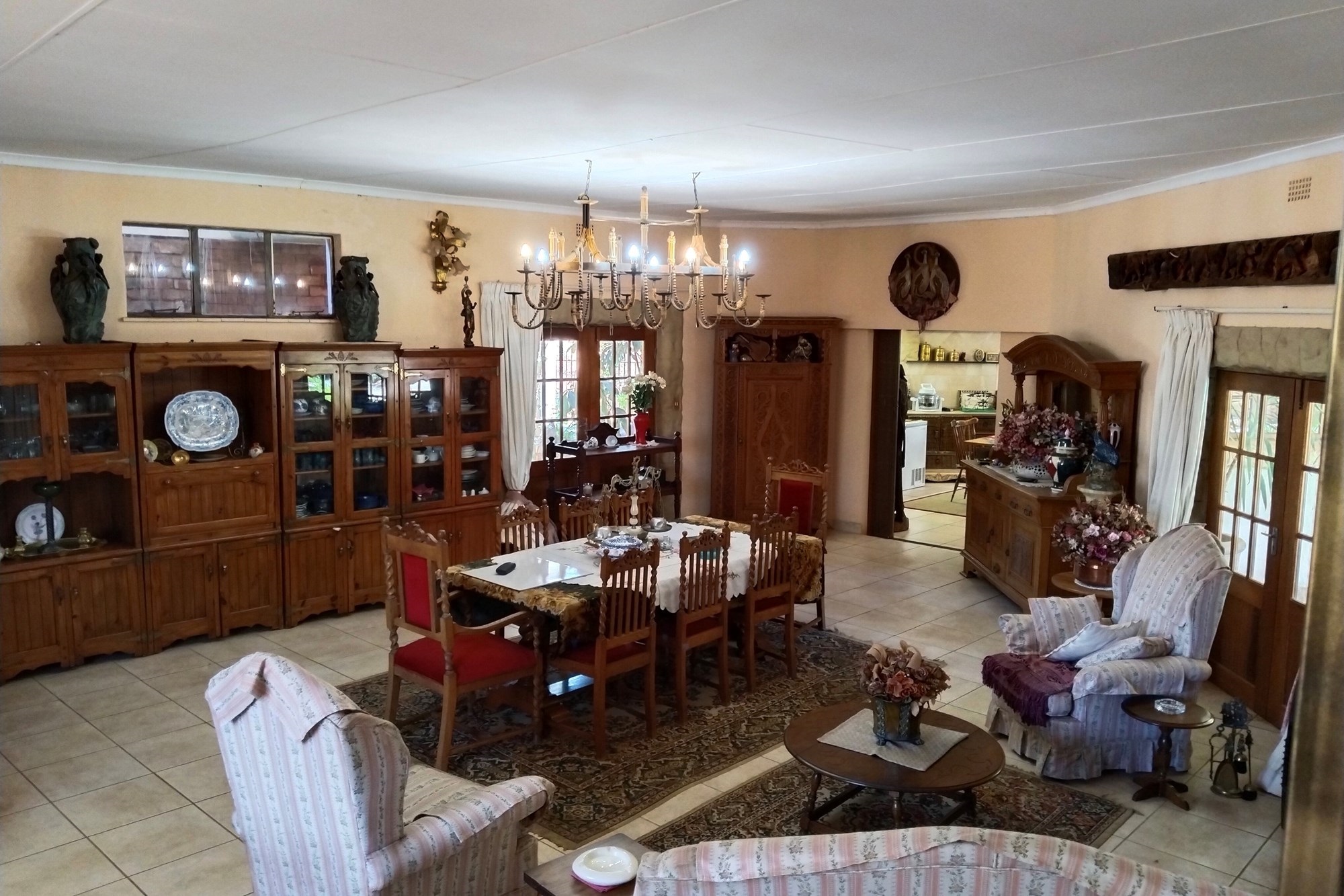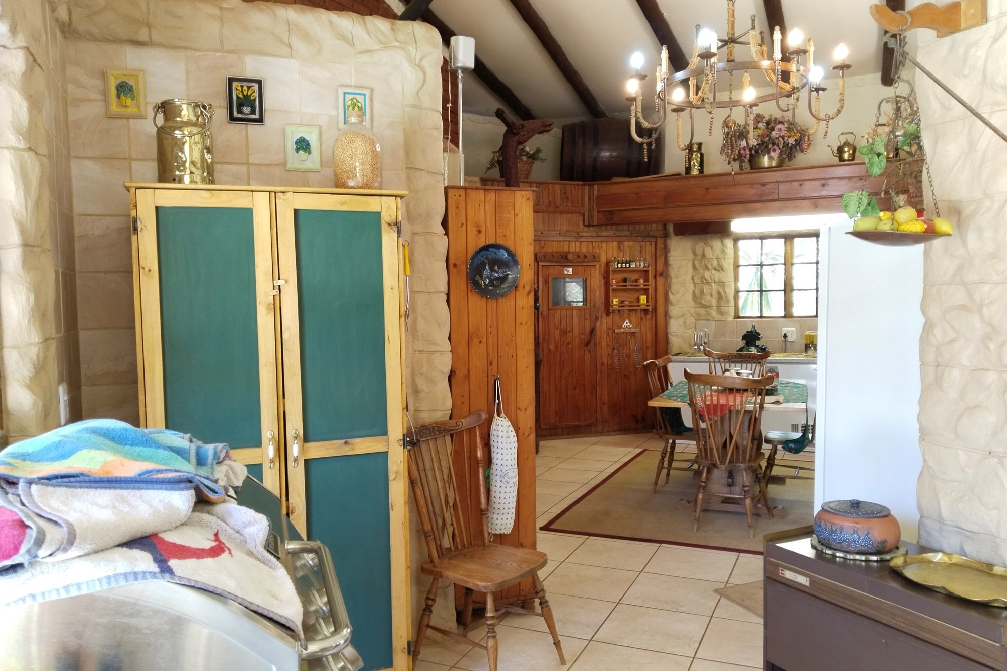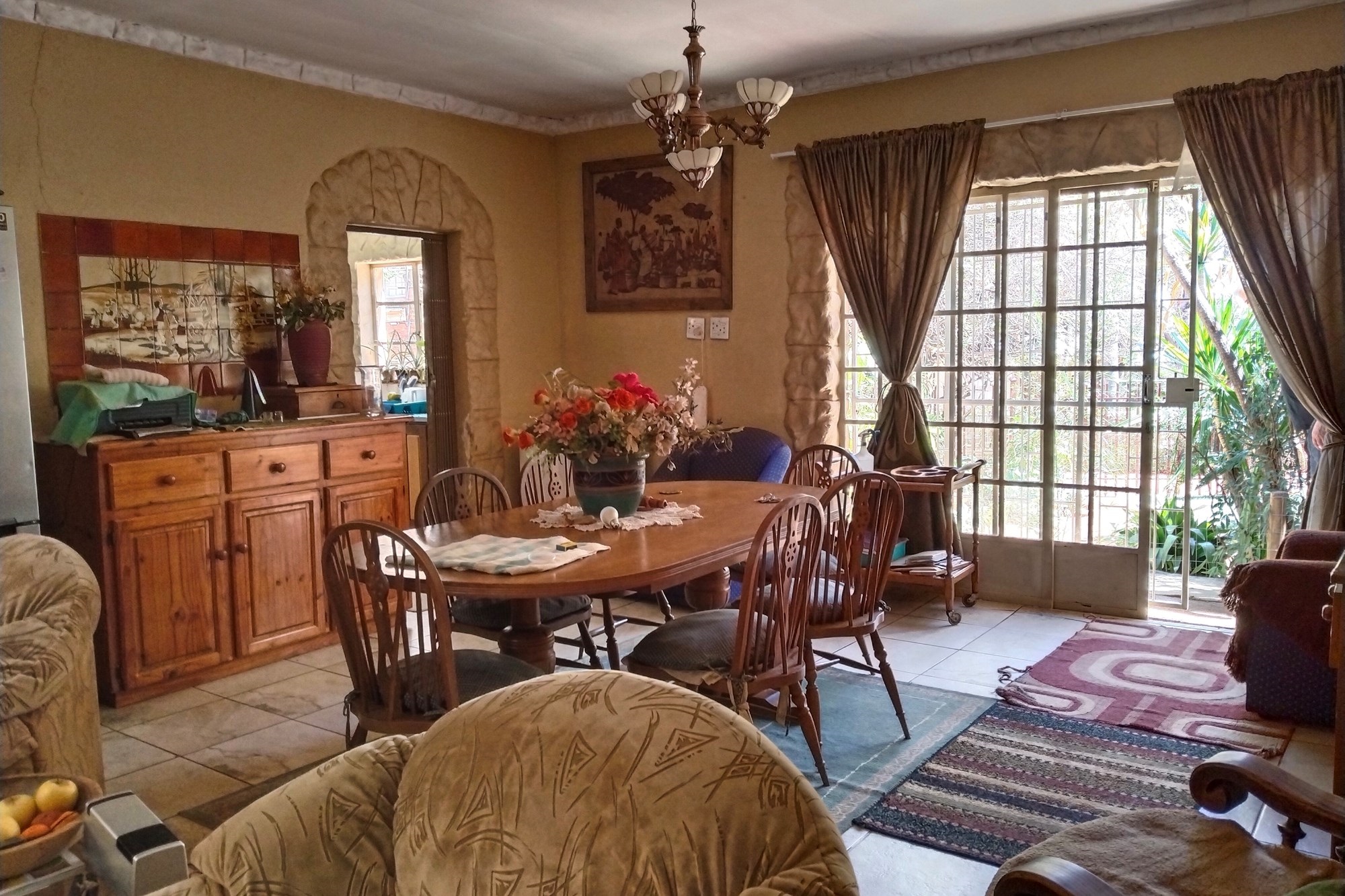 With significant development potential, the estate could transform into a guest house or rental venture, enhancing its value and revenue prospects. It features 11 developed units that currently yield consistent rental income, demanding a price significantly higher than the asking rate. The two-story main residence can be divided into three distinct living sections, including an upper-level "Honeymoon suite" with an open-plan bathroom, bedroom, compact kitchenette, and walk-in wardrobe. A generous dining space flows into the kitchen, extending outward.