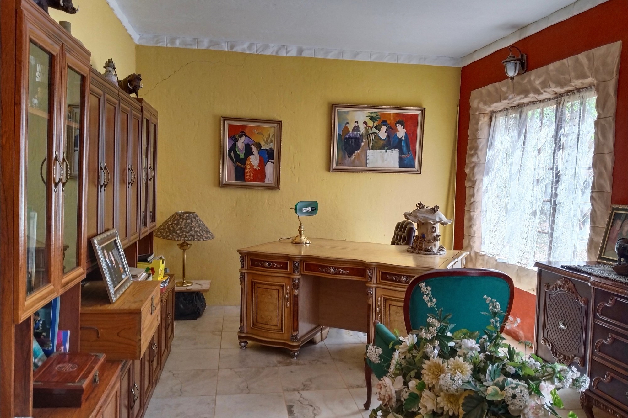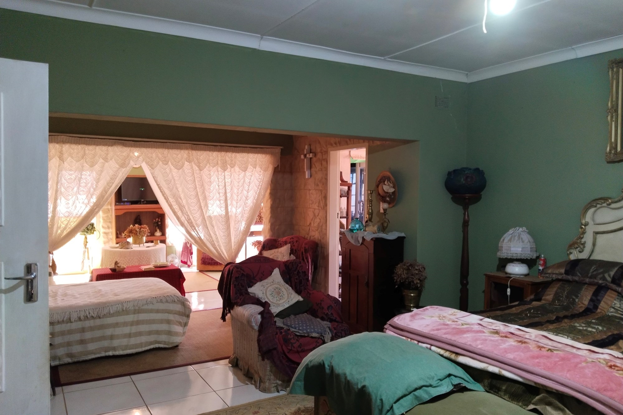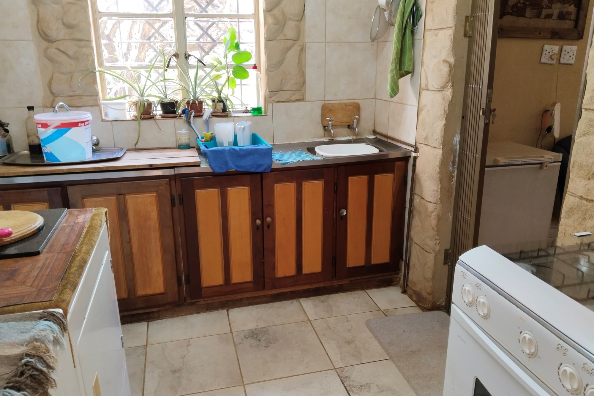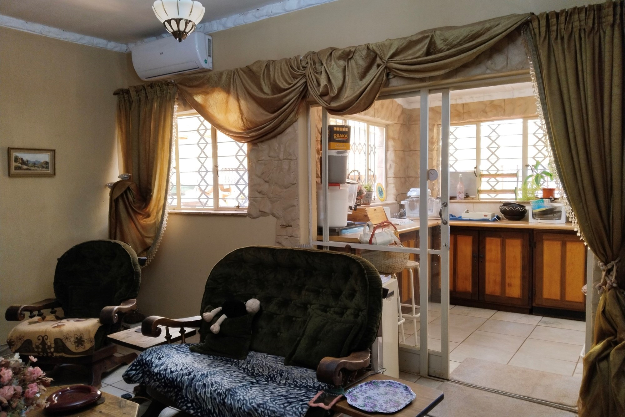 With significant development potential, the estate could transform into a guest house or rental venture, enhancing its value and revenue prospects. It features 11 developed units that currently yield consistent rental income, demanding a price significantly higher than the asking rate. The two-story main residence can be divided into three distinct living sections, including an upper-level "Honeymoon suite" with an open-plan bathroom, bedroom, compact kitchenette, and walk-in wardrobe. A generous dining space flows into the kitchen, extending outward.
