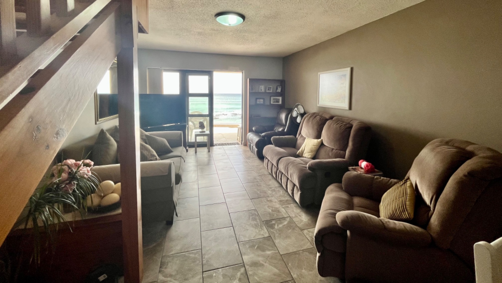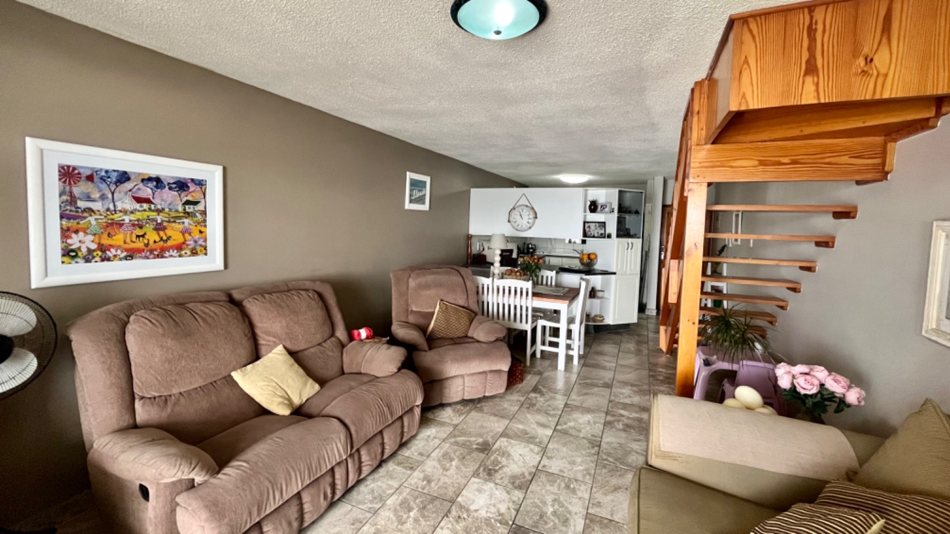 Experience coastal living at its finest with this beautiful 2-bedroom, 2-bathroom apartment located in the heart of Hartenbos, just steps from the pristine ocean and sandy beach. This property boasts two well-appointed bedrooms on the upper level, with the main bedroom featuring an en-suite bathroom and balcony, overlooking the beach with waves rolling out on the sand. The bedrooms are elegantly tiled and come with built-in cupboards. The heart of the apartment is a comfortable open plan living and dining area, featuring a balcony with captivating views, enjoy the sound of the waves, perfect for relaxing or entertaining.The apartment is designed for comfort ensuring a pleasant atmosphere year-round. The beautiful kitchen is a equipped with space for a washing machine, ample cupboards, and an electric oven with an extractor fan,