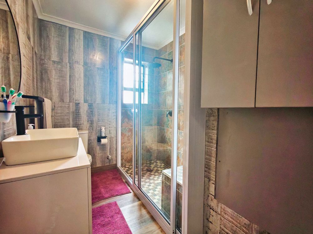 A short passage leads to two well-sized bedrooms that share a stylish bathroom. The apartment is equipped with an inverter and battery system, ensuring uninterrupted power during load shedding.